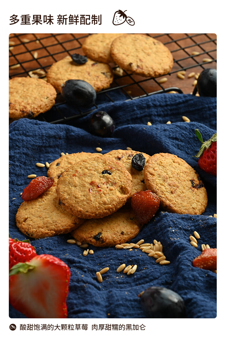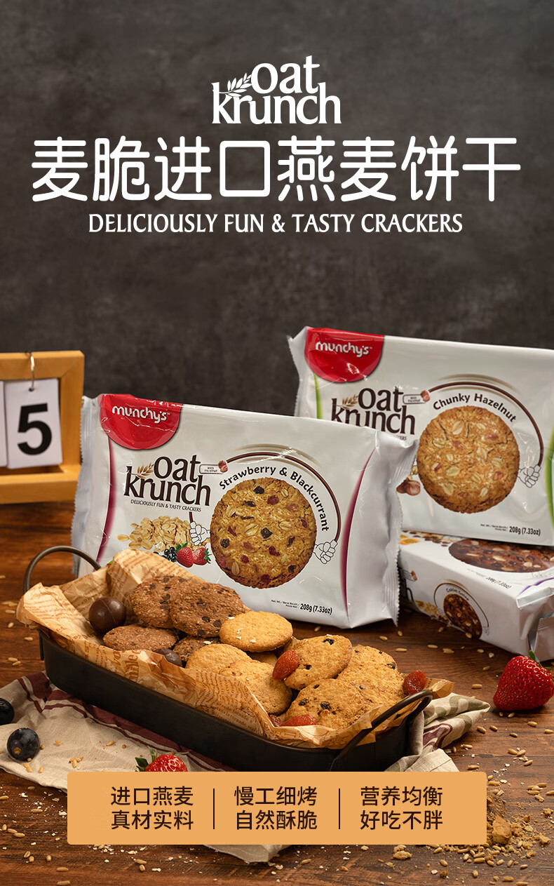 【分仓直发包邮】马奇新新燕麦饼干草莓黑加仑味208g