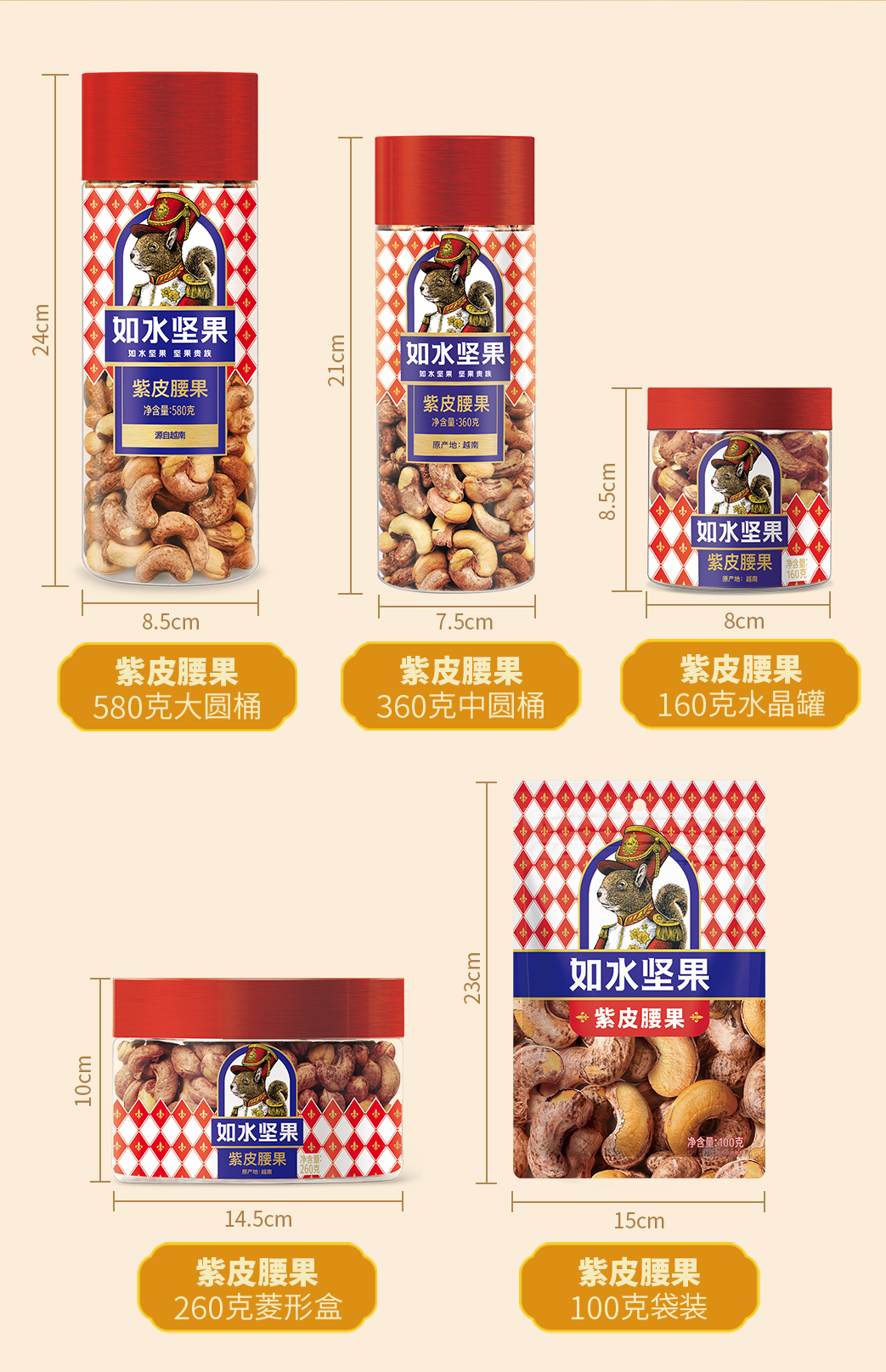 【秒杀2025.8.8到期介意慎拍】如水坚果紫皮腰果100g*3