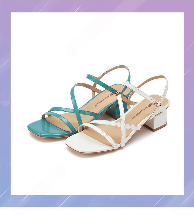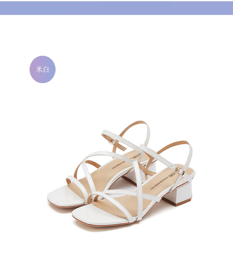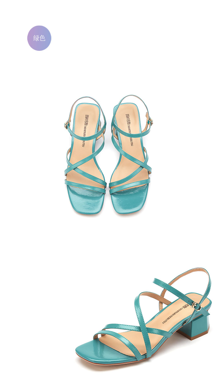 夏季新款露趾女凉鞋粗跟交叉带罗马时装凉鞋