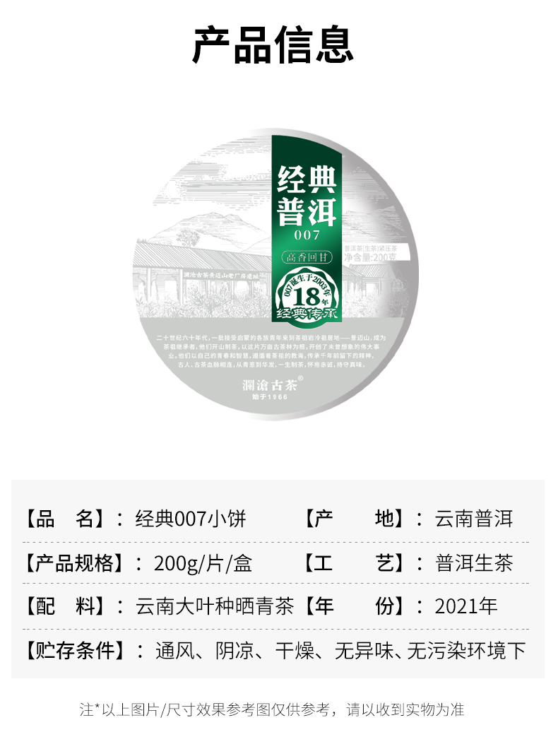澜沧古茶2021年经典007小饼提客装普洱茶生茶生普古树老树云南七子饼茶200g*5片