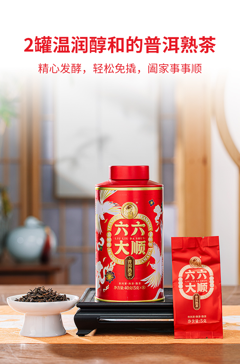 澜沧古茶2024年六六大顺普洱茶熟茶高山贡眉白茶茉莉红茶组合礼盒220g