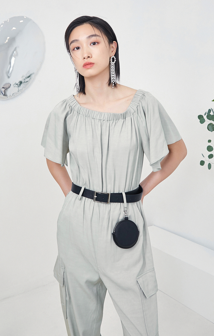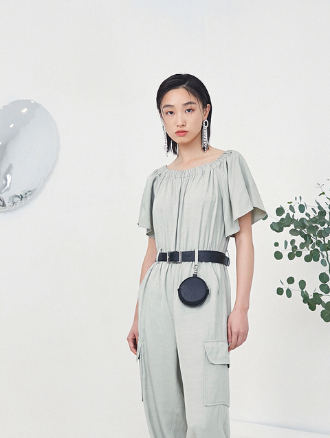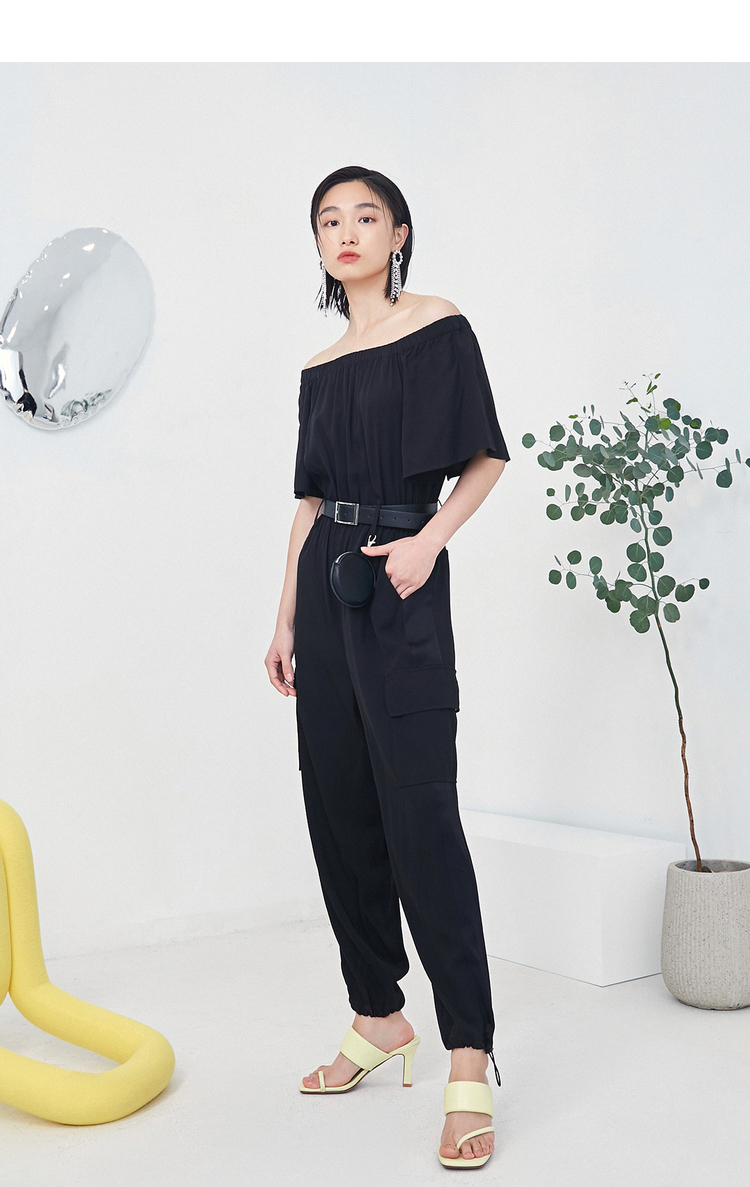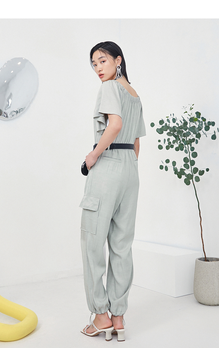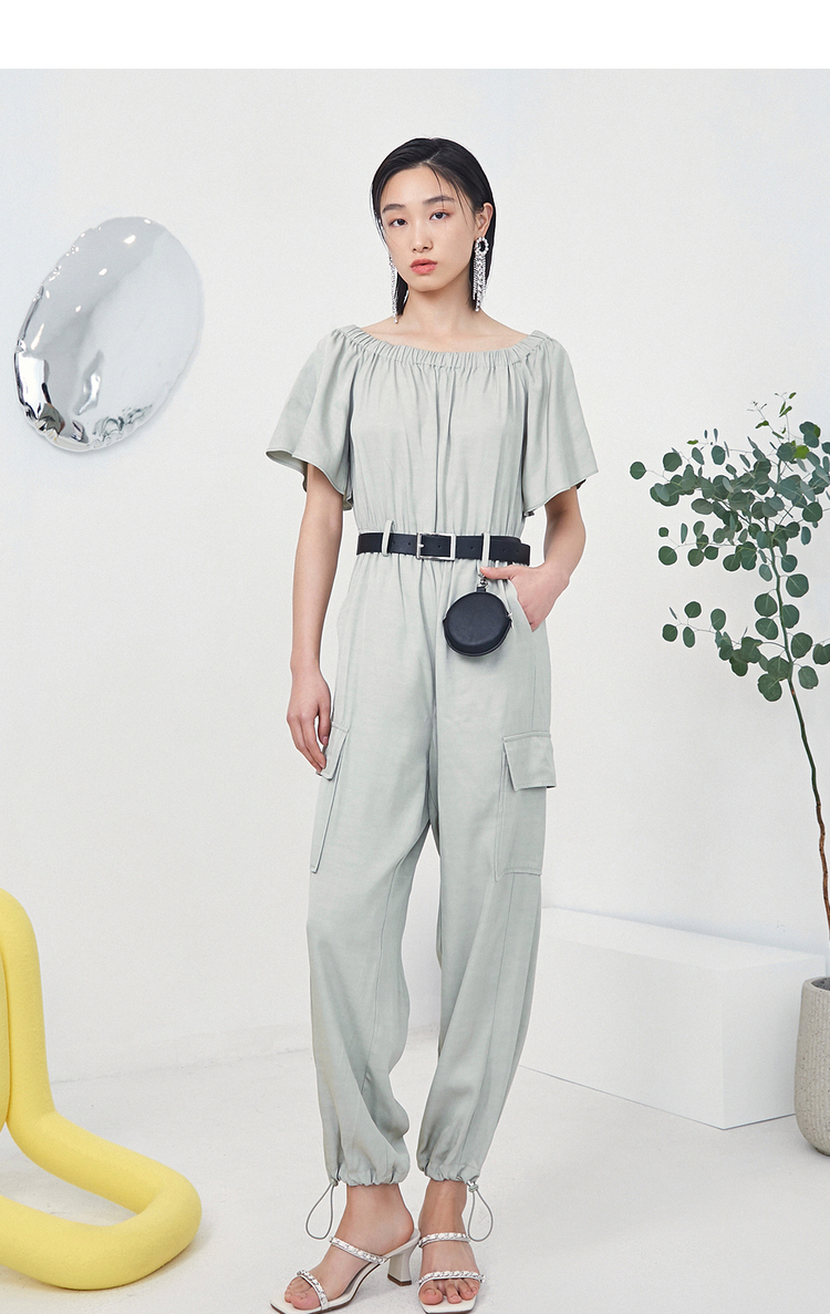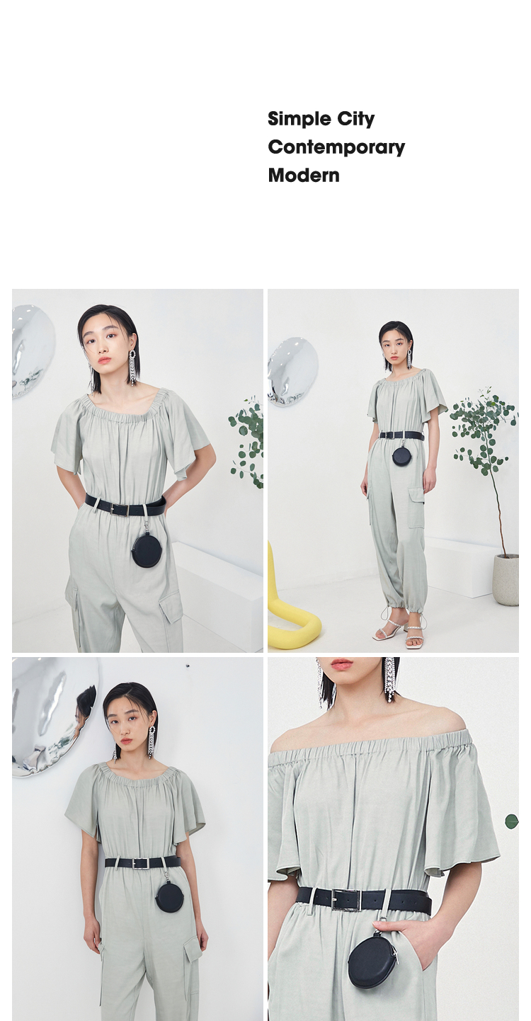 NEELLY纳俪商场同款气质OL简约连体裤圆领小飞袖直筒休闲阔腿裤女