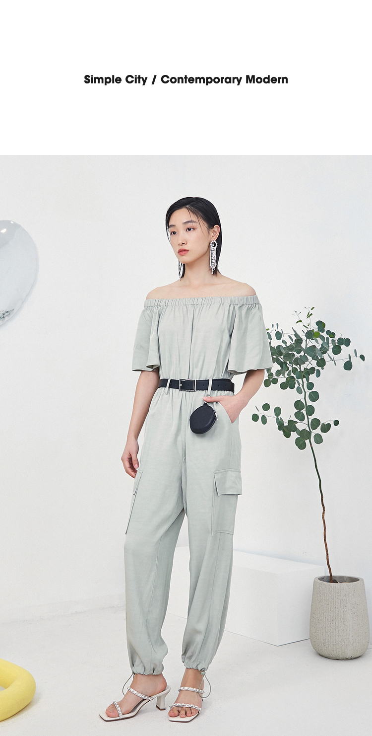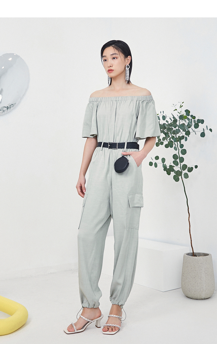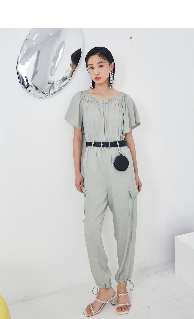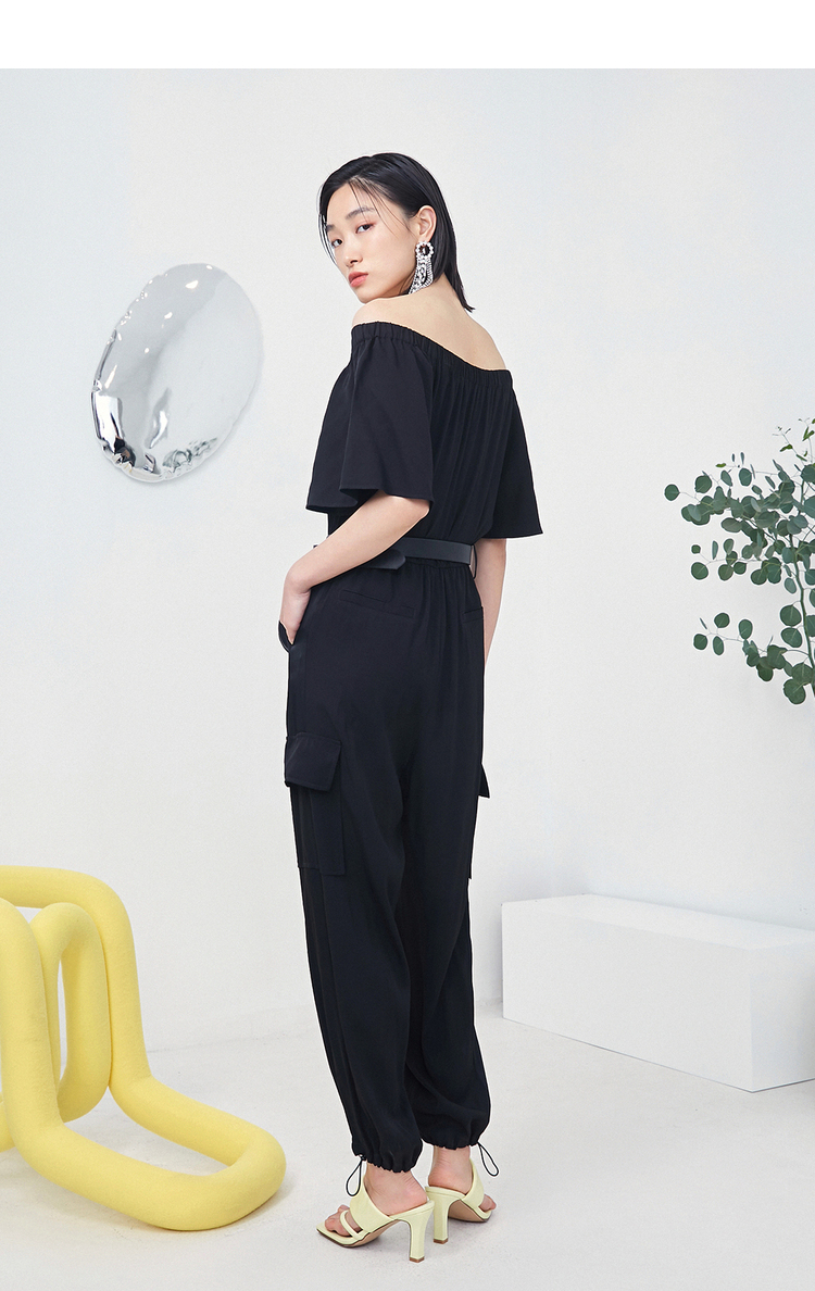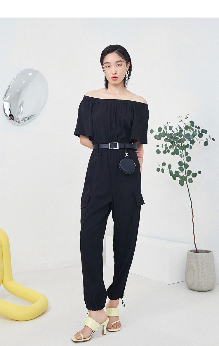 NEELLY纳俪商场同款气质OL简约连体裤圆领小飞袖直筒休闲阔腿裤女