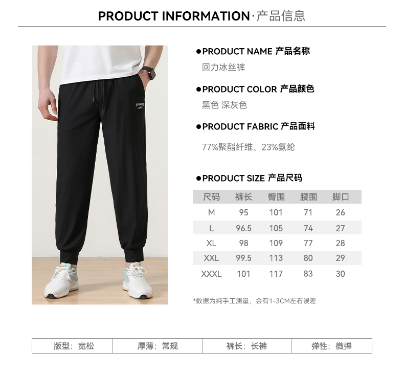 回力运动裤男士夏季薄款防晒速干冰丝透气束脚裤子跑步健身长裤