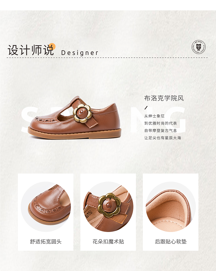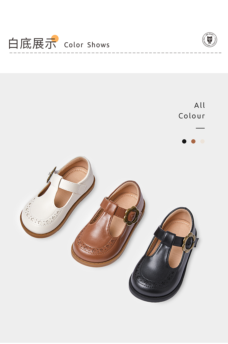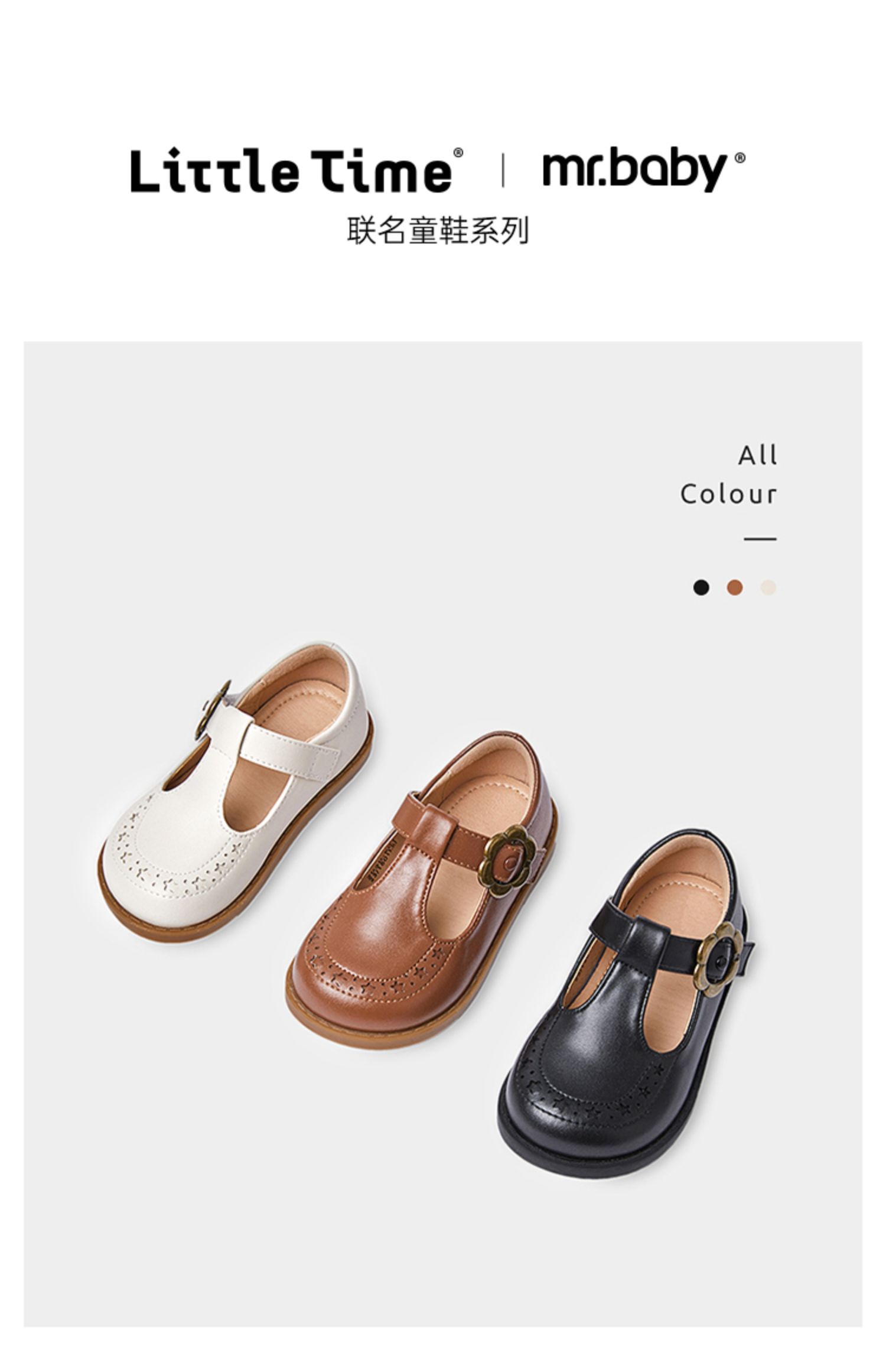 littletime女童鞋子2022春季新款皮鞋儿童春秋款韩版休闲镂空单鞋