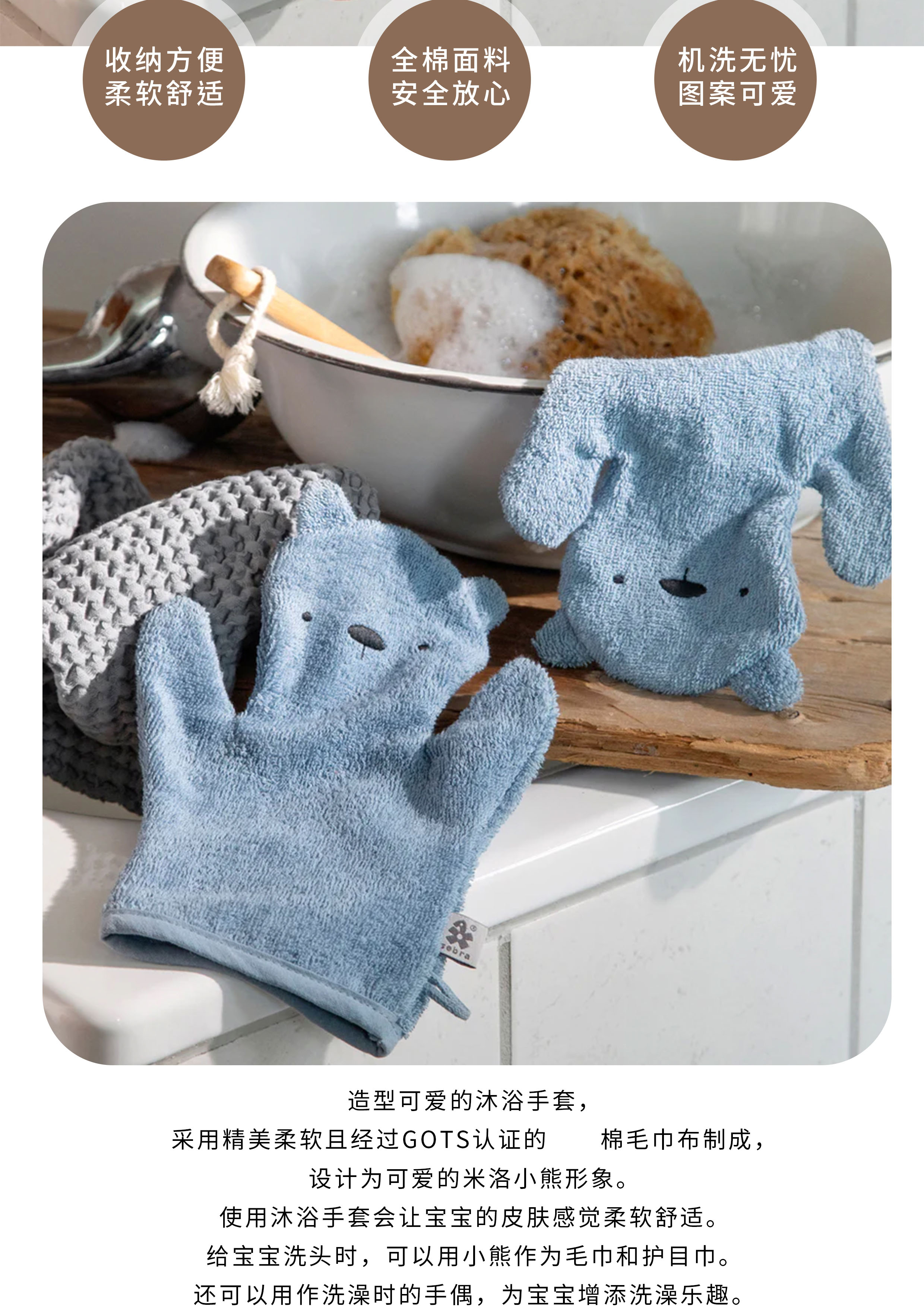 Sebra棉沐浴手套 婴幼儿宝宝搓澡巾去角质沐浴洗澡可爱动物造型