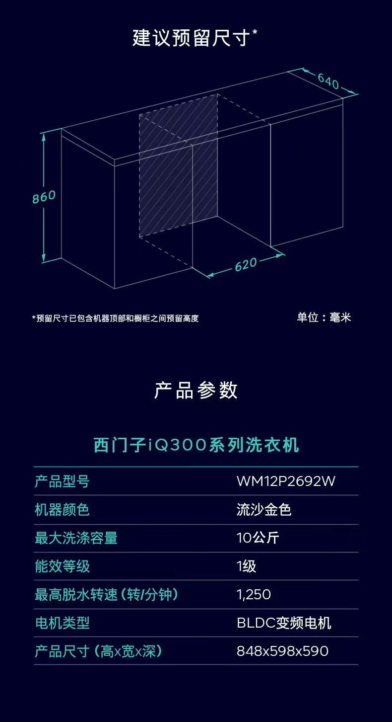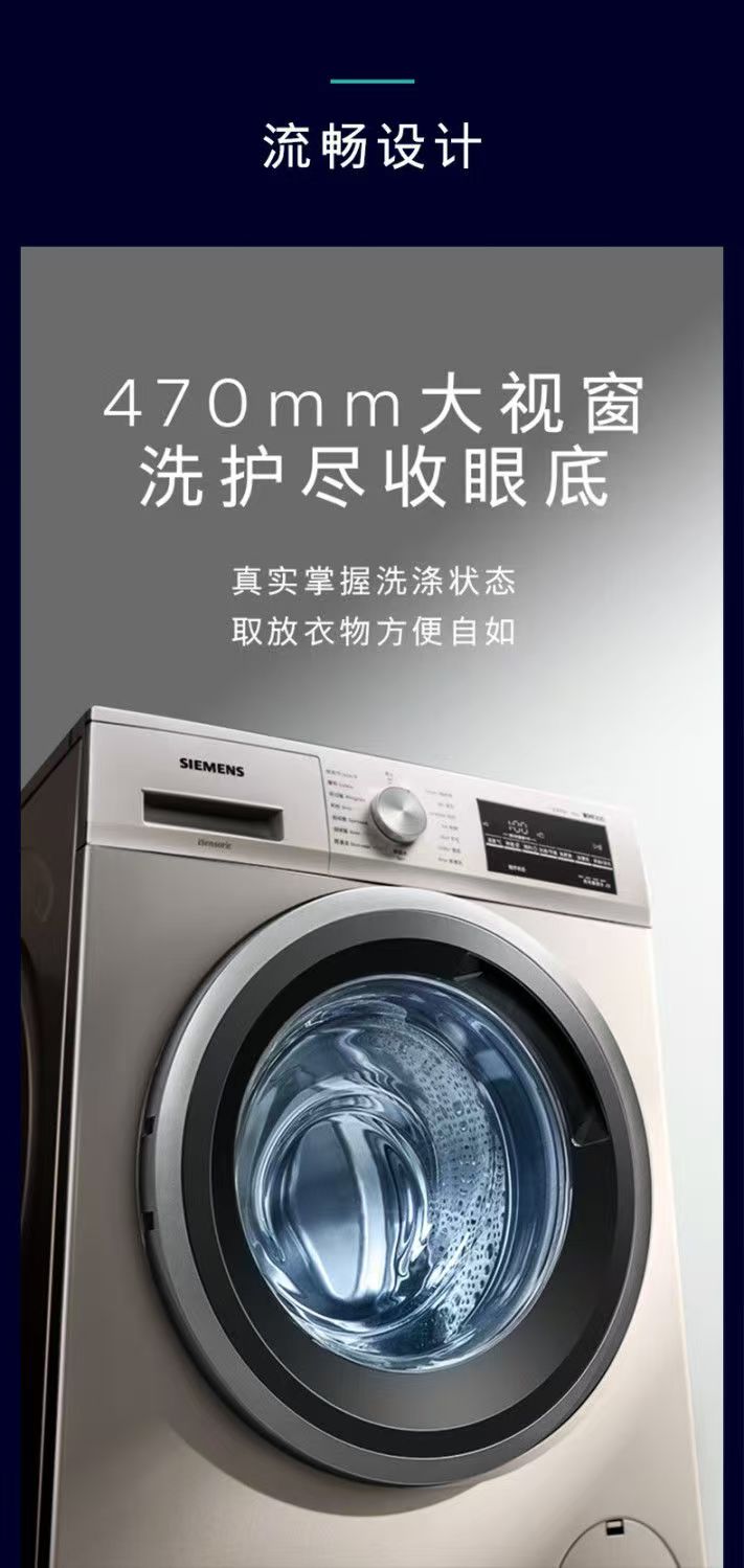 西门子洗衣机10公斤变频滚筒浅金色 WM12P2692W