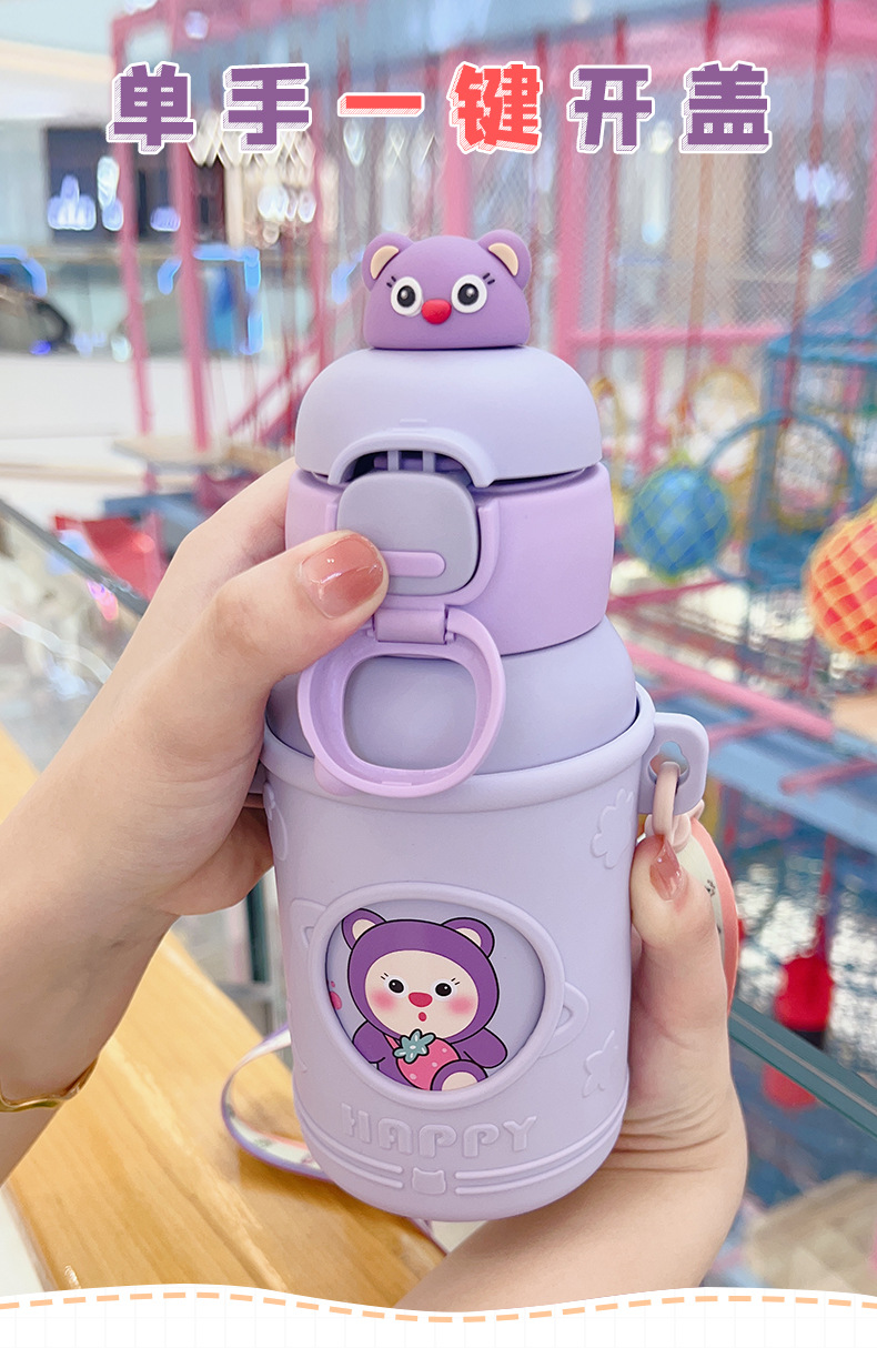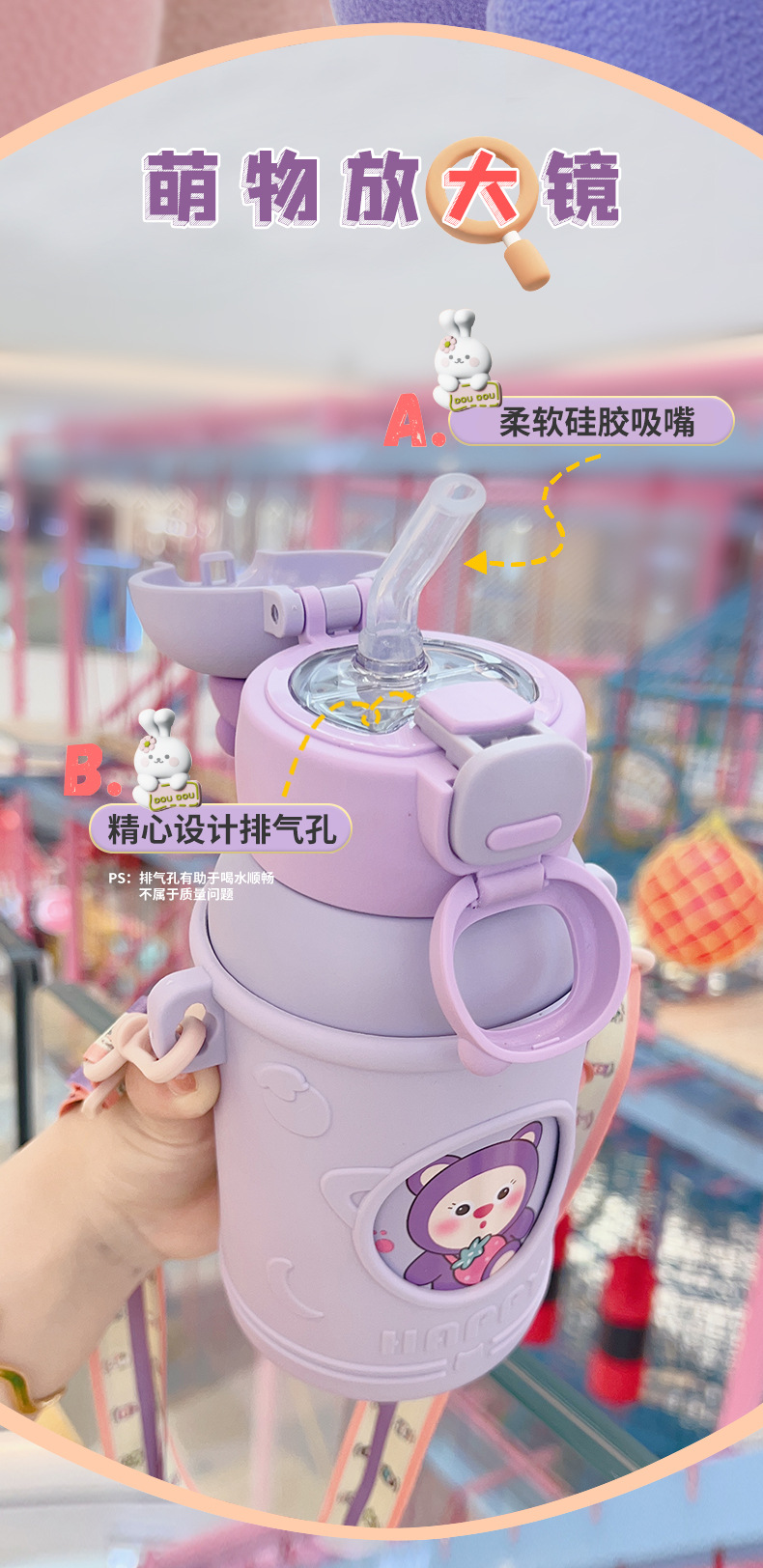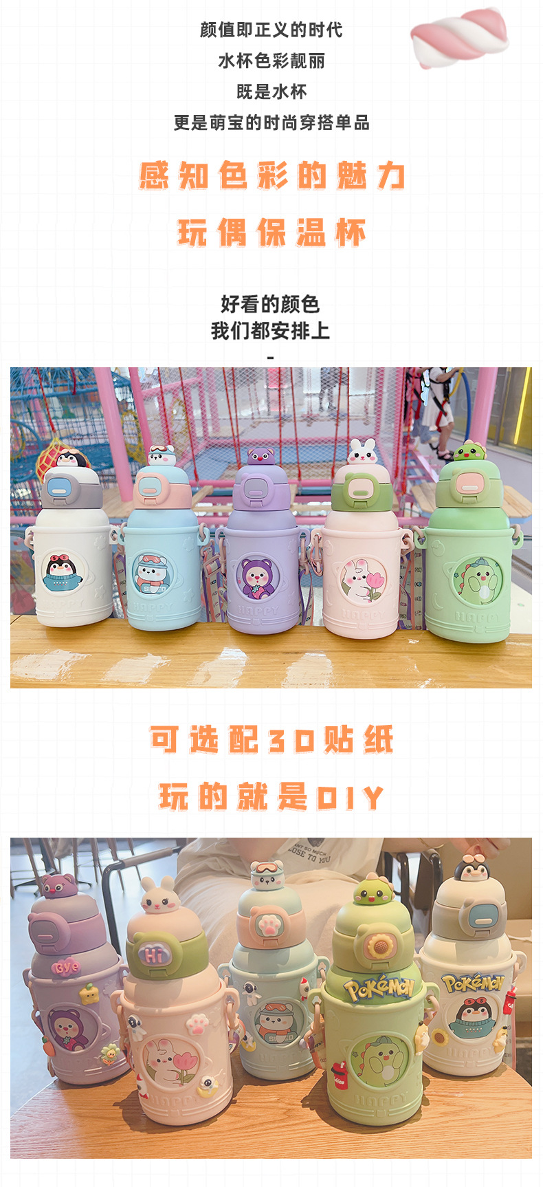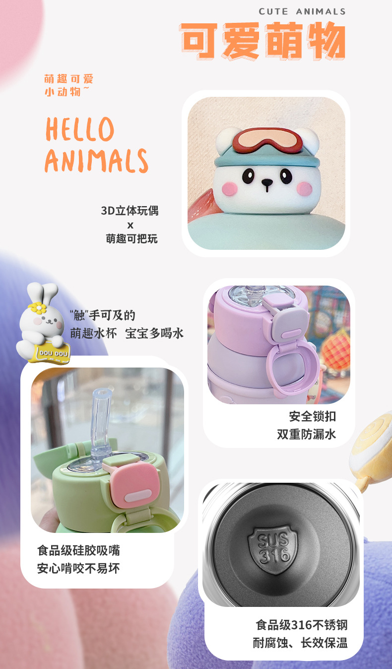 【绚丽卡通,暖心伴】316不锈钢卡通可爱公仔皮套保温杯,时尚热卖,陪伴学生、男女儿童便捷吸管杯,焕发个性!