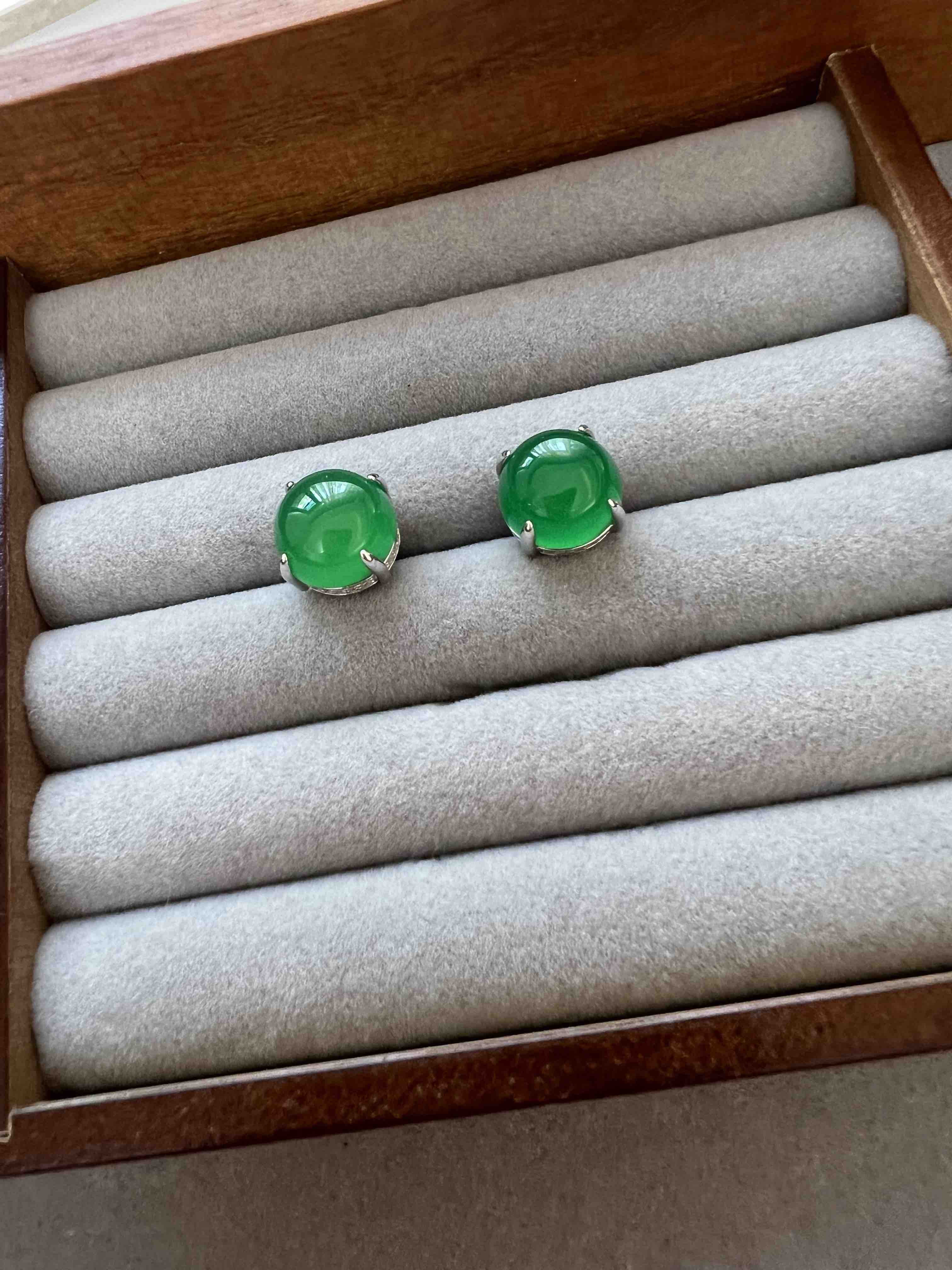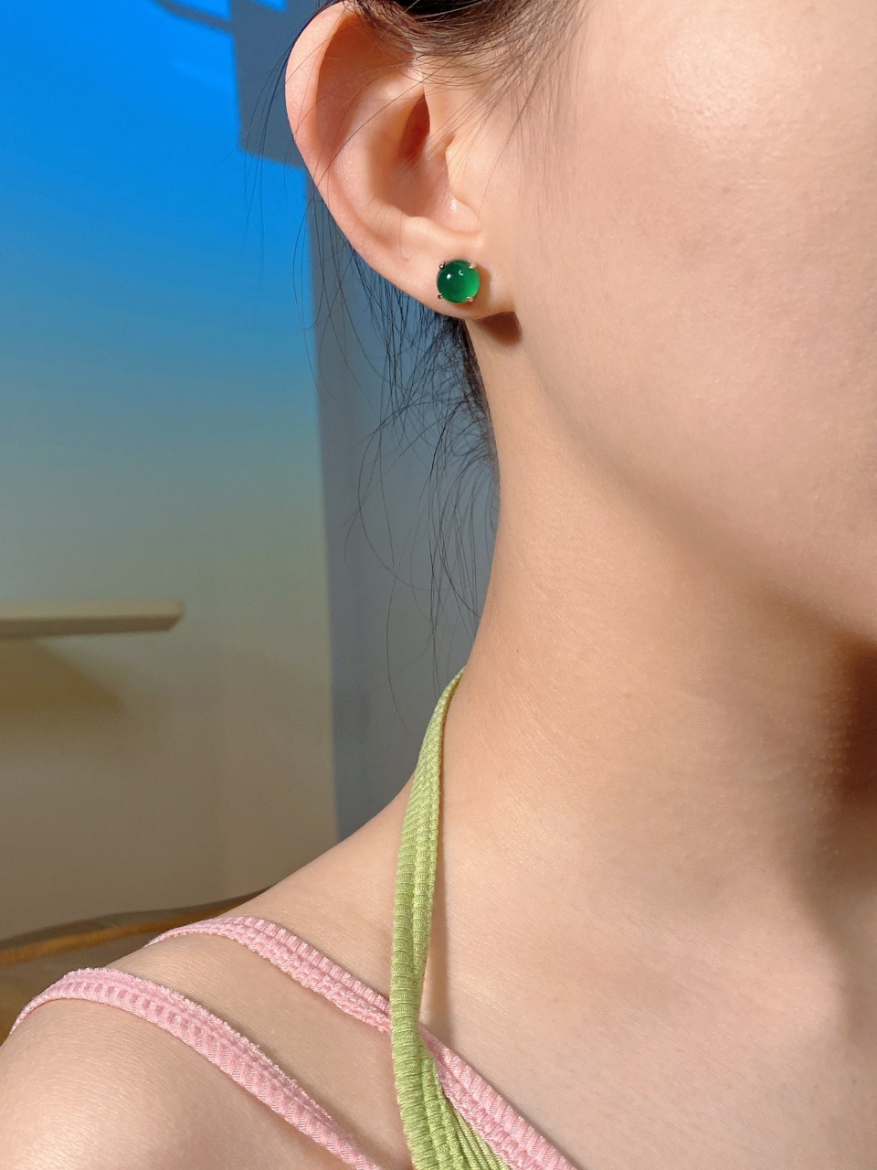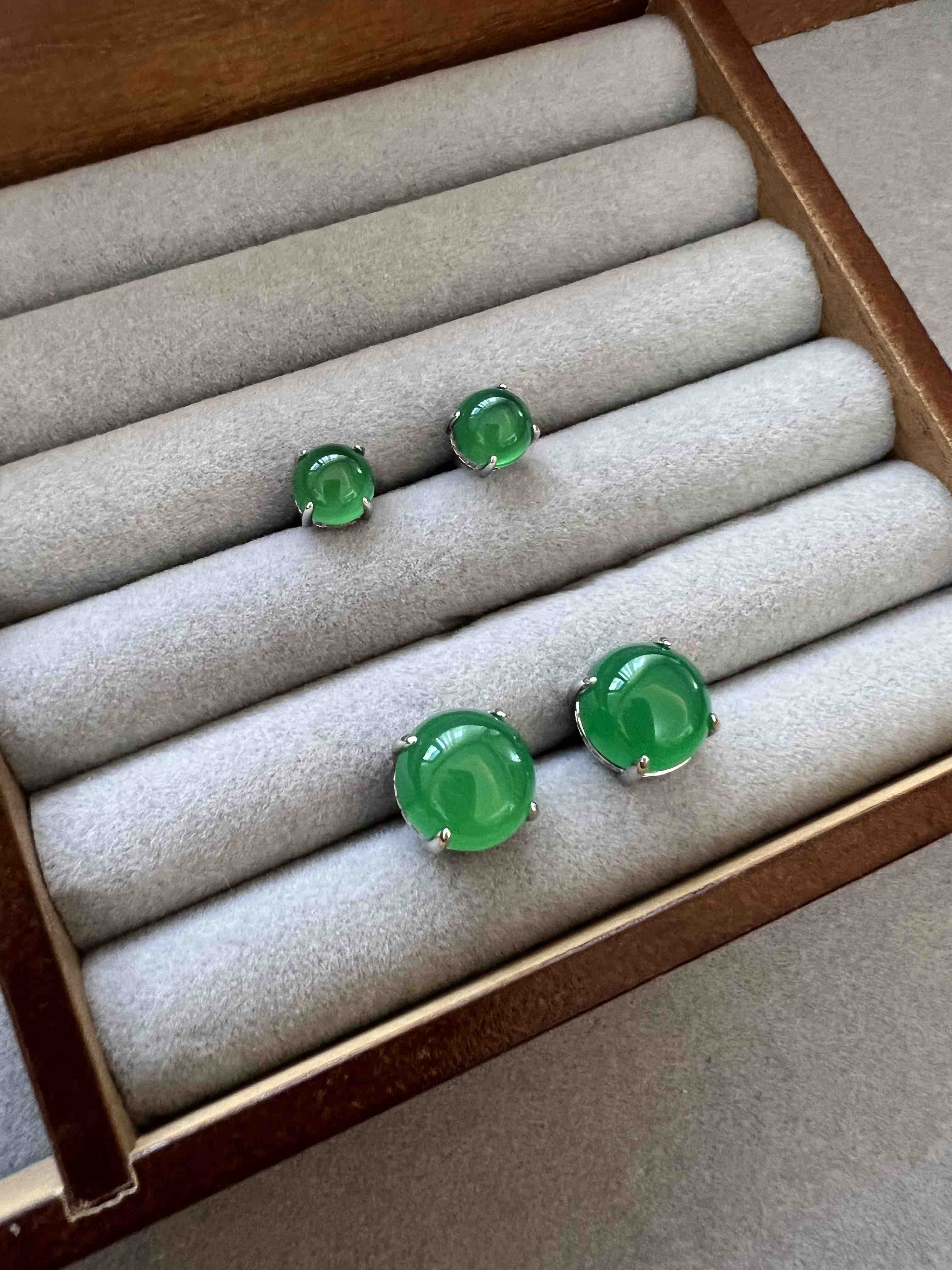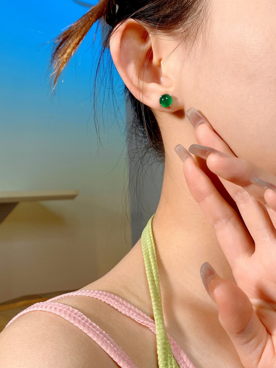 简约看耐,最最最基础,的镶钻四爪玉绿髓耳钉 鸽子蛋素型面【8mm】【12mm】,侧面围镶一圈钻碎,佩戴来起没有死角精的致美观!合适低调的日常,隐隐的绿阳色又让人不敢摩揣其价值,真是的翡翠既视感,我对阳着光拍也有没菜黄色。