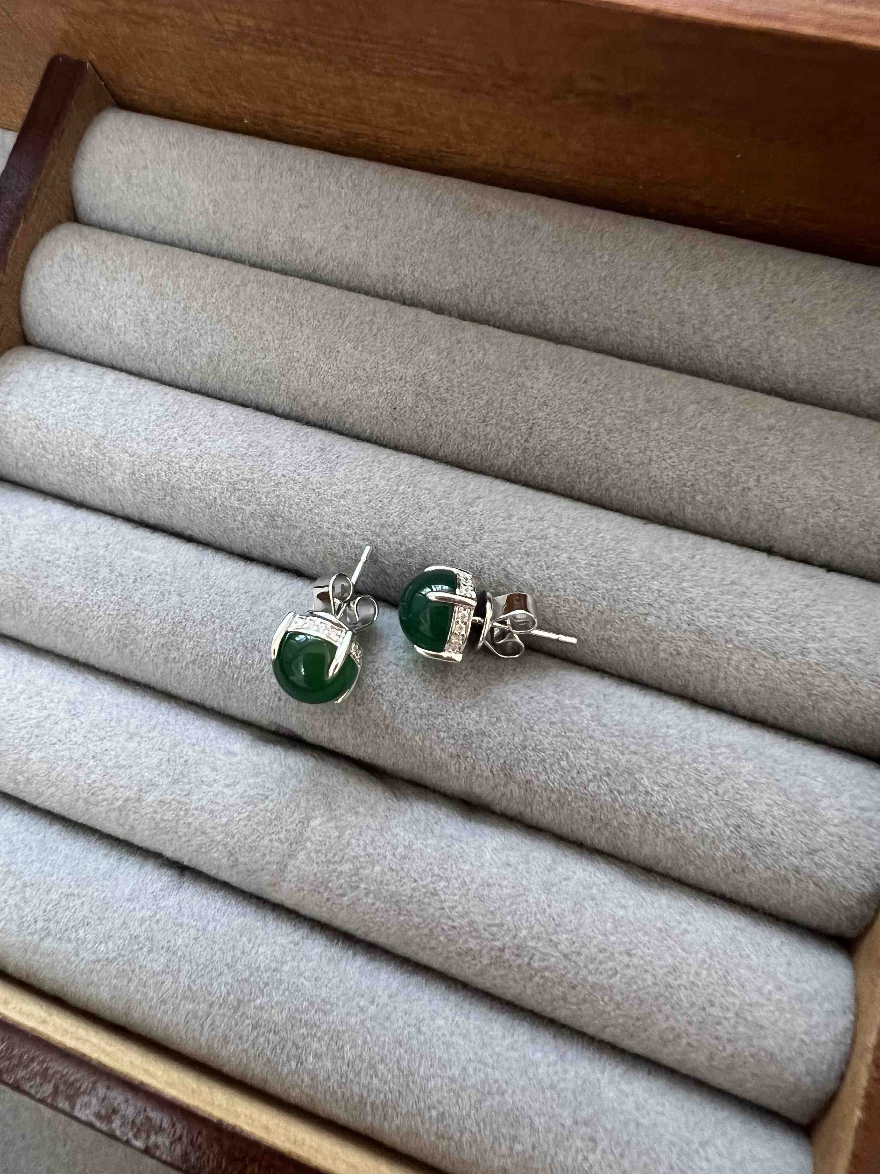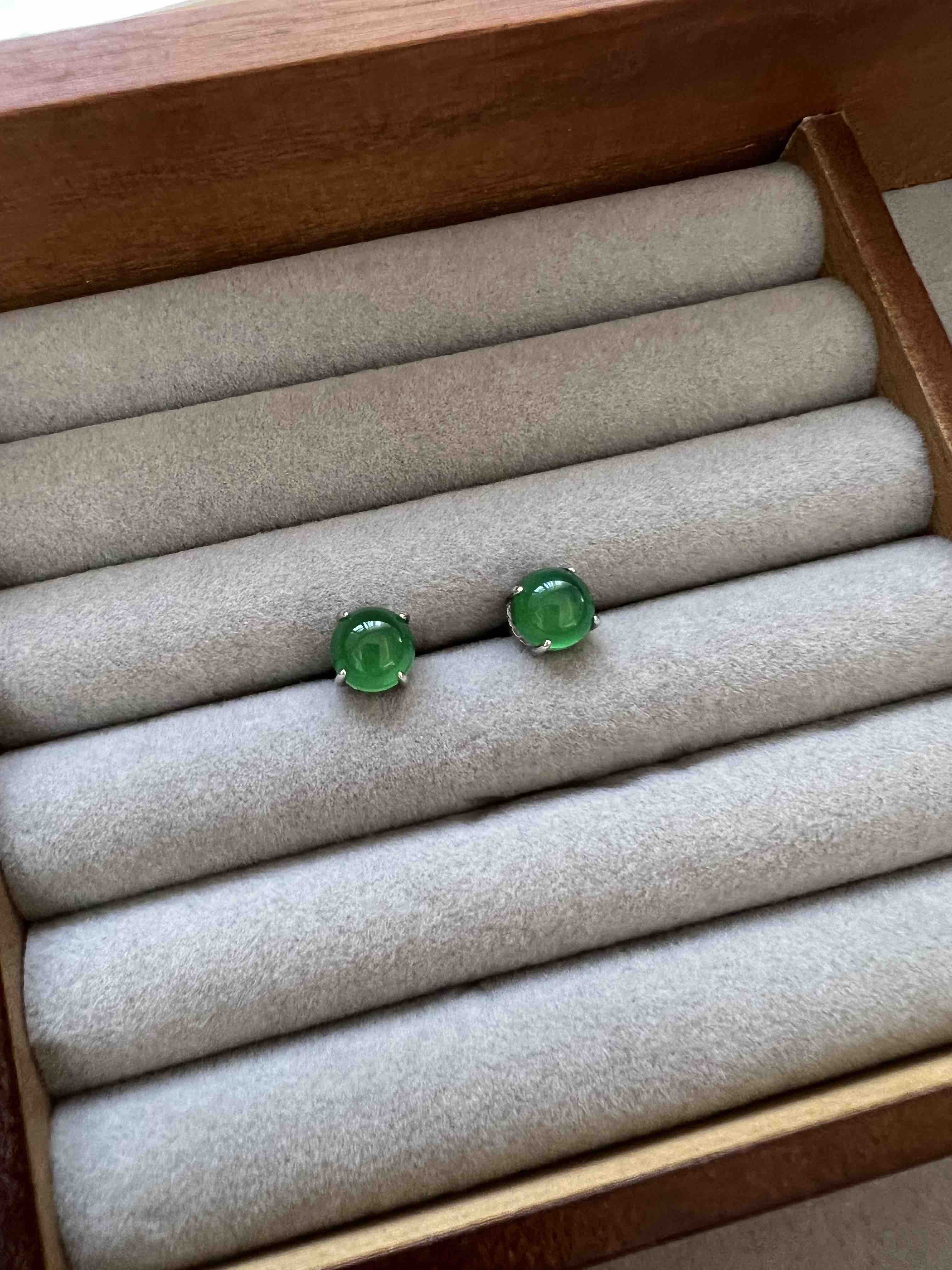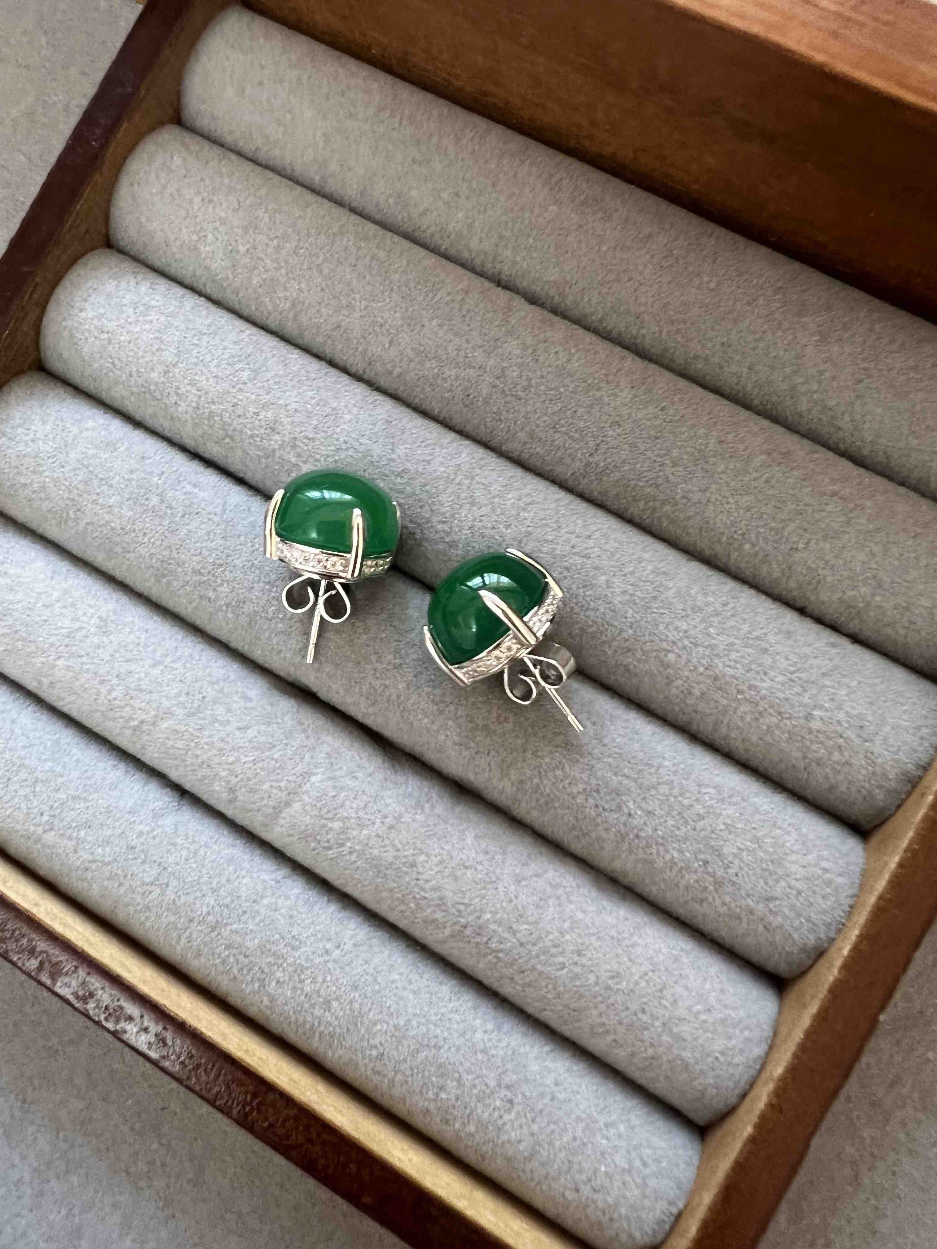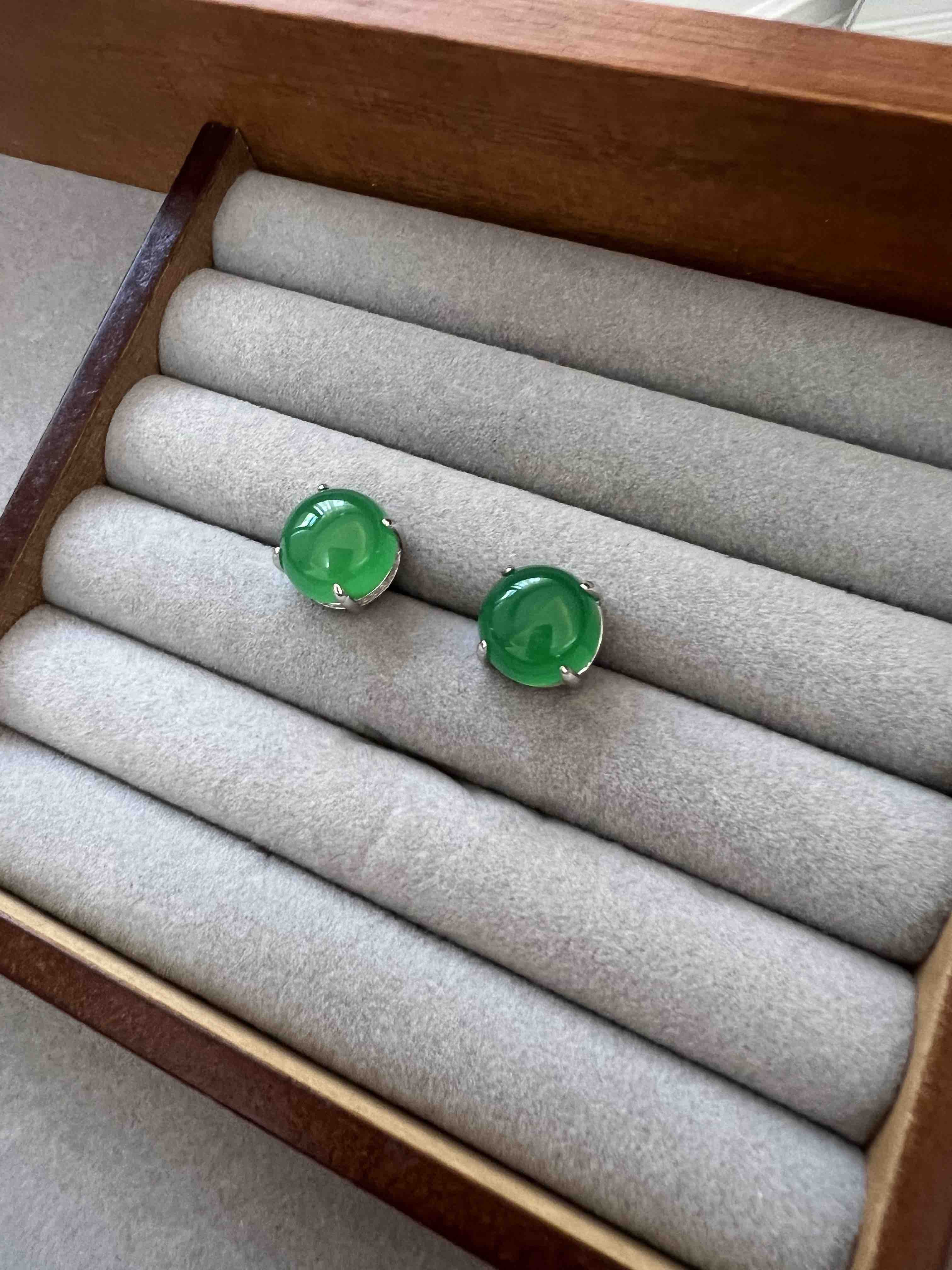 简约看耐,最最最基础,的镶钻四爪玉绿髓耳钉 鸽子蛋素型面【8mm】【12mm】,侧面围镶一圈钻碎,佩戴来起没有死角精的致美观!合适低调的日常,隐隐的绿阳色又让人不敢摩揣其价值,真是的翡翠既视感,我对阳着光拍也有没菜黄色。