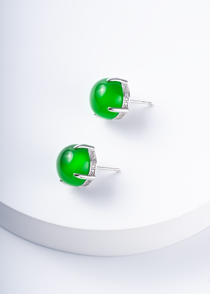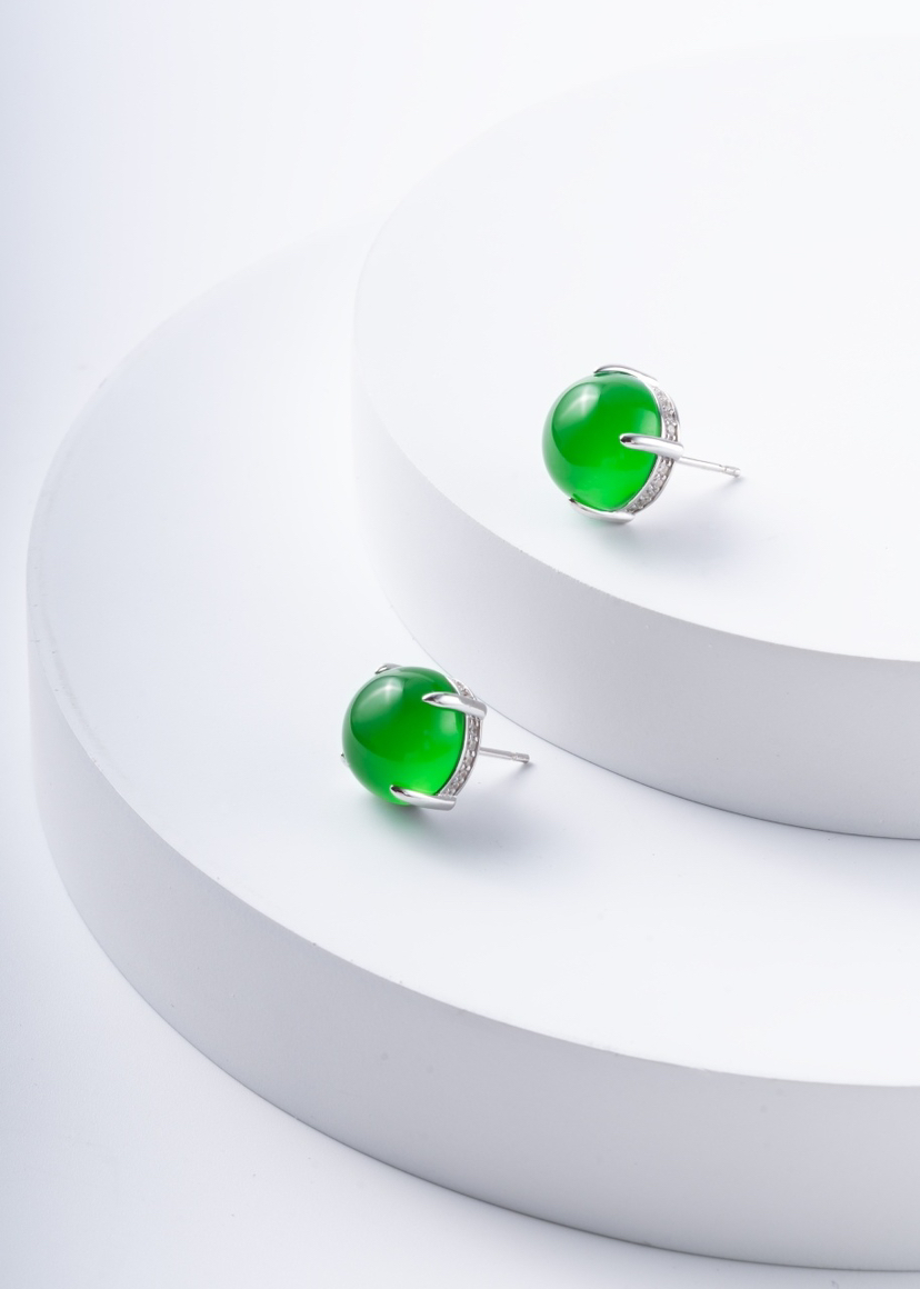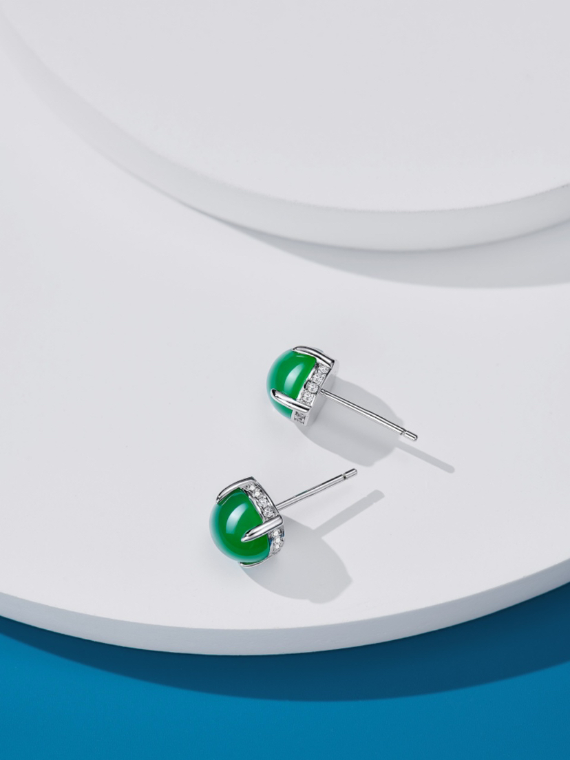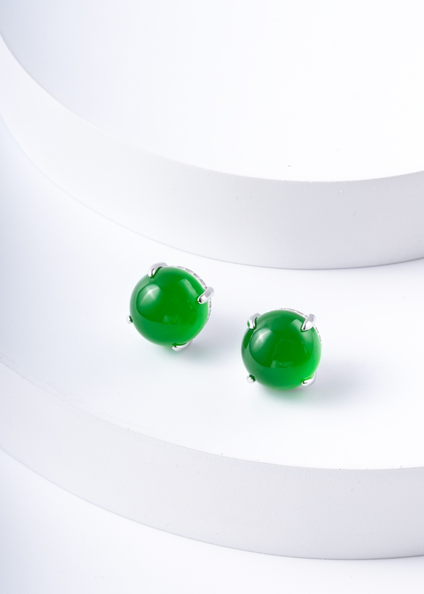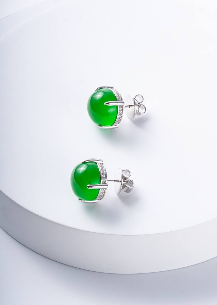 简约看耐,最最最基础,的镶钻四爪玉绿髓耳钉 鸽子蛋素型面【8mm】【12mm】,侧面围镶一圈钻碎,佩戴来起没有死角精的致美观!合适低调的日常,隐隐的绿阳色又让人不敢摩揣其价值,真是的翡翠既视感,我对阳着光拍也有没菜黄色。