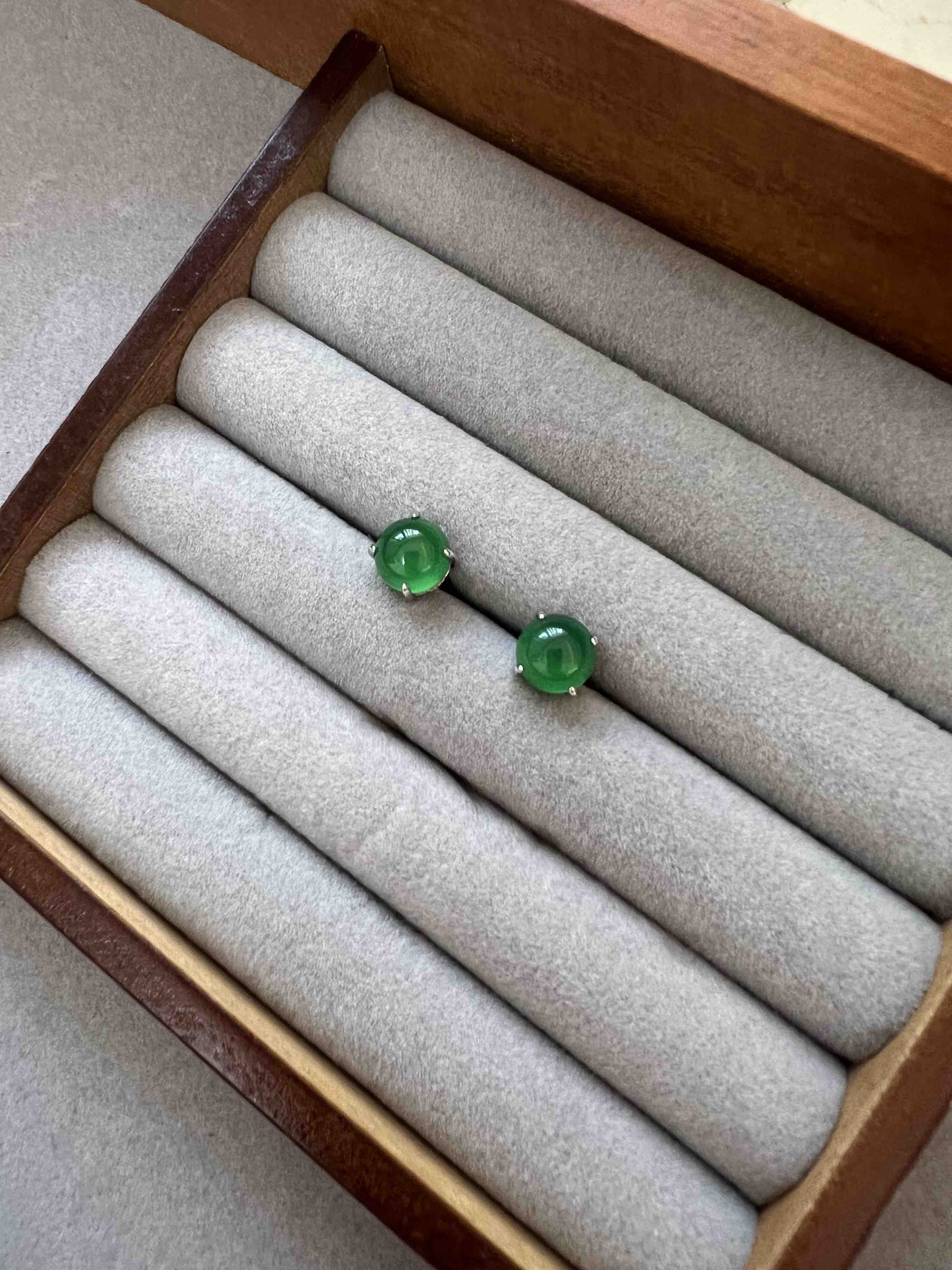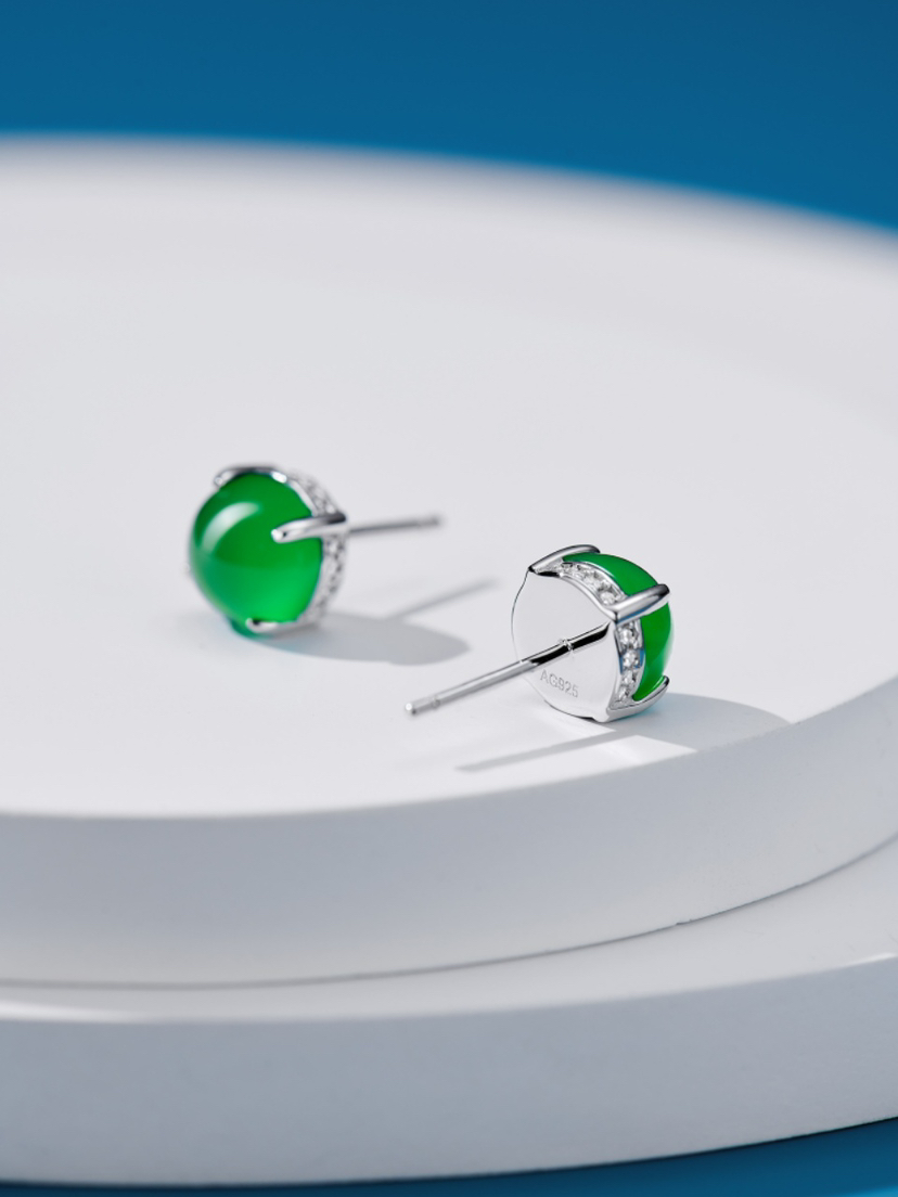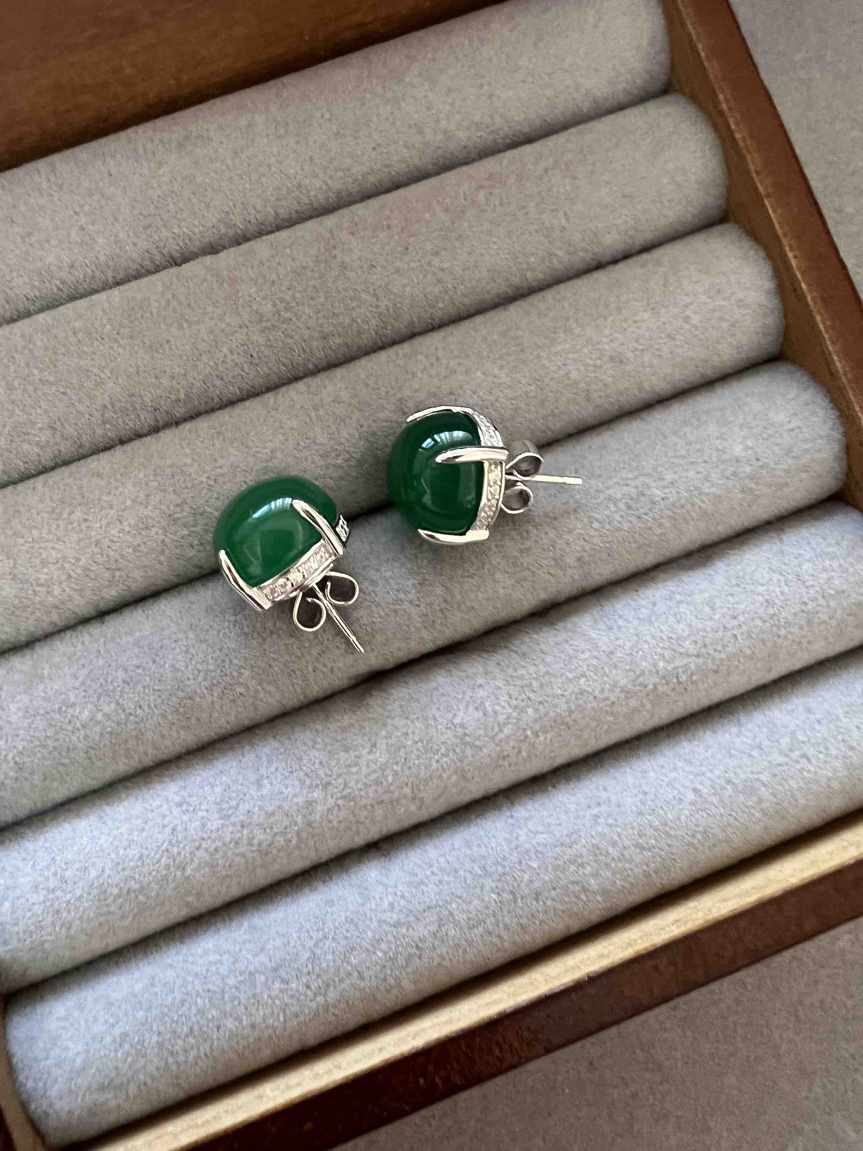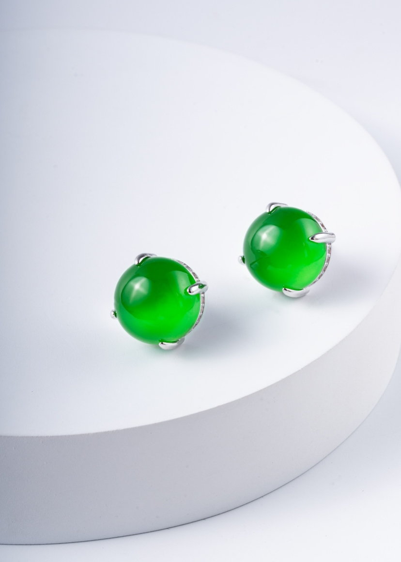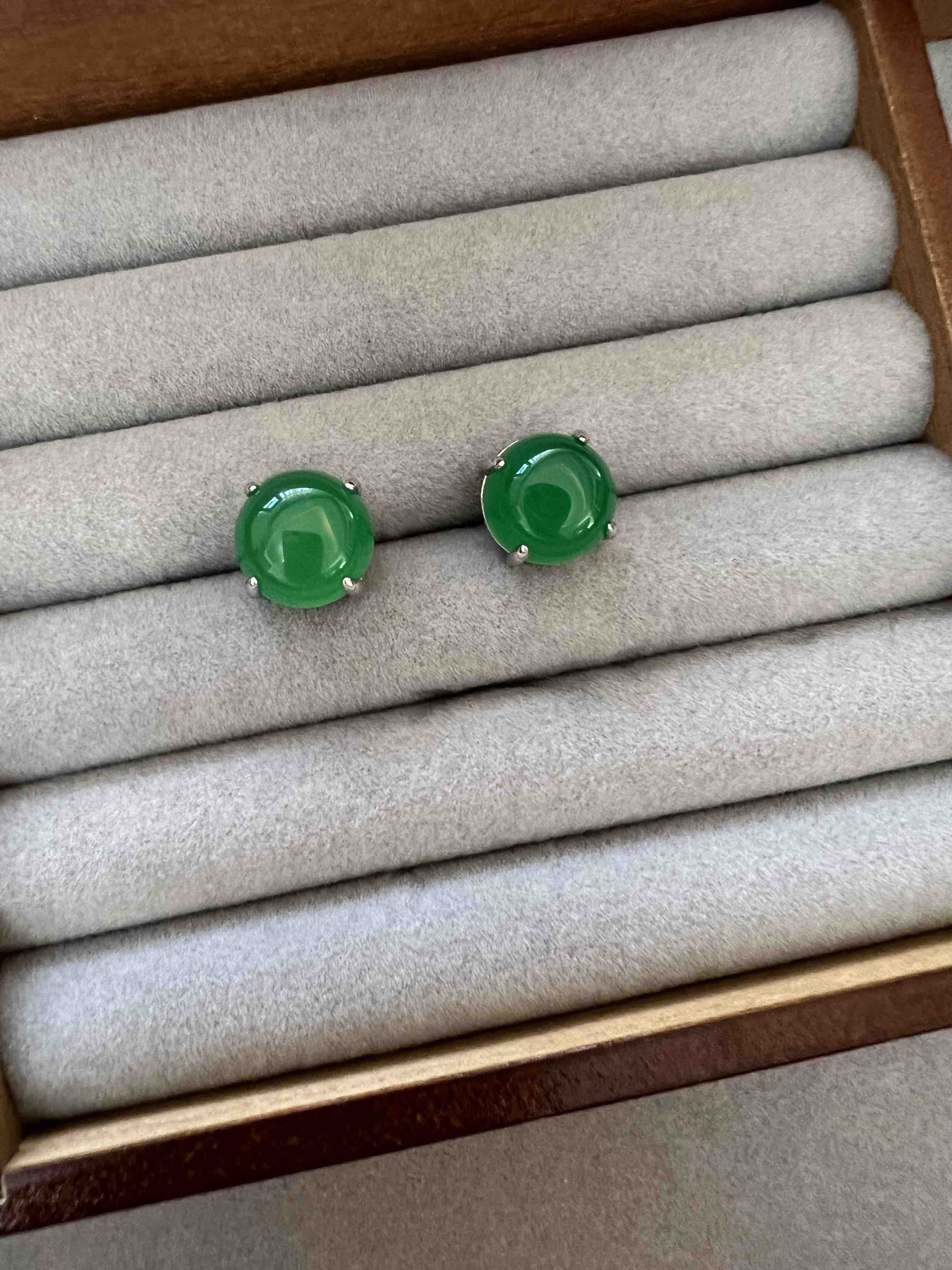 简约看耐,最最最基础,的镶钻四爪玉绿髓耳钉 鸽子蛋素型面【8mm】【12mm】,侧面围镶一圈钻碎,佩戴来起没有死角精的致美观!合适低调的日常,隐隐的绿阳色又让人不敢摩揣其价值,真是的翡翠既视感,我对阳着光拍也有没菜黄色。