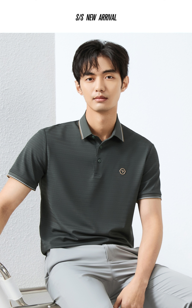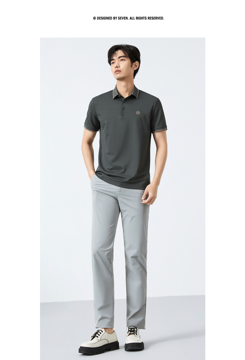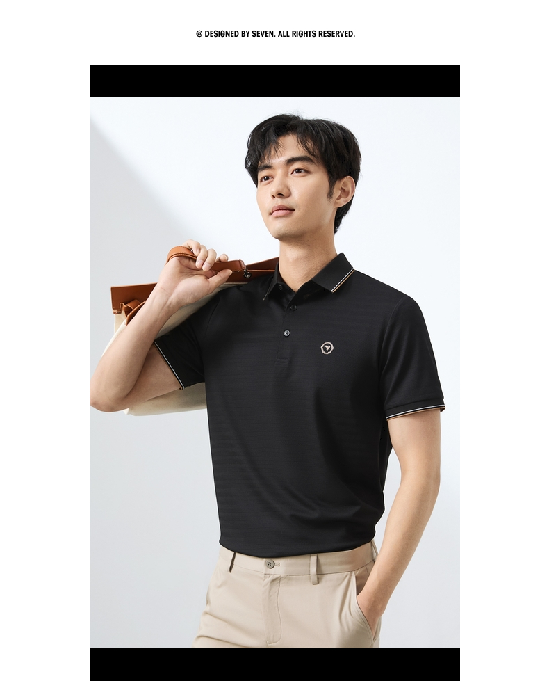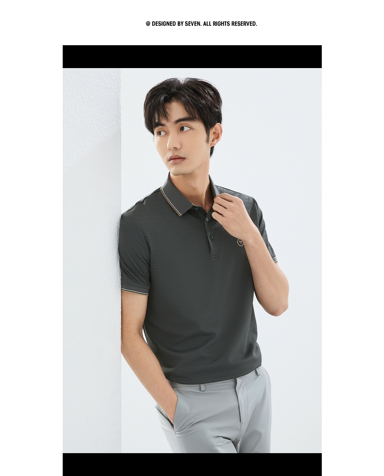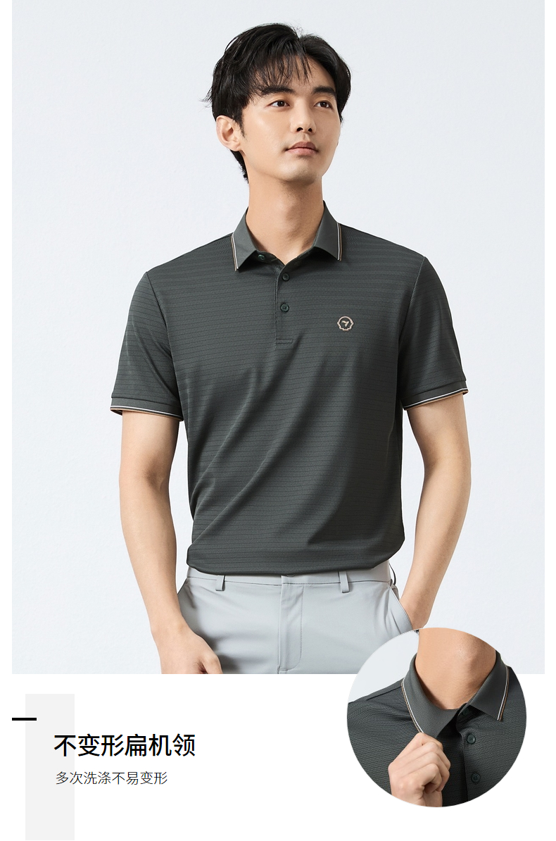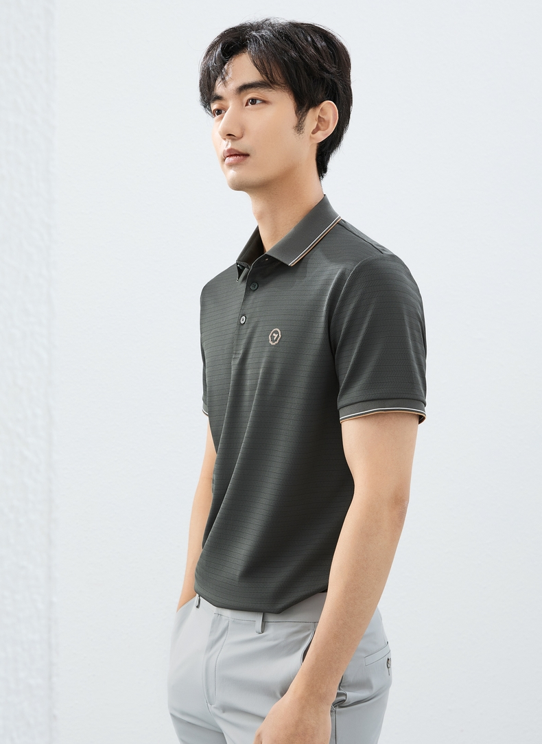 【肌理条POLO衫】柒牌短袖POLO衫男2025夏季新品条纹肌理翻领上衣128T71160