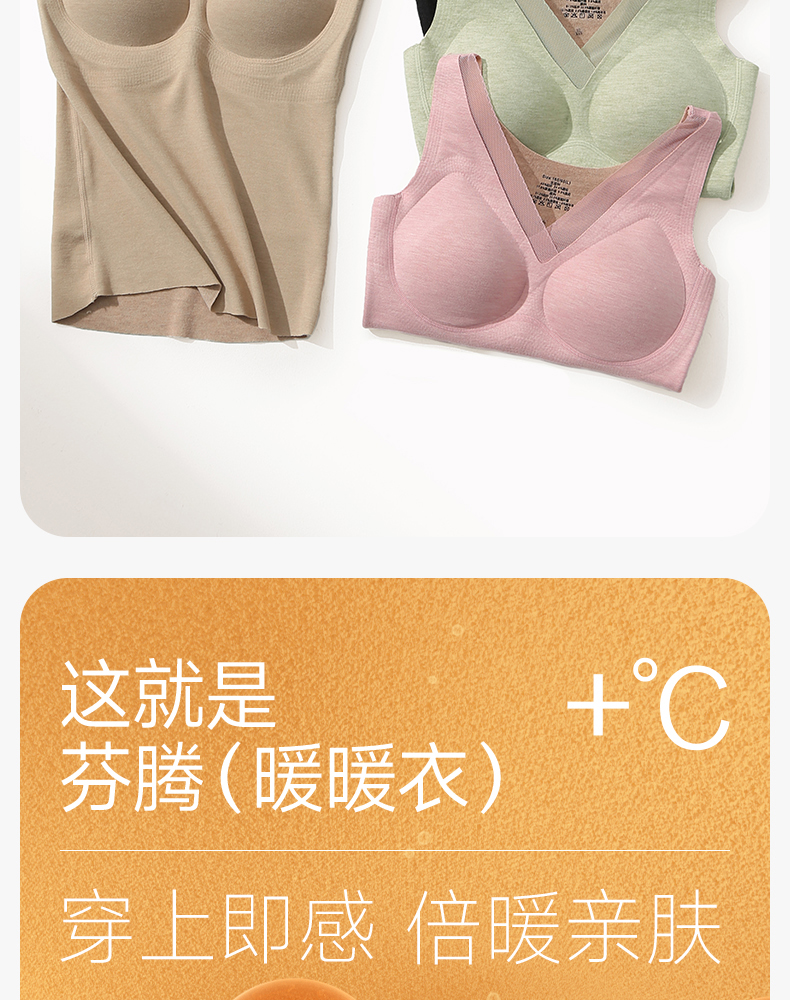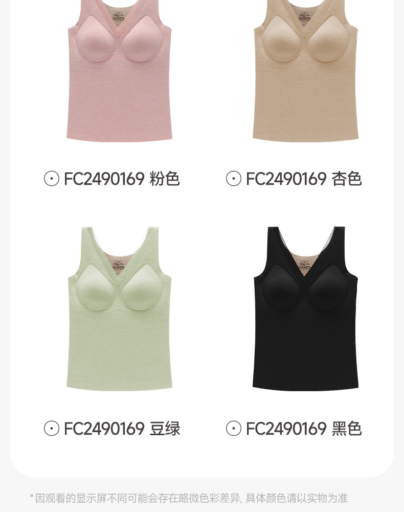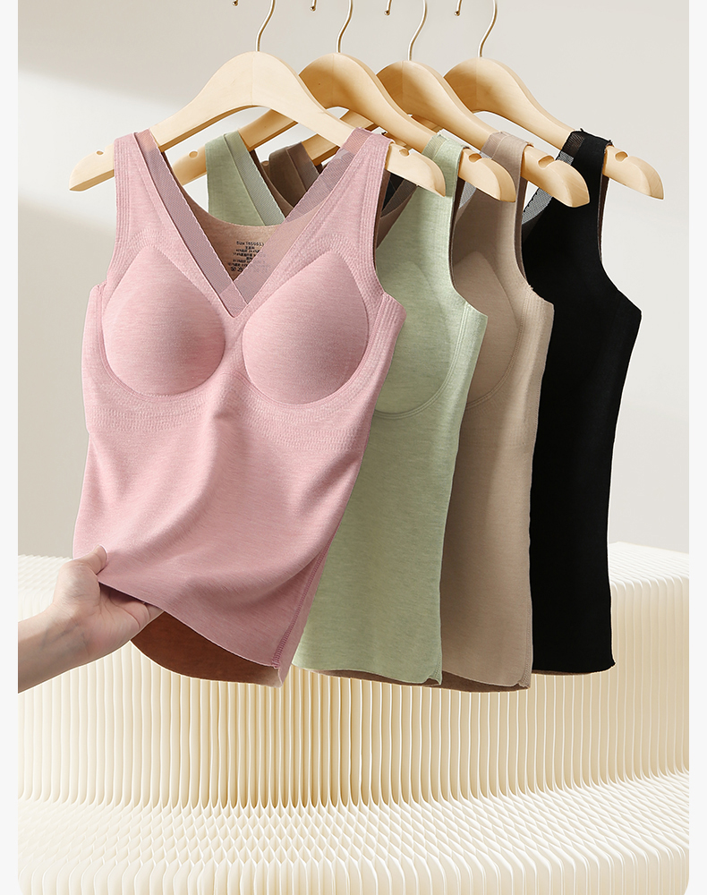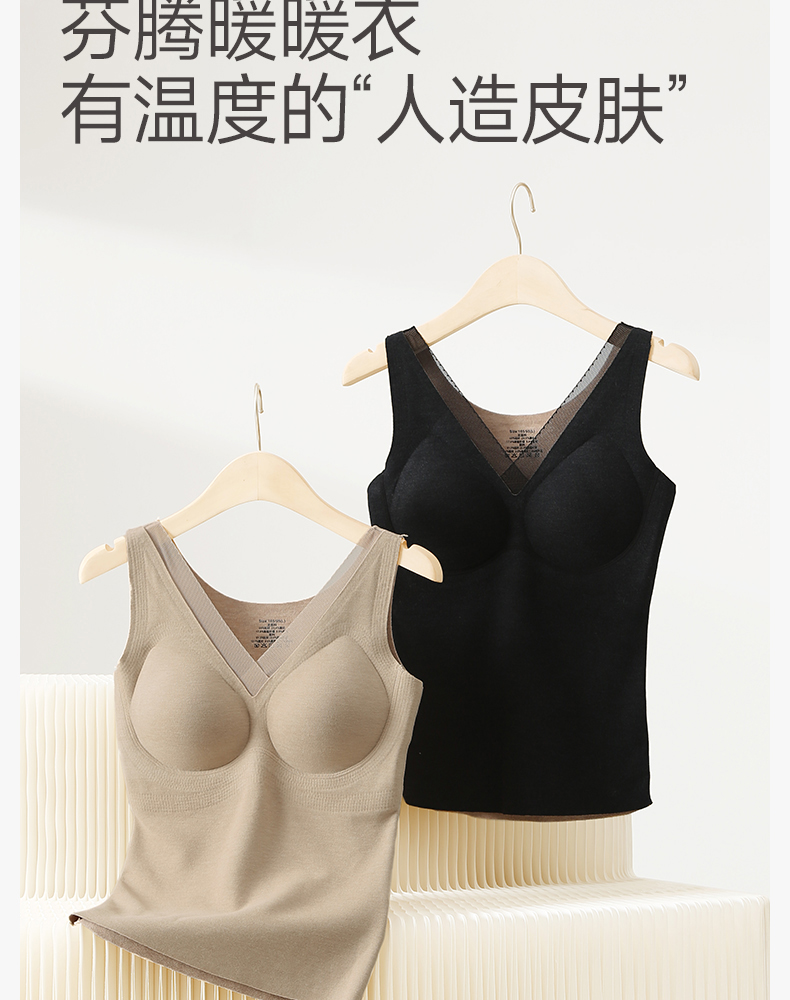带胸垫德绒背心 舒适纯色内搭上衣冬季芬腾保暖