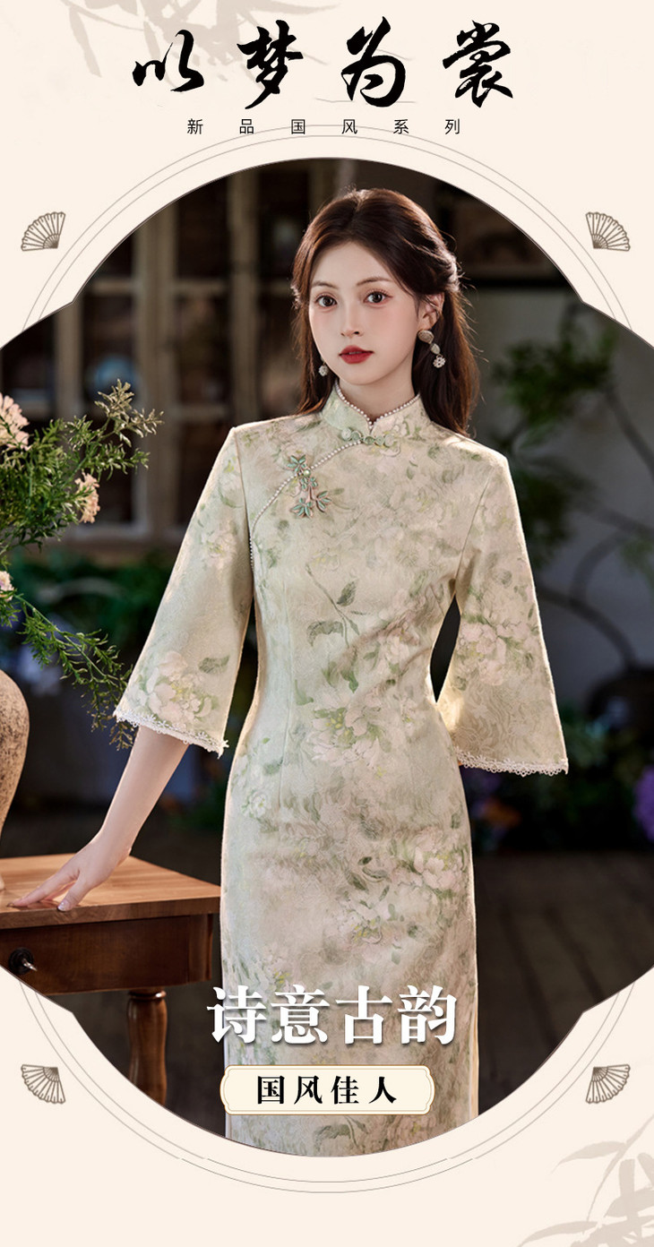 2025新款新中式年轻款少女小清新夏季日常通勤复古国风旗袍GSJ9389