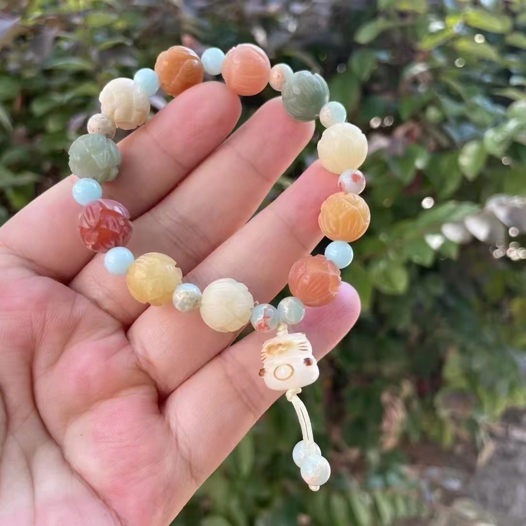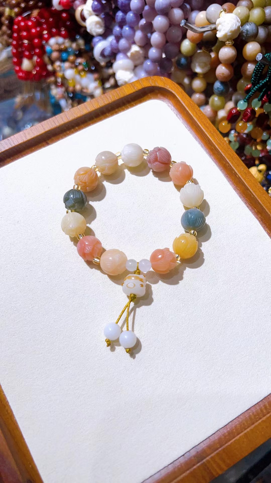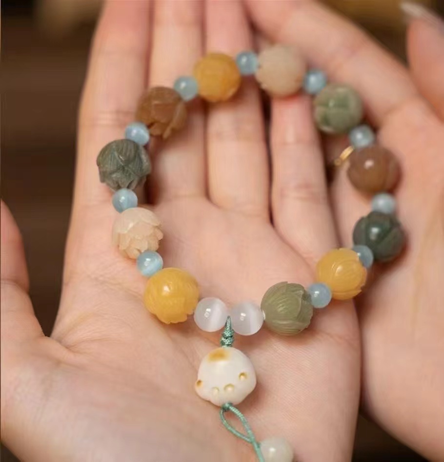 天然菩提根多宝莲花手珠好运莲莲有米花手珠