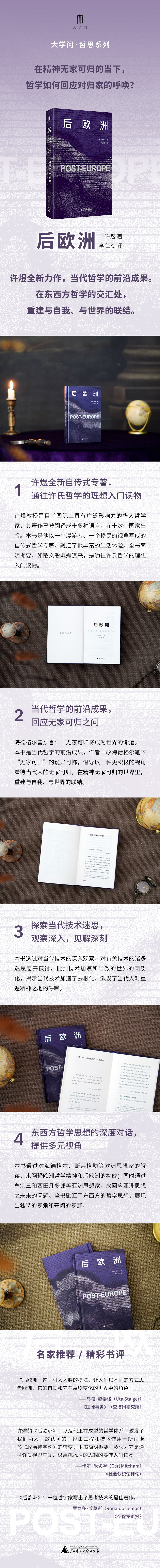在过去几十年里,人们不断地呼唤去欧洲化,并一再地提出后欧洲的理念,那欧洲哲学还有何为?哲学该如何回应欧洲的他者?除了对欧洲中心主义的琐碎批评,他者还能如何回应欧洲的遗产?在世界越发动荡不安的今天,哲学又该如何回应对于归家的呼唤?出于对这一系列问题的思考,许煜教授写下了这本自传式的哲学小书《后欧洲》。