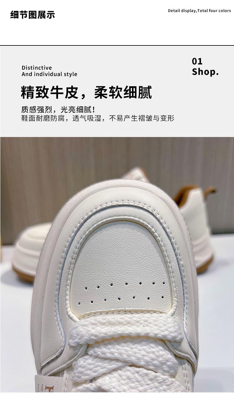 真皮小白鞋女2024春季新款女士圆头平底鞋休闲百搭鞋子女增高女鞋