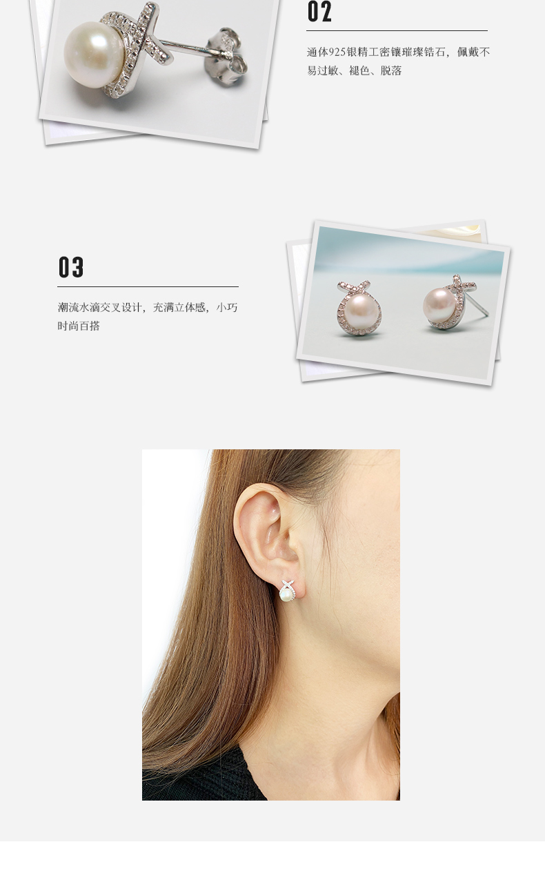 美裕 银925淡水珍珠耳钉7-8mm白 107232