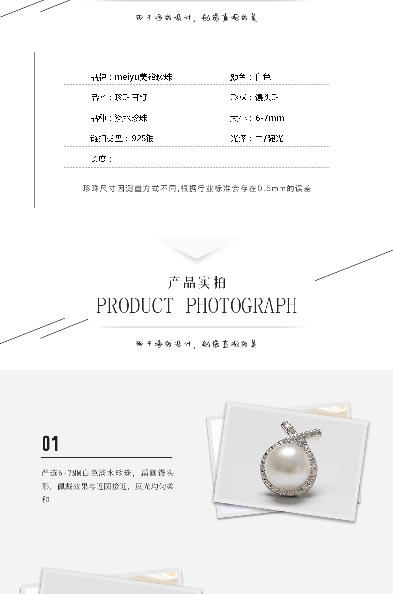 美裕 【水滴】银925淡水珍珠耳钉6-7mm白103600