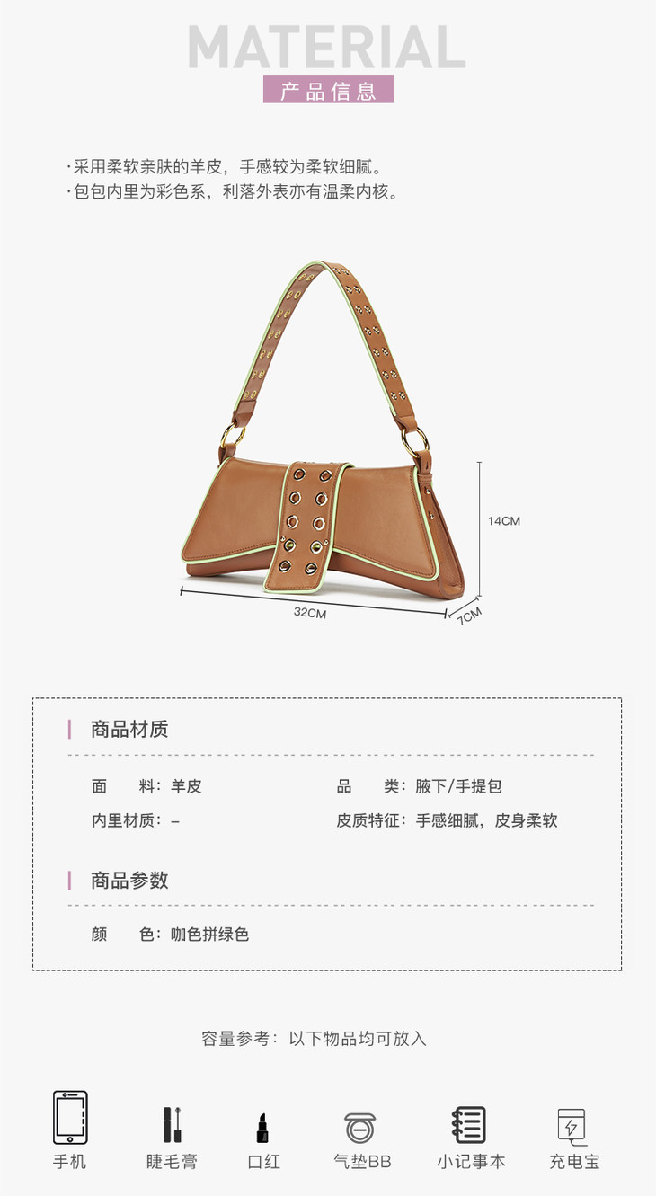 【下架】lost in echo大号巴雷特滚边腋下包咖色