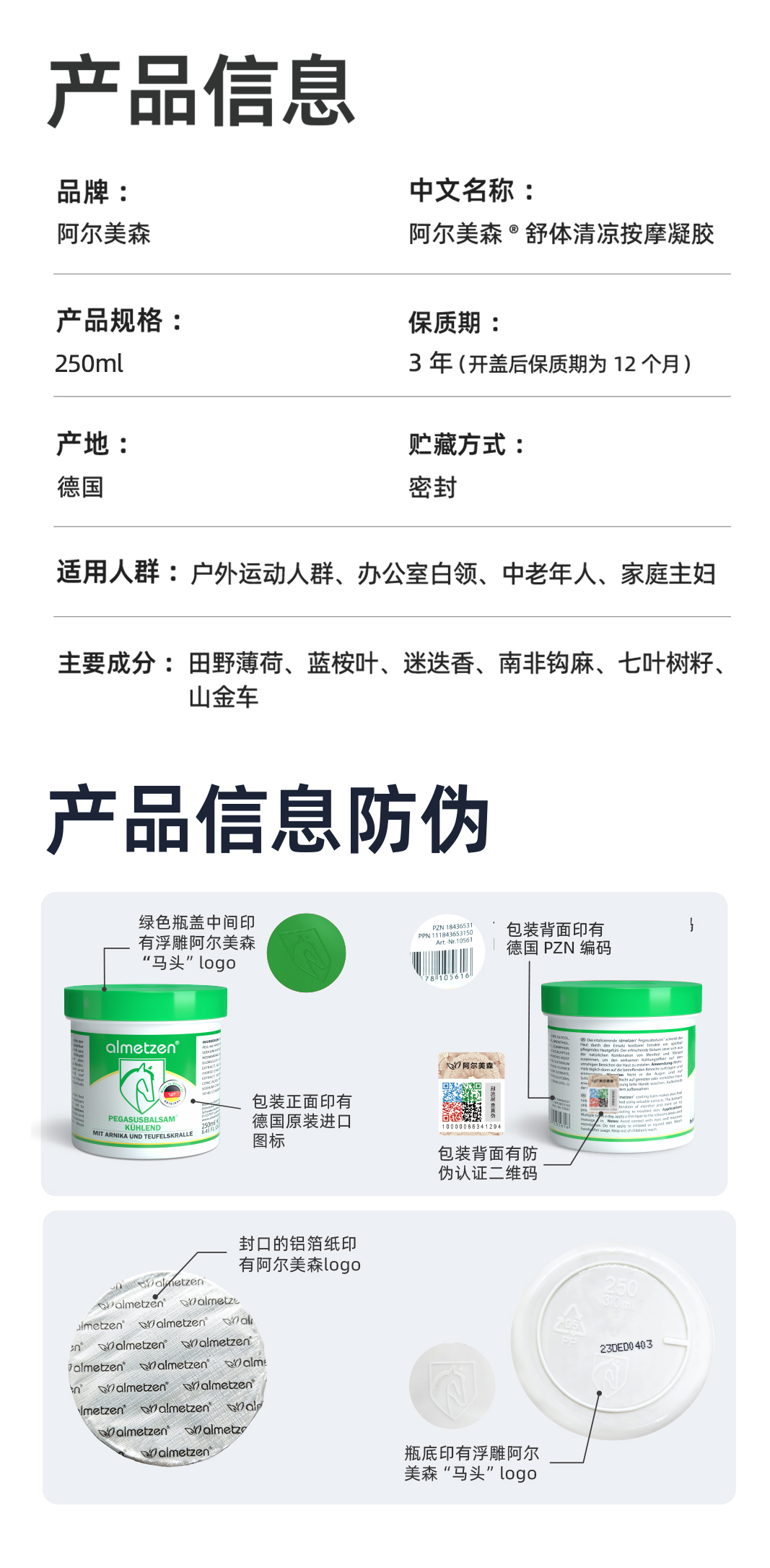 德国almetzen阿尔美森 舒体/清凉按摩凝胶 280ml 草本呵护 运动常备关节防护