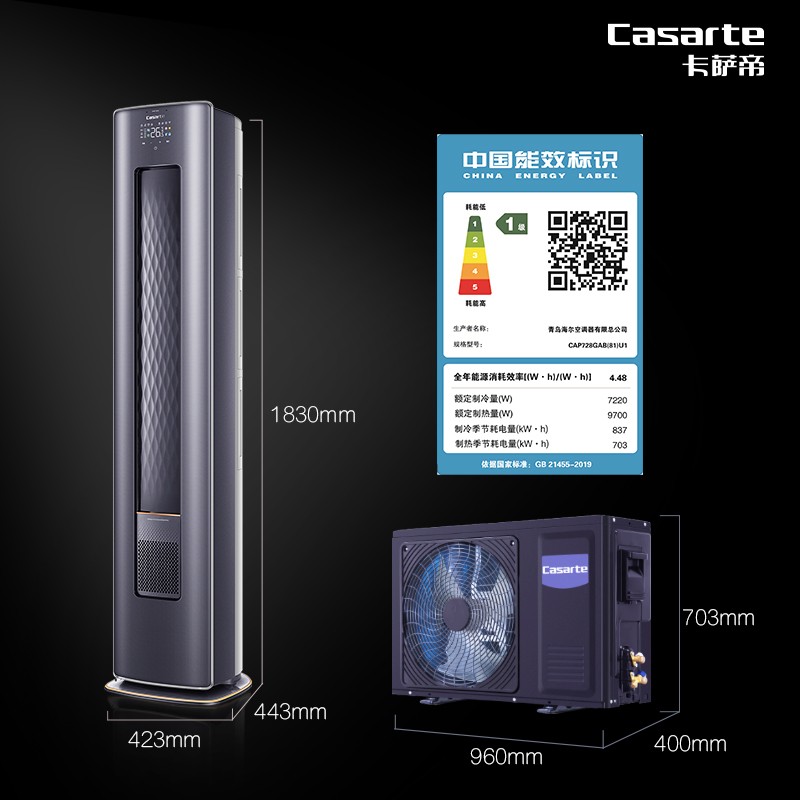 卡萨帝 (Casarte)新一级 新风系统 变频3匹立式柜机 银河 全空间衡温新风 CAP728GAB(81)U1