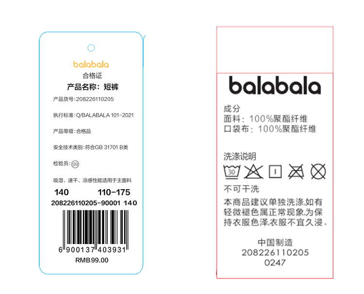 【balaOne】巴拉巴拉童装儿童短裤男童2026夏装薄款女童裤子运动
