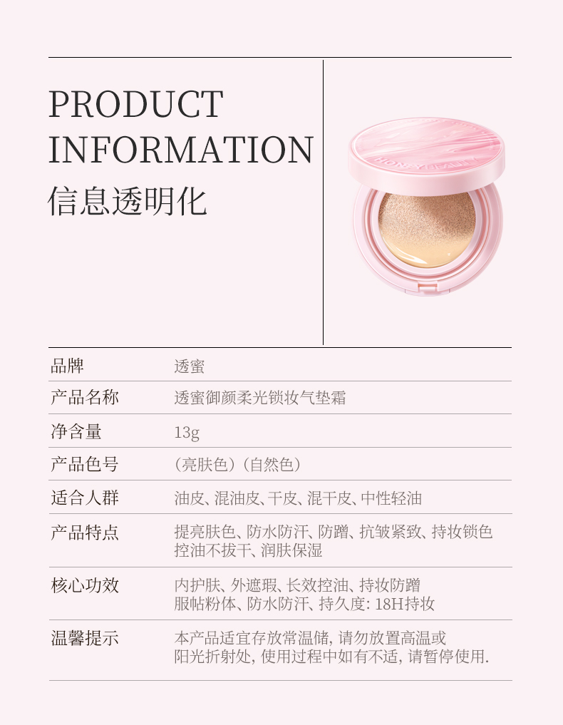 【新品上新】透蜜 御颜柔光锁妆气垫霜 半永久气垫无暇底妆高遮瑕不假面