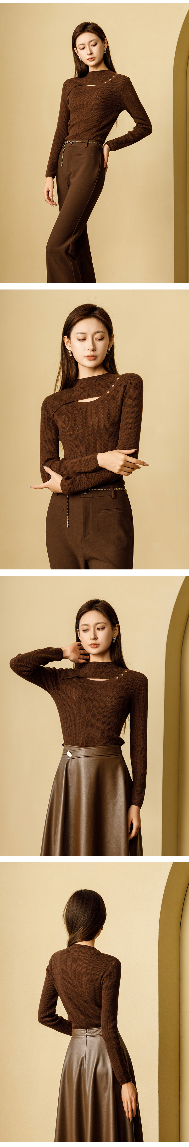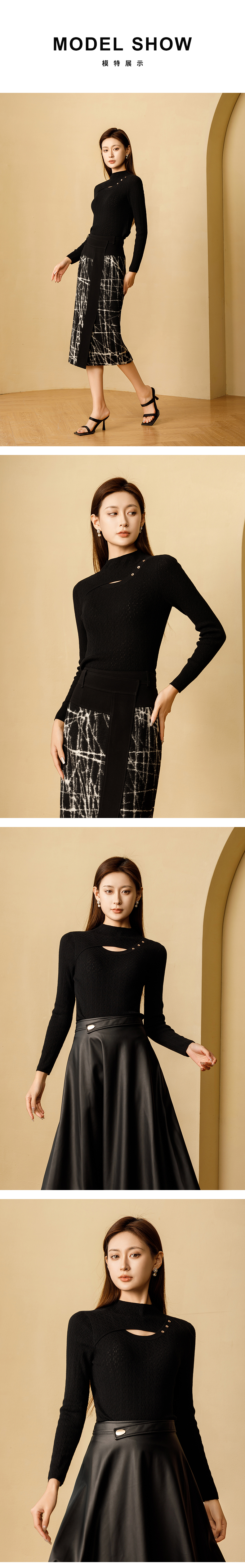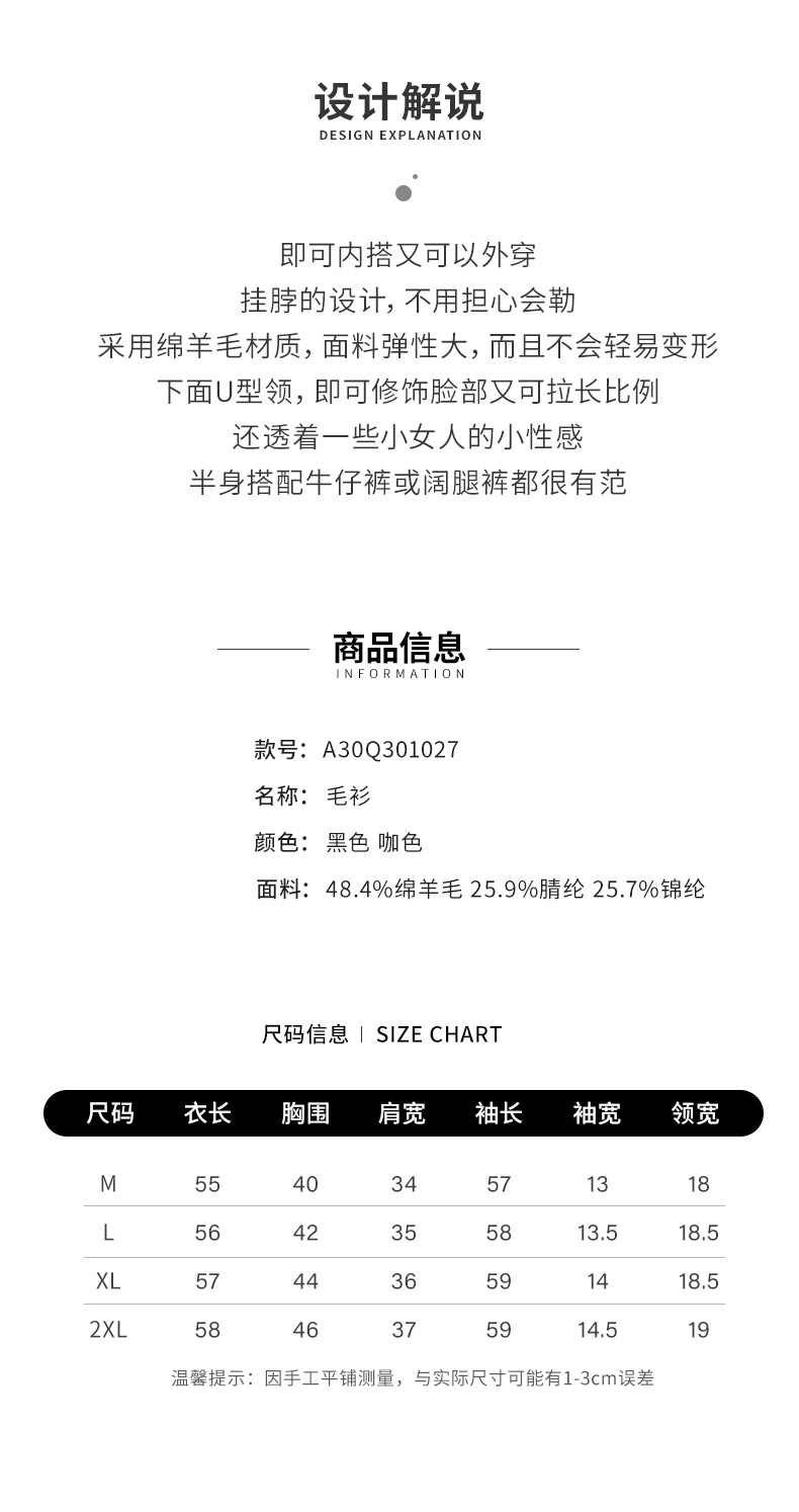 【商场同款】阿菁娜2024秋季新款绵羊毛U型领内搭毛衫A30Q301027