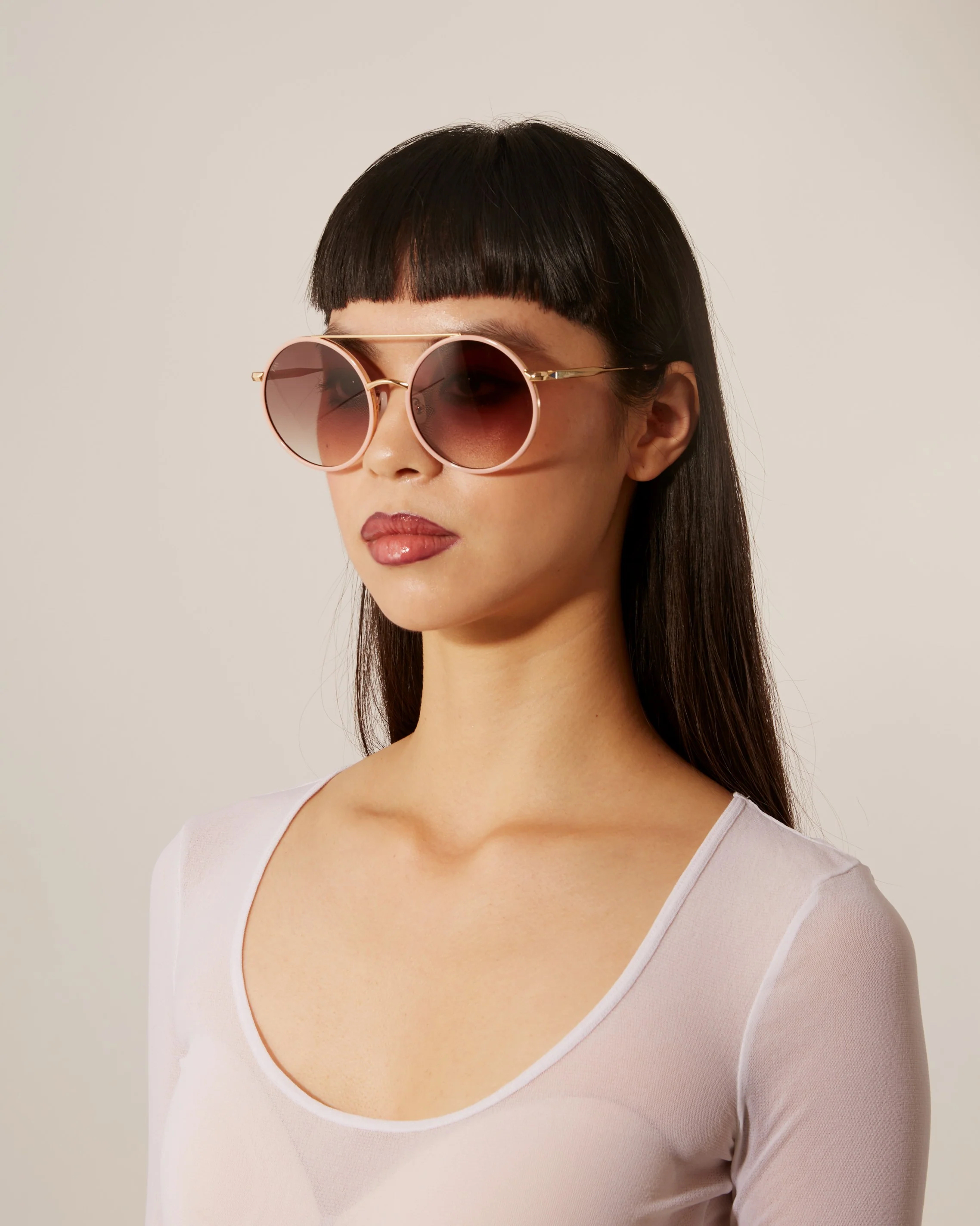 TYNVIE 排褶装饰袖口露背长袖上衣 - 蓝条纹