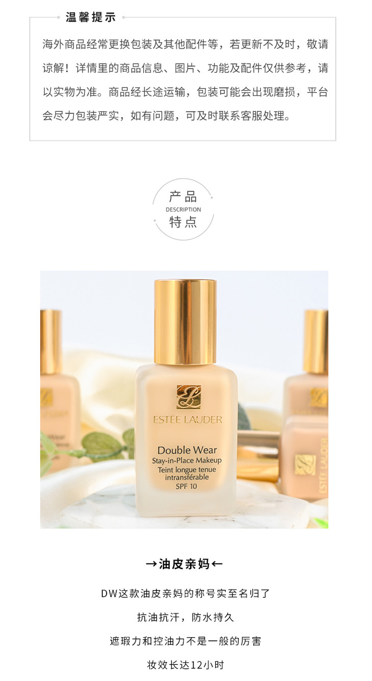雅诗兰黛dw粉底液 遮瑕控油哑光持妆提亮不脱妆水润轻薄油皮亲妈粉底液 30ml ESTĒE LAUDER/estee lauder