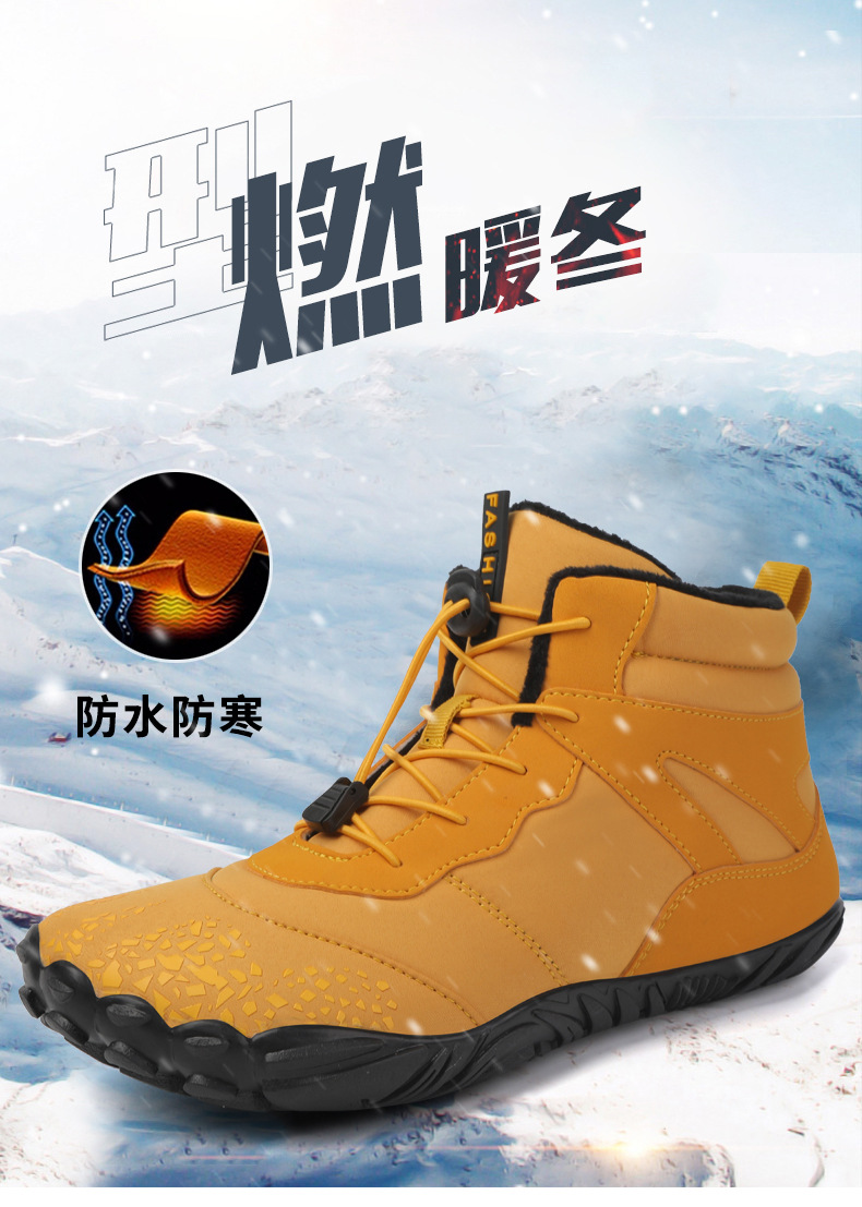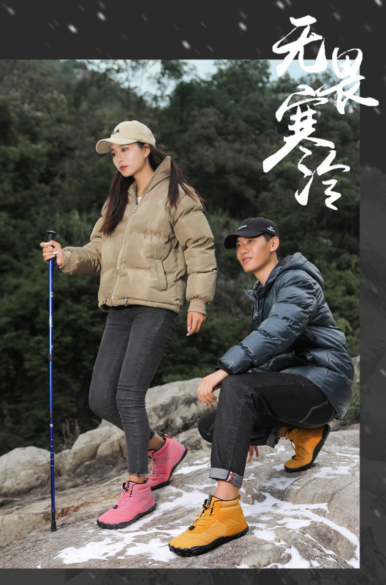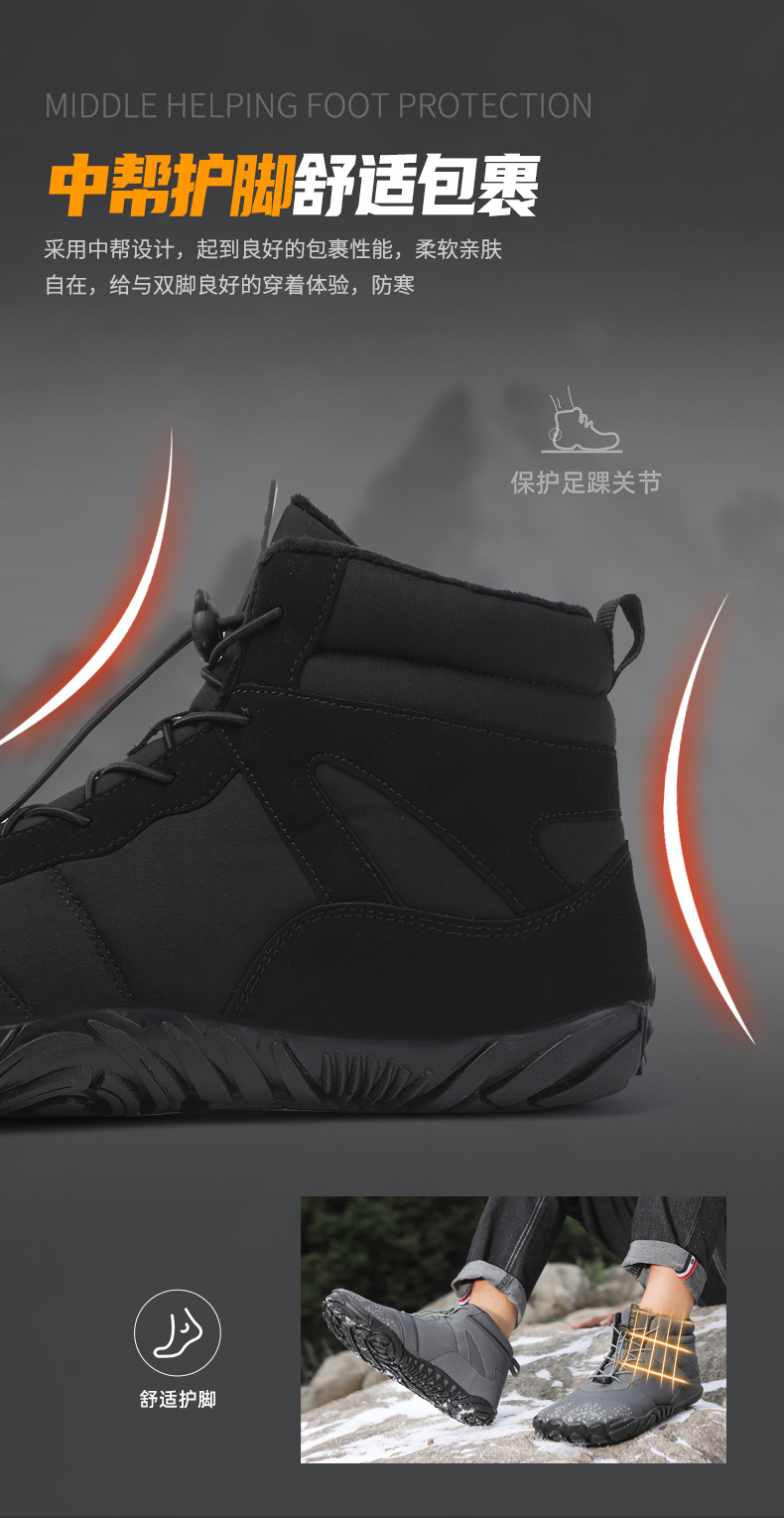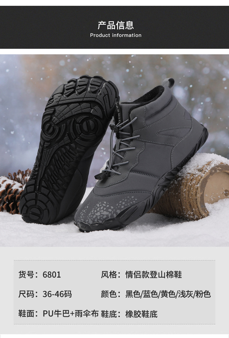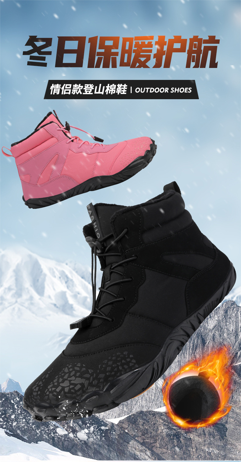冬季雪地靴男情侣滑雪靴 防水防滑棉鞋女加绒加厚五指登山靴子
