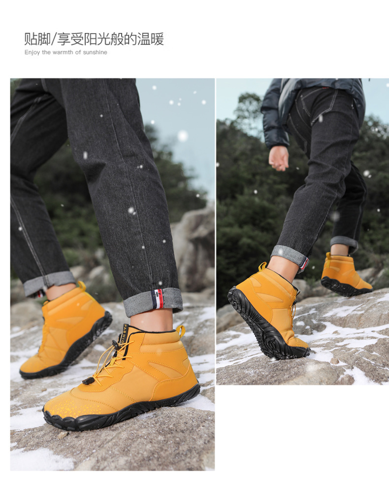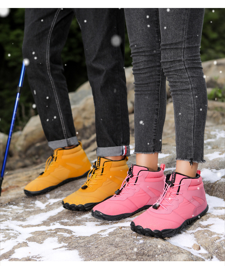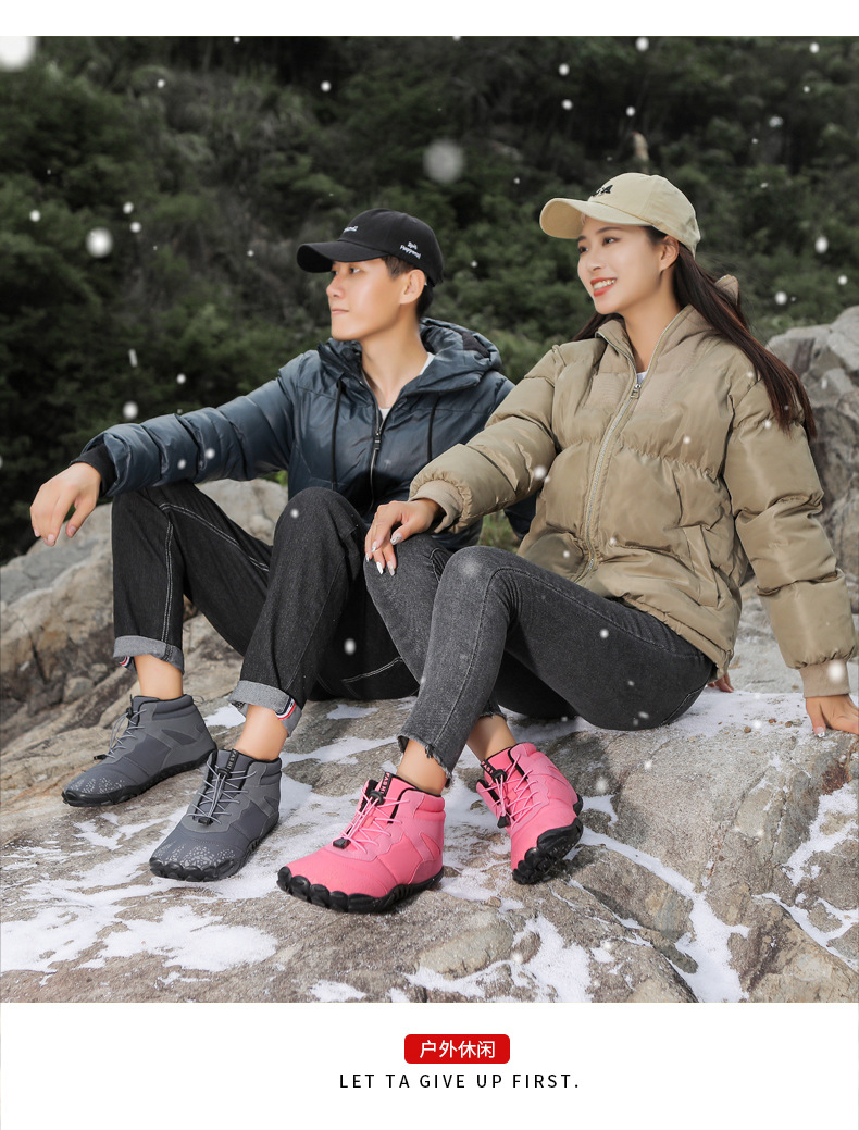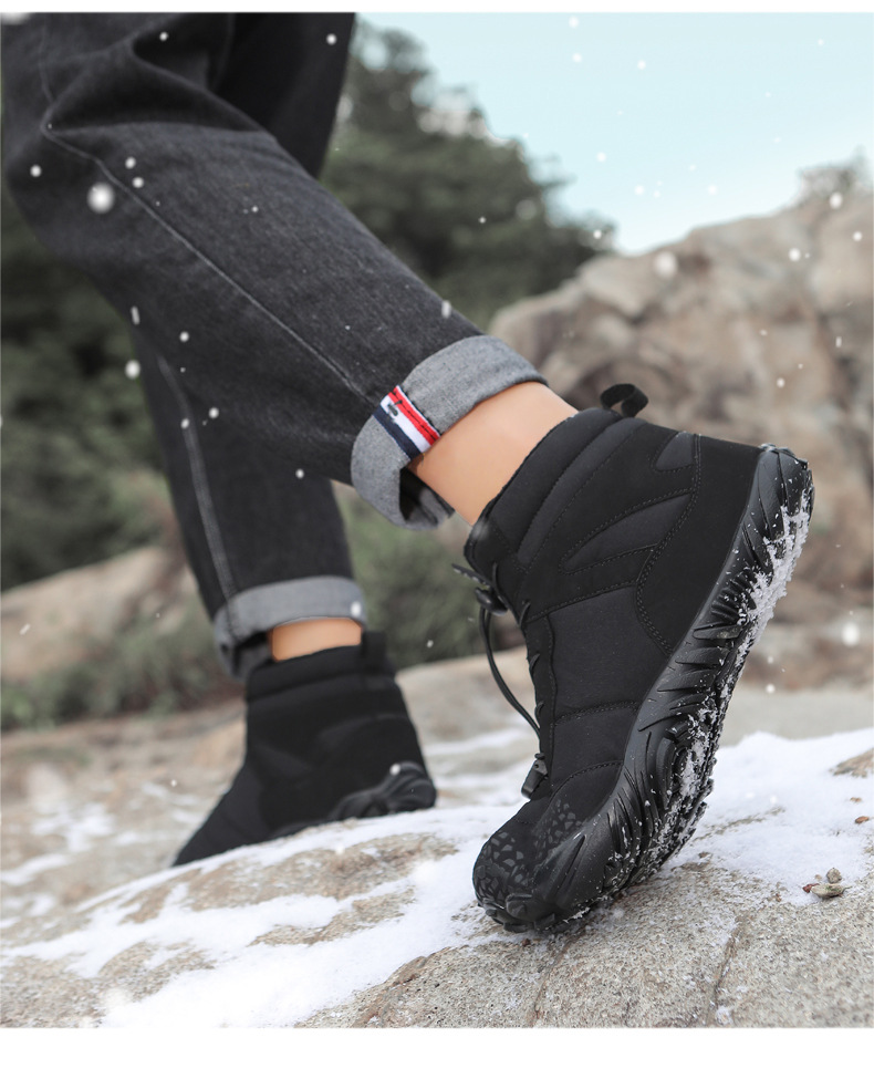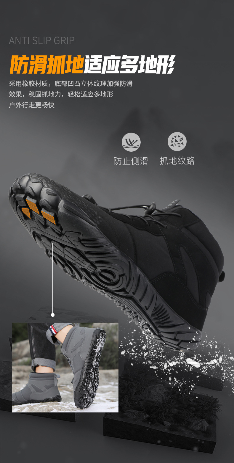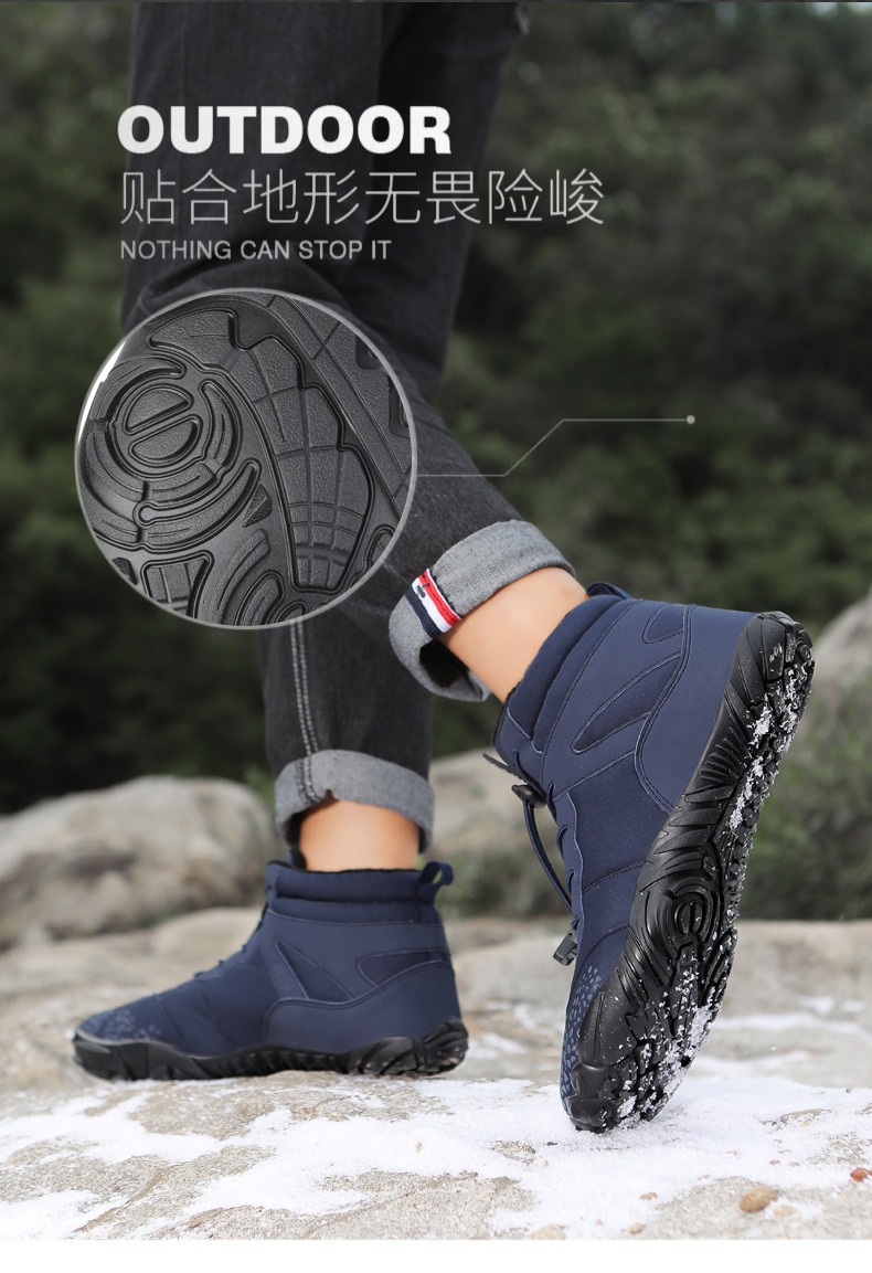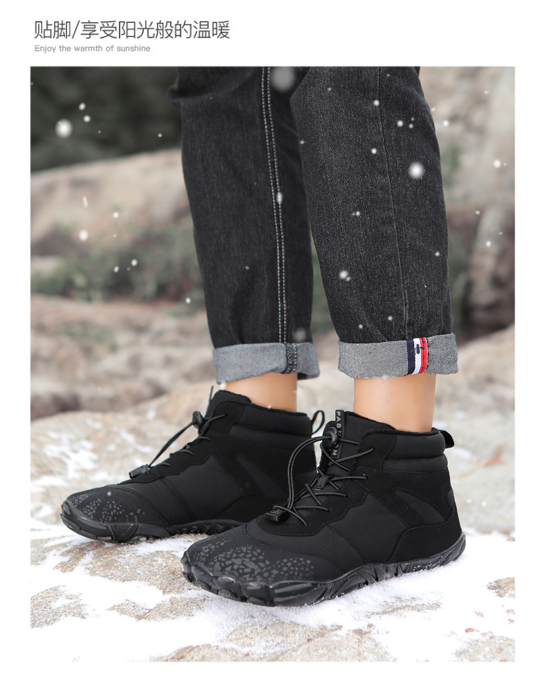 冬季雪地靴男情侣滑雪靴 防水防滑棉鞋女加绒加厚五指登山靴子