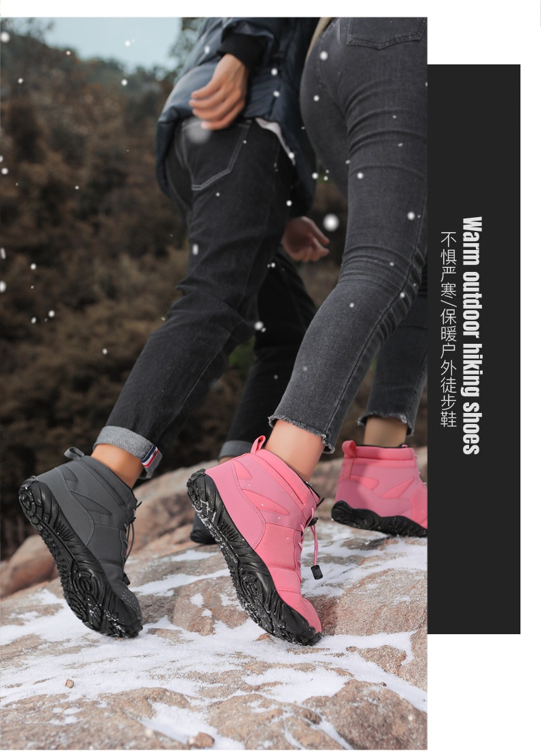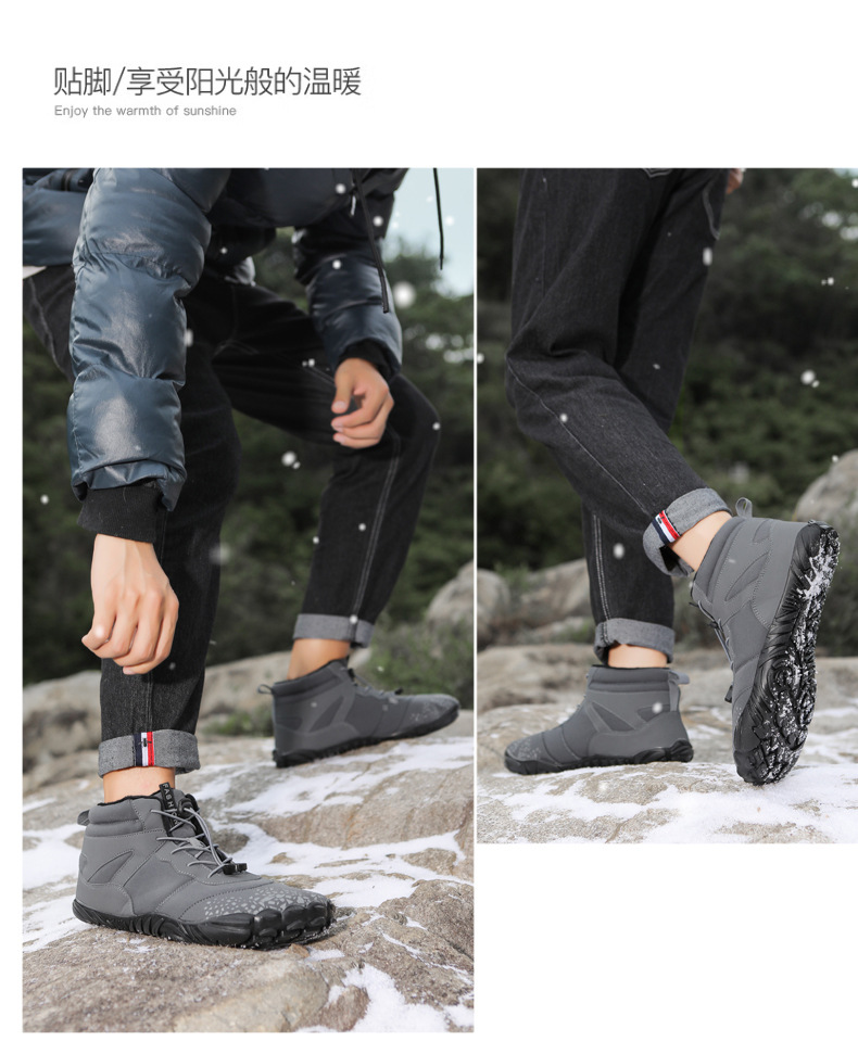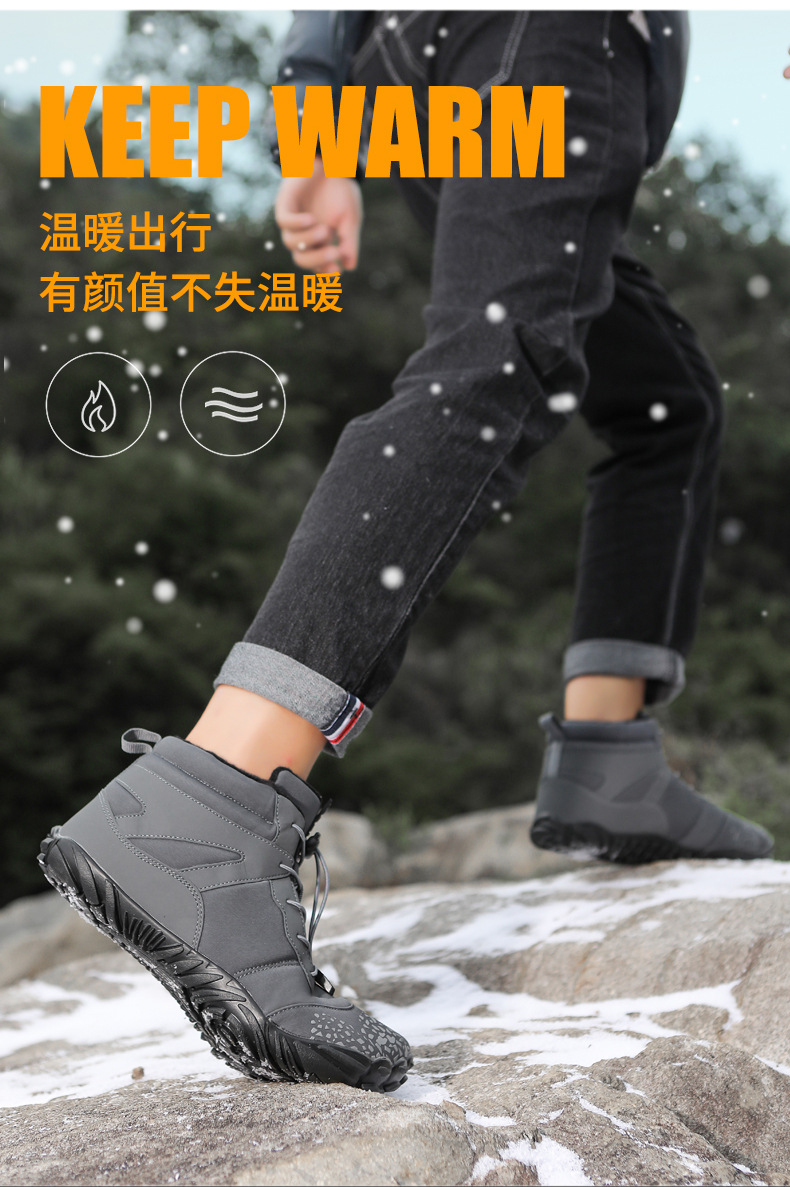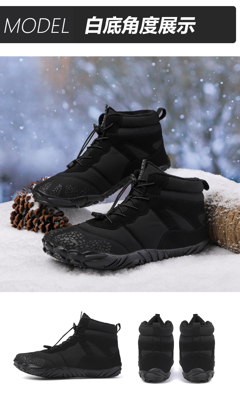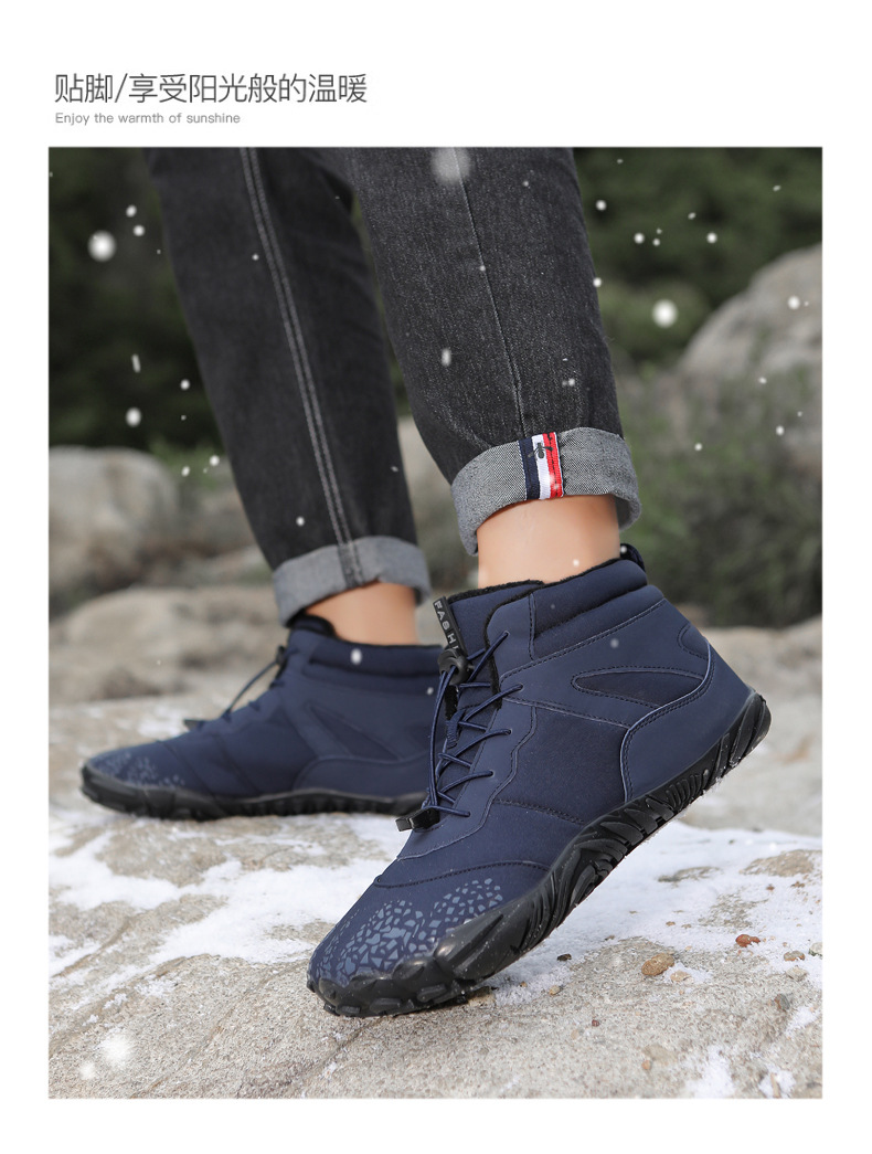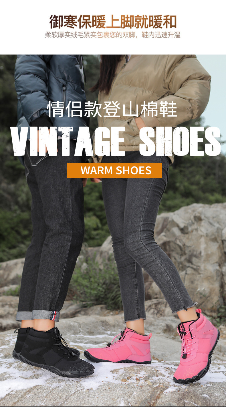 冬季雪地靴男情侣滑雪靴 防水防滑棉鞋女加绒加厚五指登山靴子