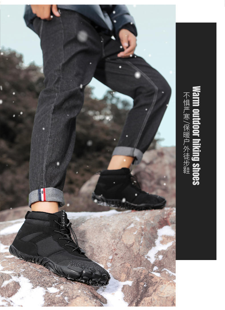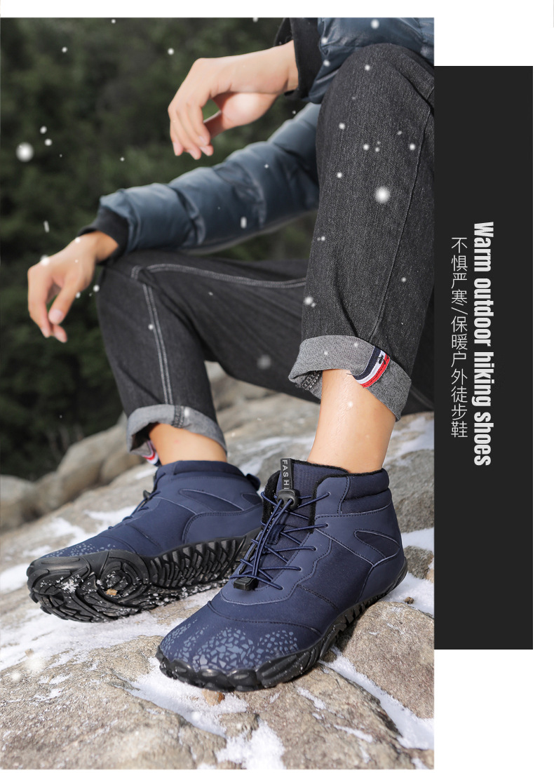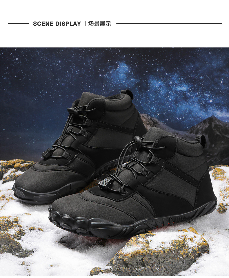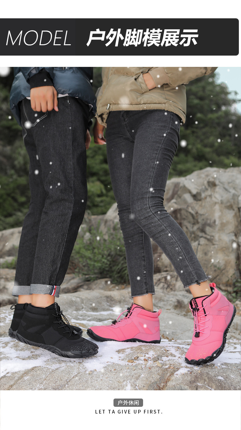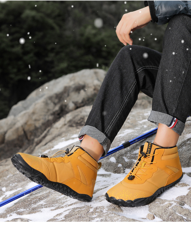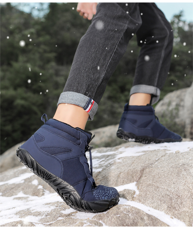 冬季雪地靴男情侣滑雪靴 防水防滑棉鞋女加绒加厚五指登山靴子