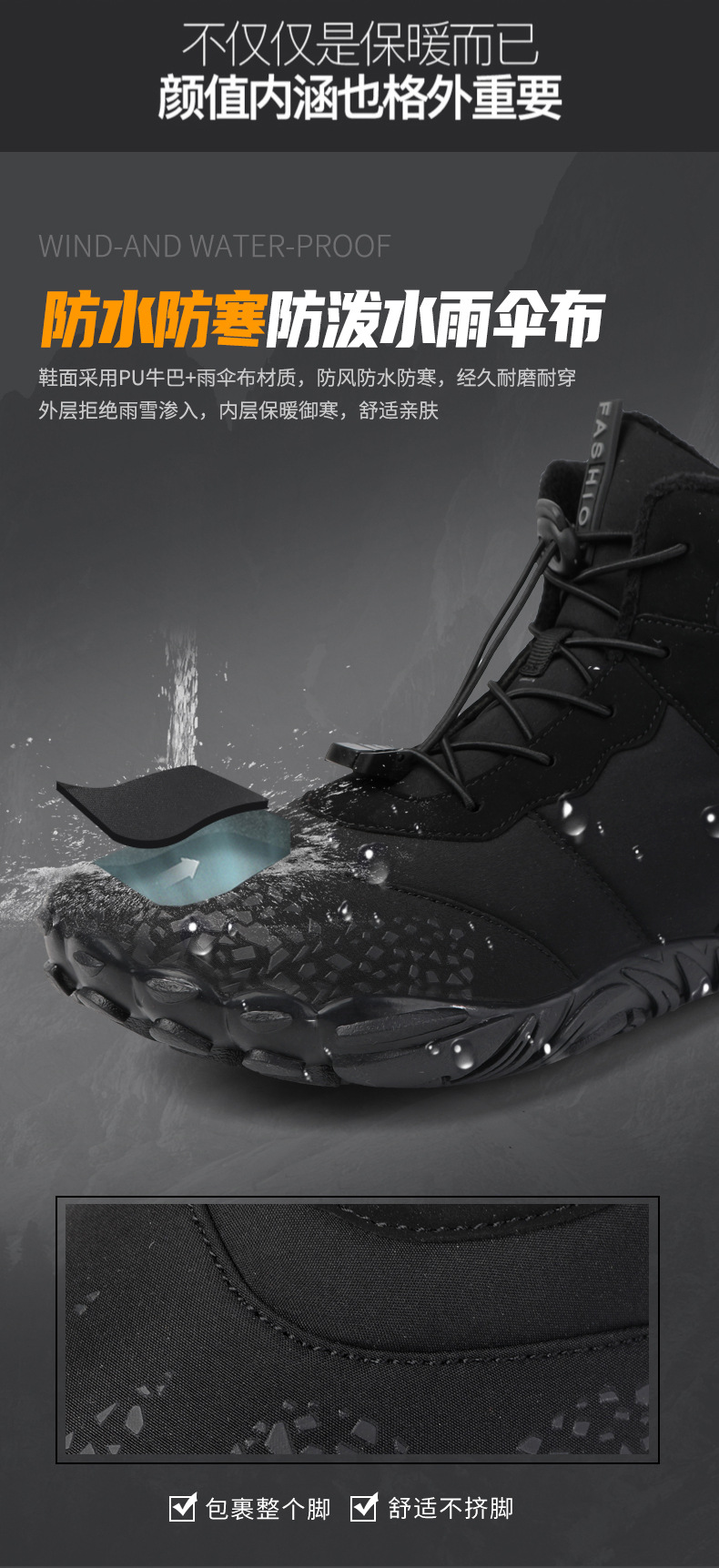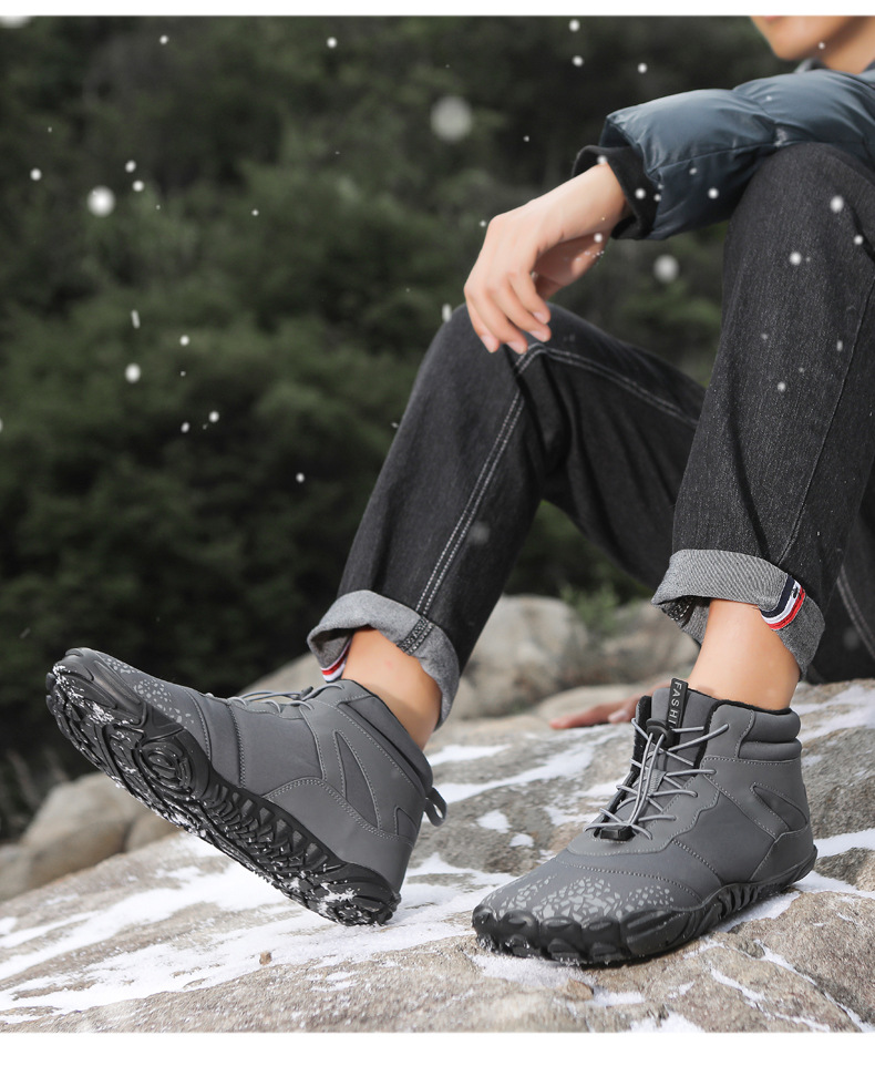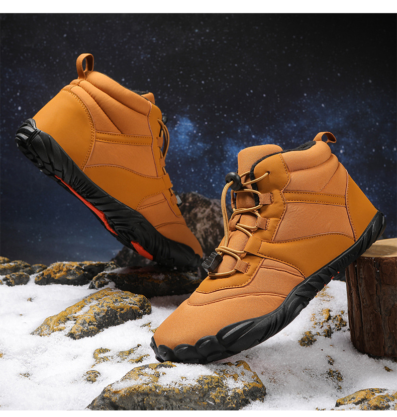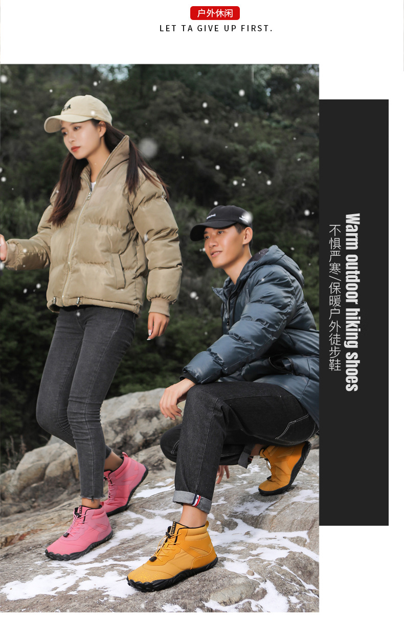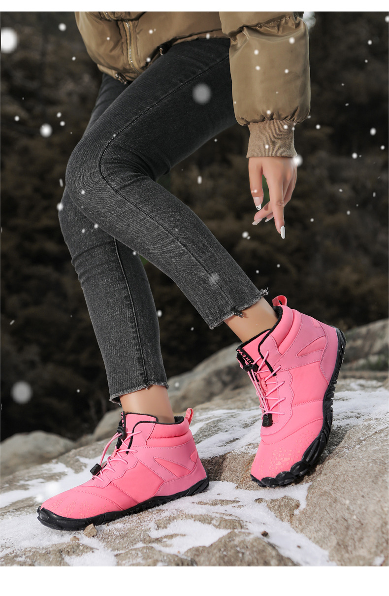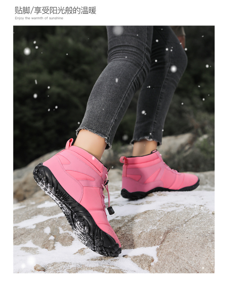 冬季雪地靴男情侣滑雪靴 防水防滑棉鞋女加绒加厚五指登山靴子