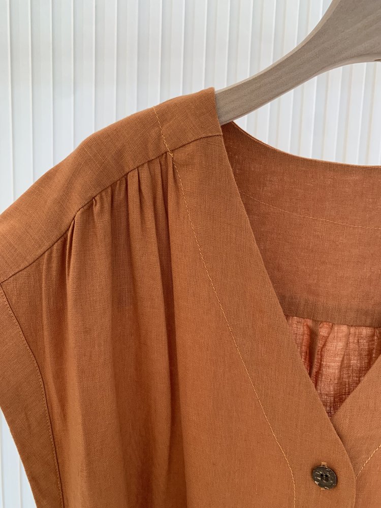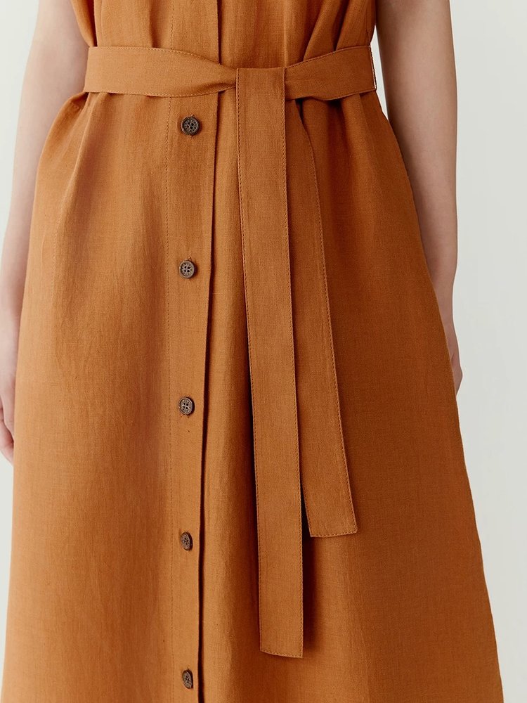小禾同款【文艺高智】直身亚麻长款连衣裙