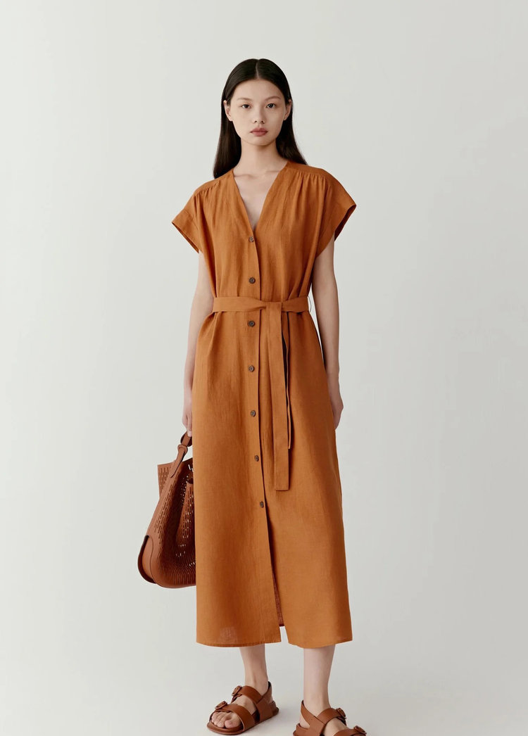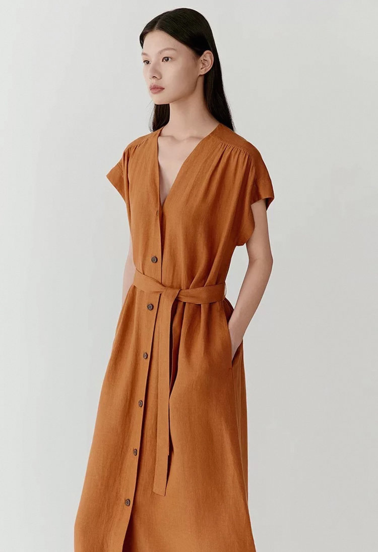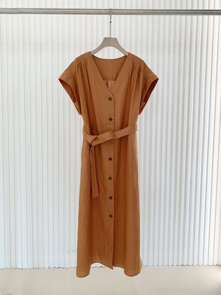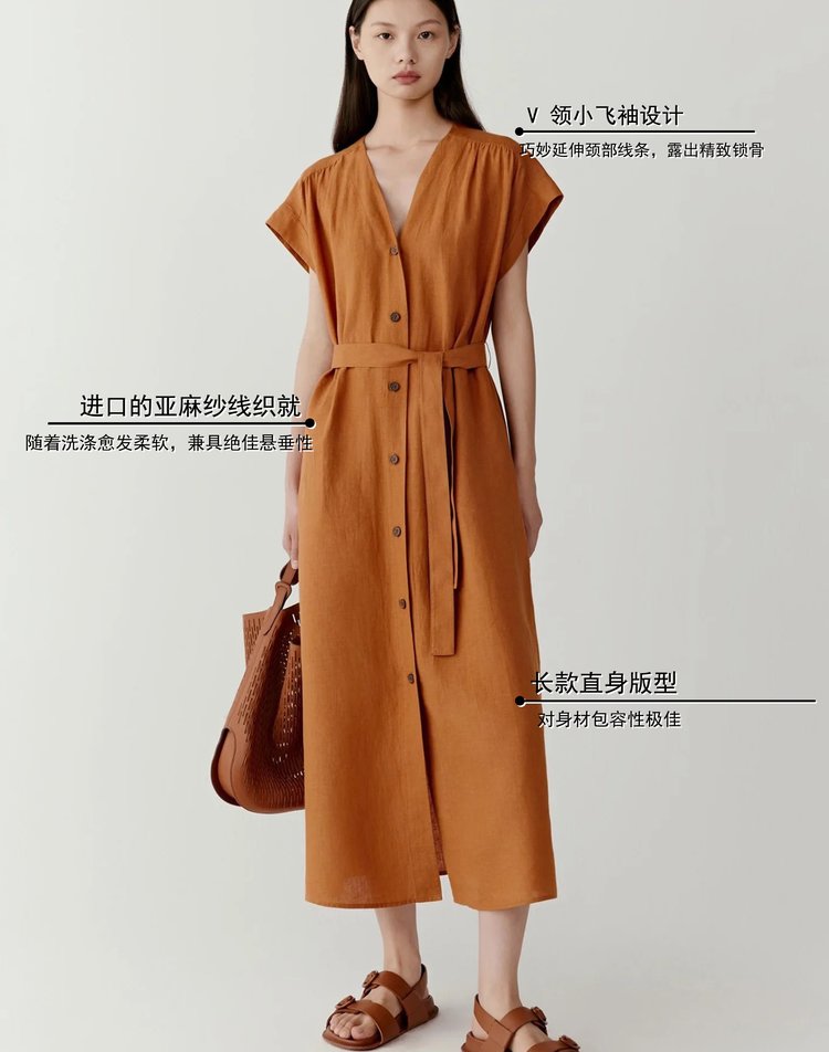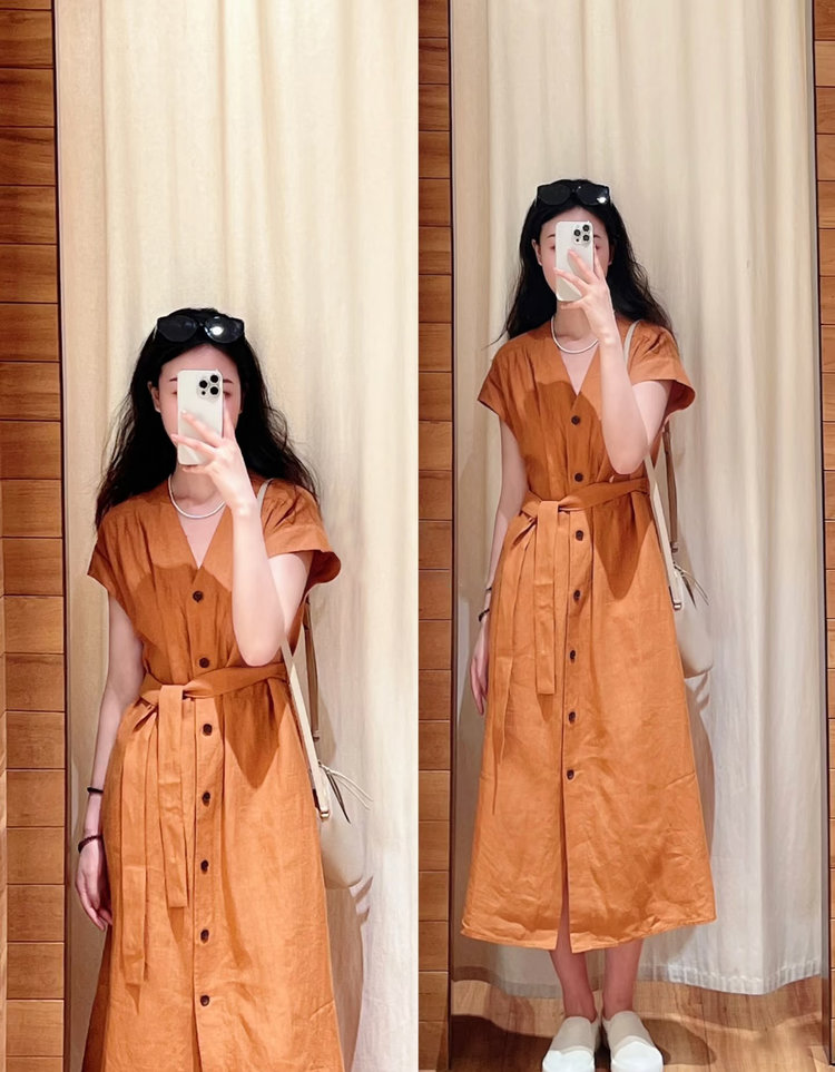 【高品质私服】【IC亚麻平纹V领长款连衣裙】裙型大气利落,巧妙修饰身材G1379-CC【无标出货 介意慎拍】