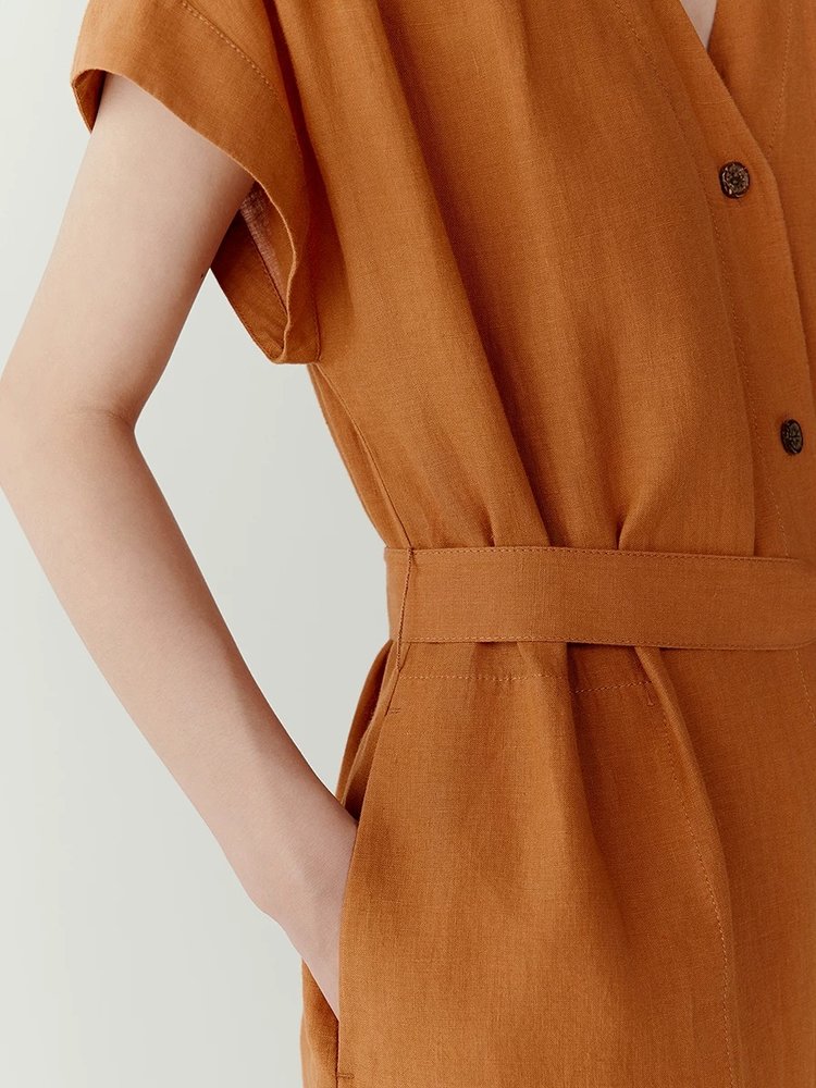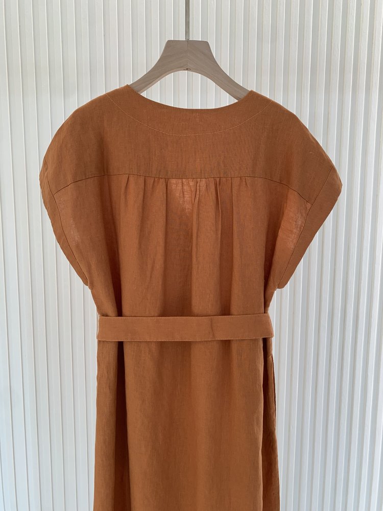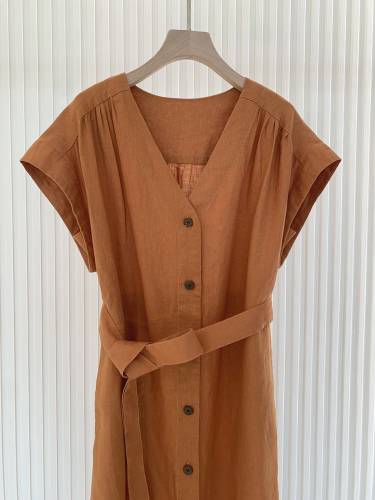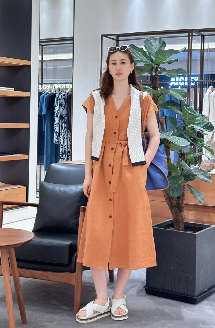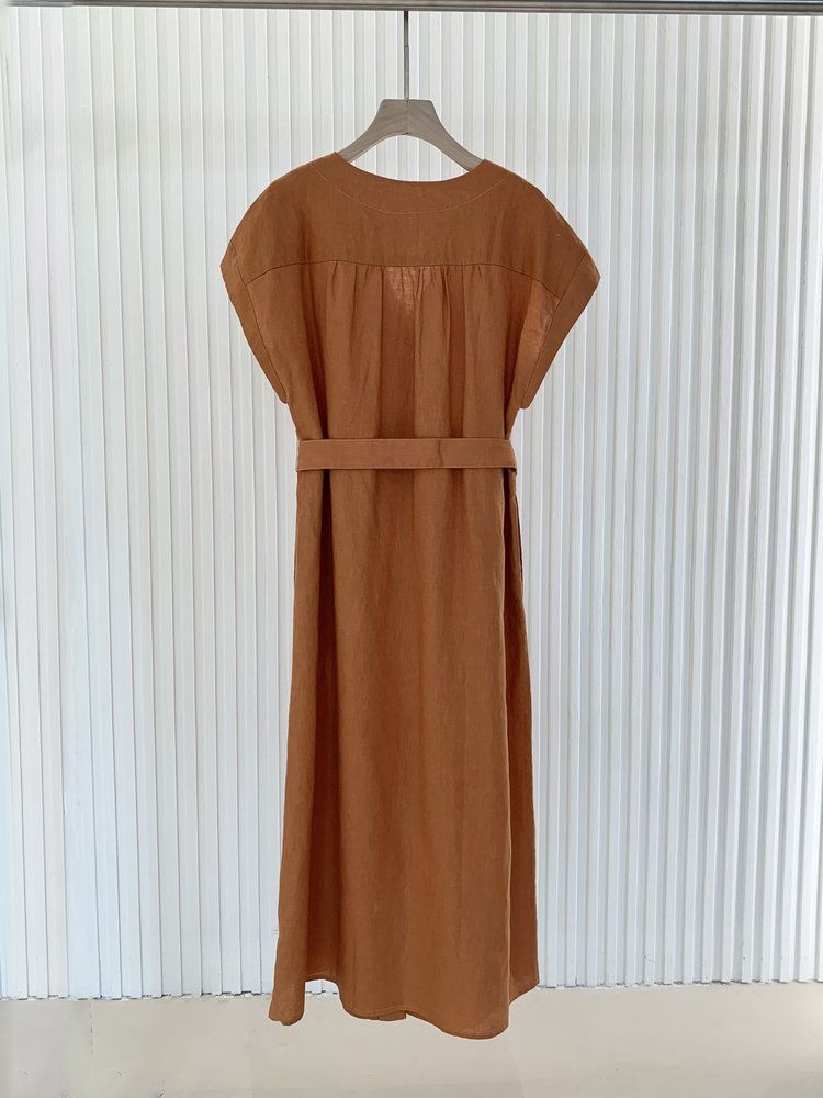【高品质私服】【IC亚麻平纹V领长款连衣裙】裙型大气利落,巧妙修饰身材G1379-CC【无标出货 介意慎拍】
