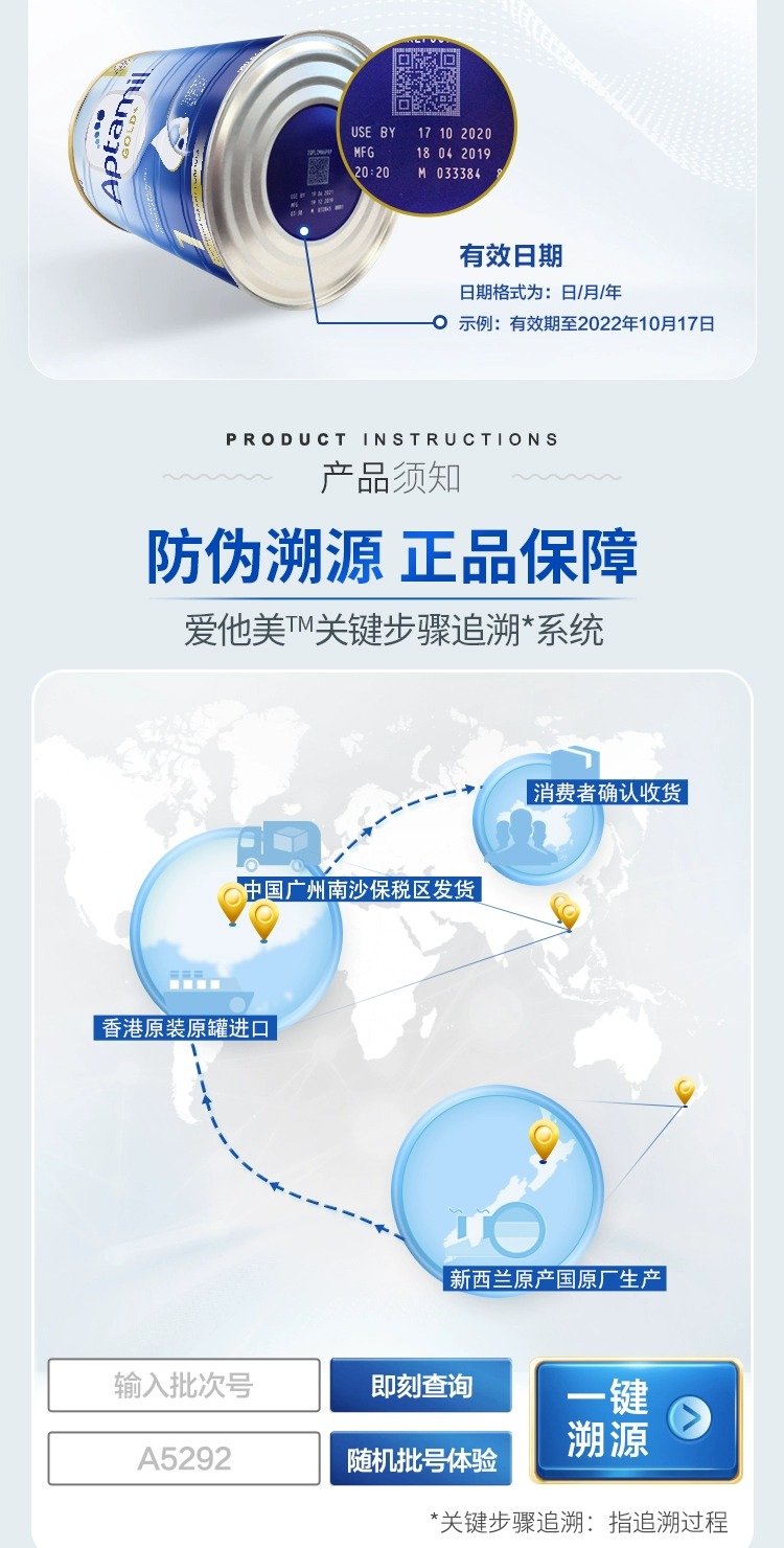 【中欧班列精选】HNMG 澳洲爱他美Karicare Aptamil奶粉 金装加强1段(0-6个月)900g 日期不断更新
