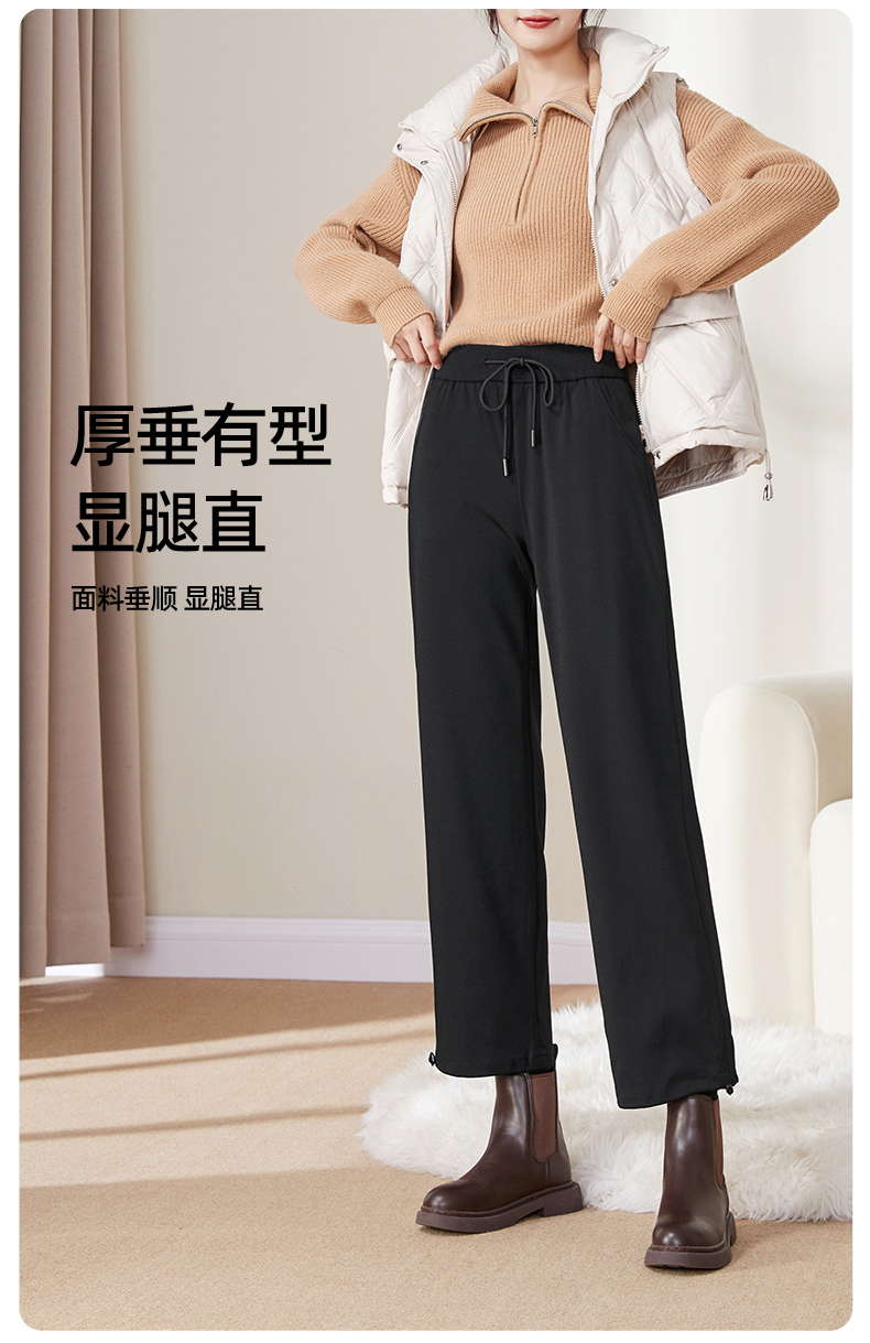 逸阳直筒加绒羽绒裤女冬季加厚阔腿抽绳宽松两穿百搭休闲保暖厚裤0732