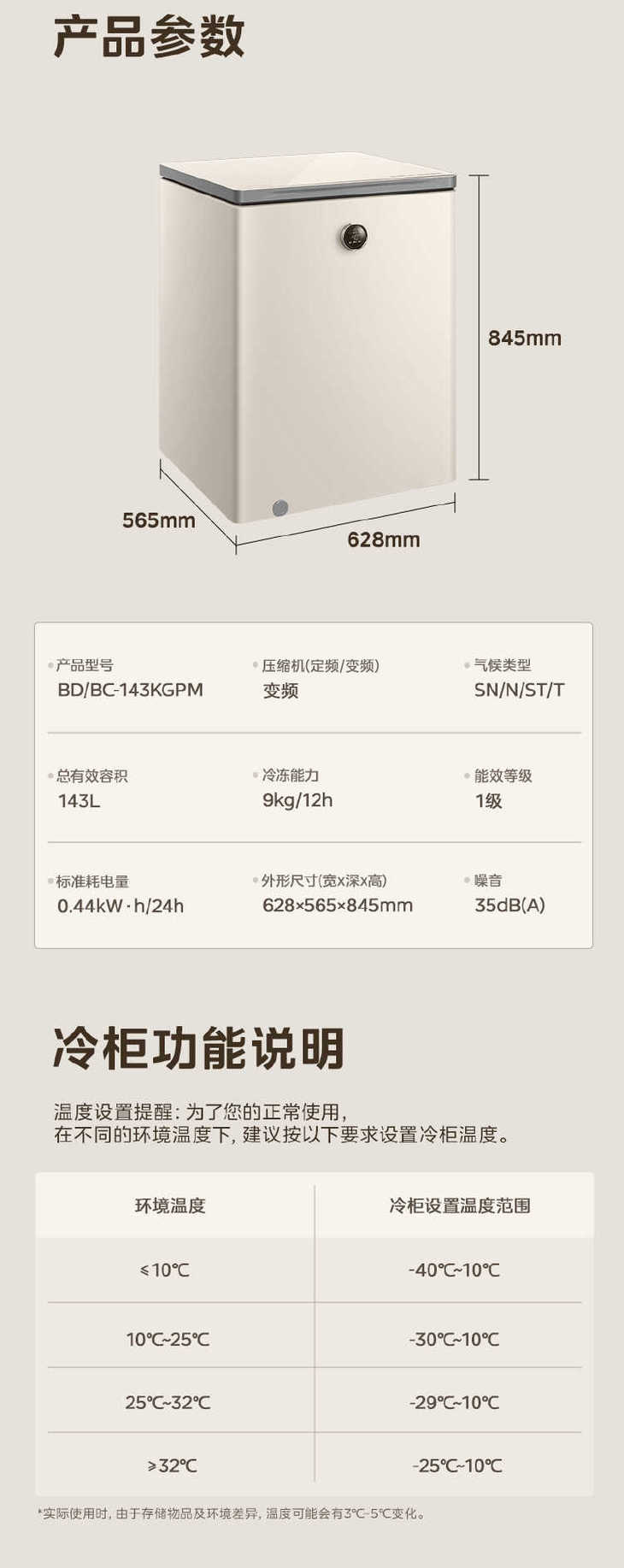 美的(203019)冷柜 BD/BC-143KGPM 云海米
