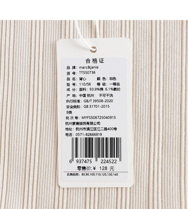 马克珍妮女童夏日透气弹力背心吊带宝宝上衣2025年夏装新款550736
