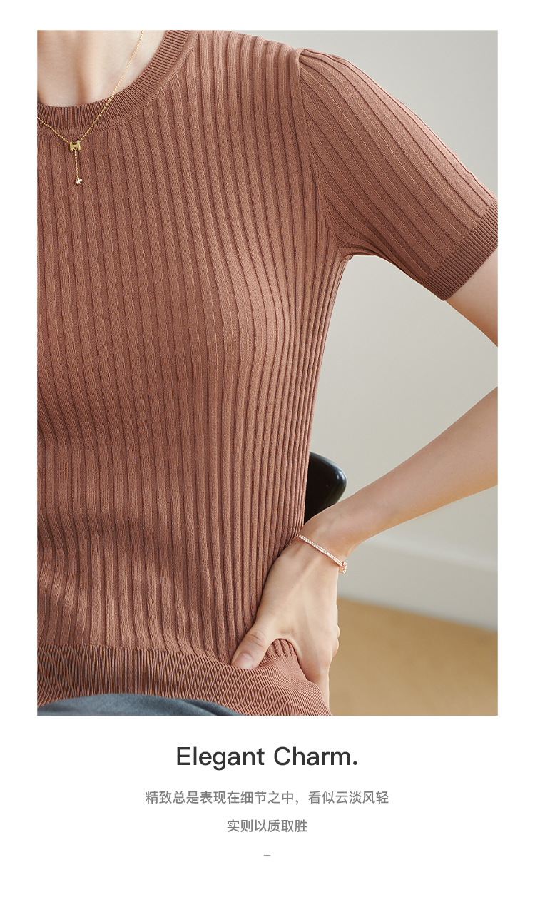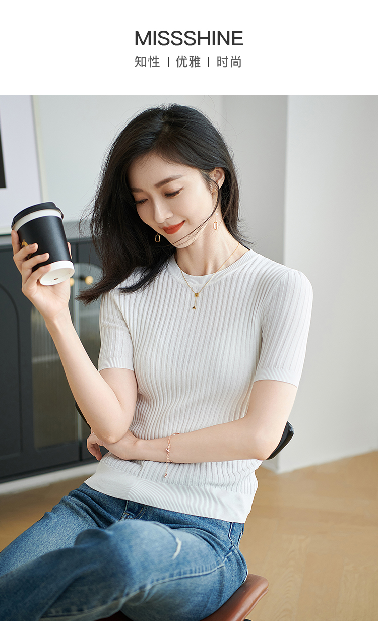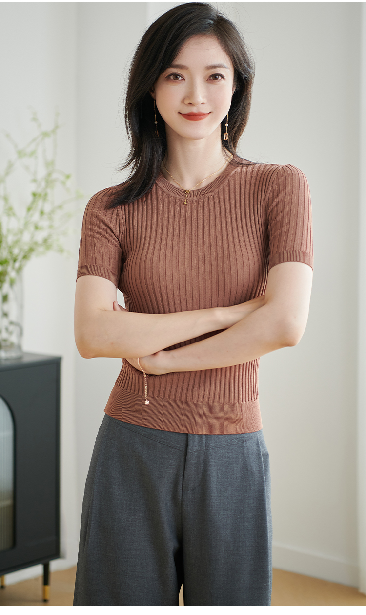 【咖啡色 预售7天】米思阳2026夏季新款通勤简约风毛针织衫螺纹设计感修身上衣女1925/1269