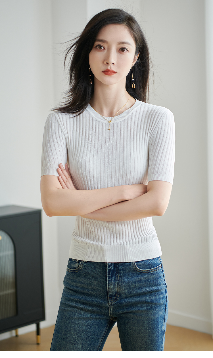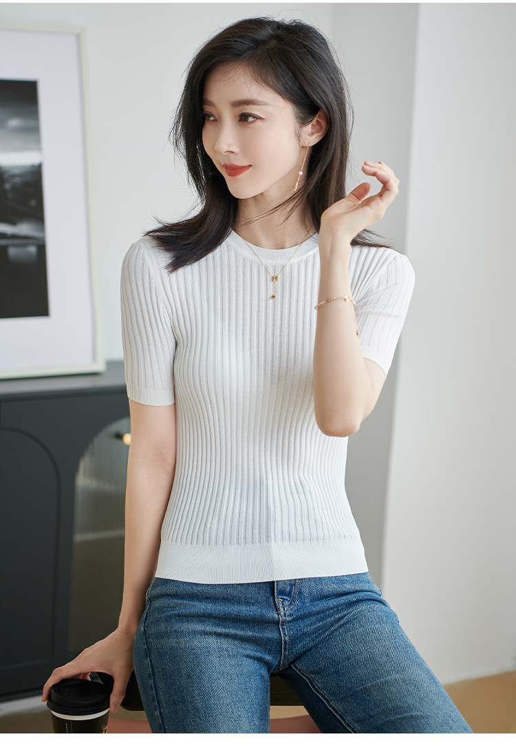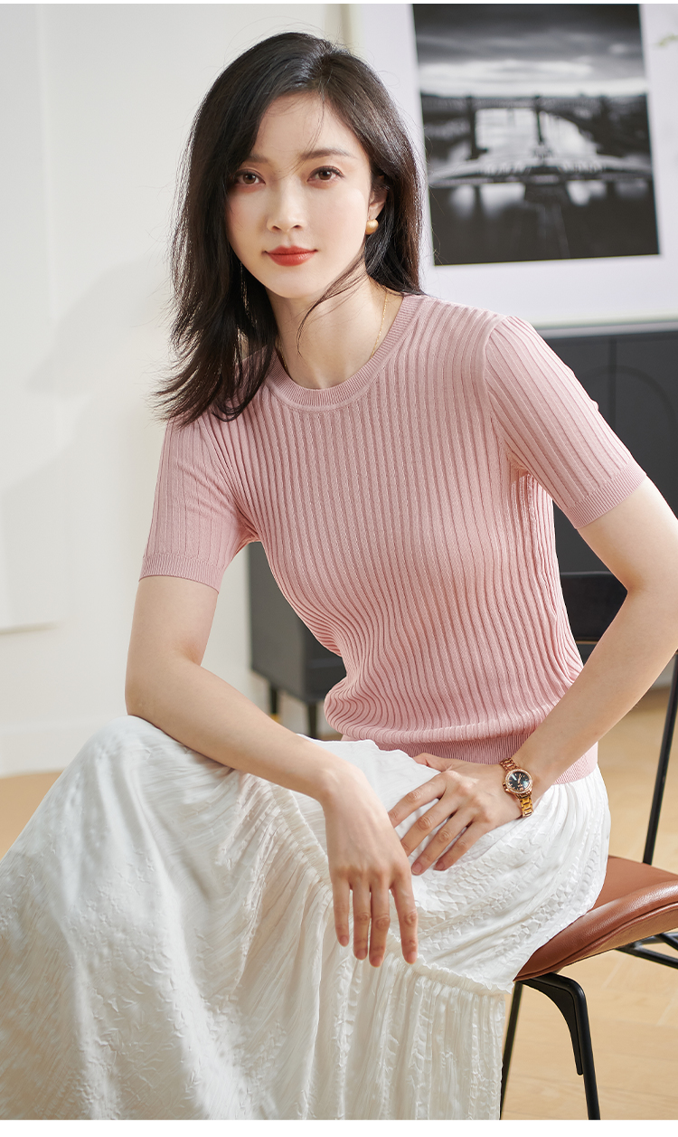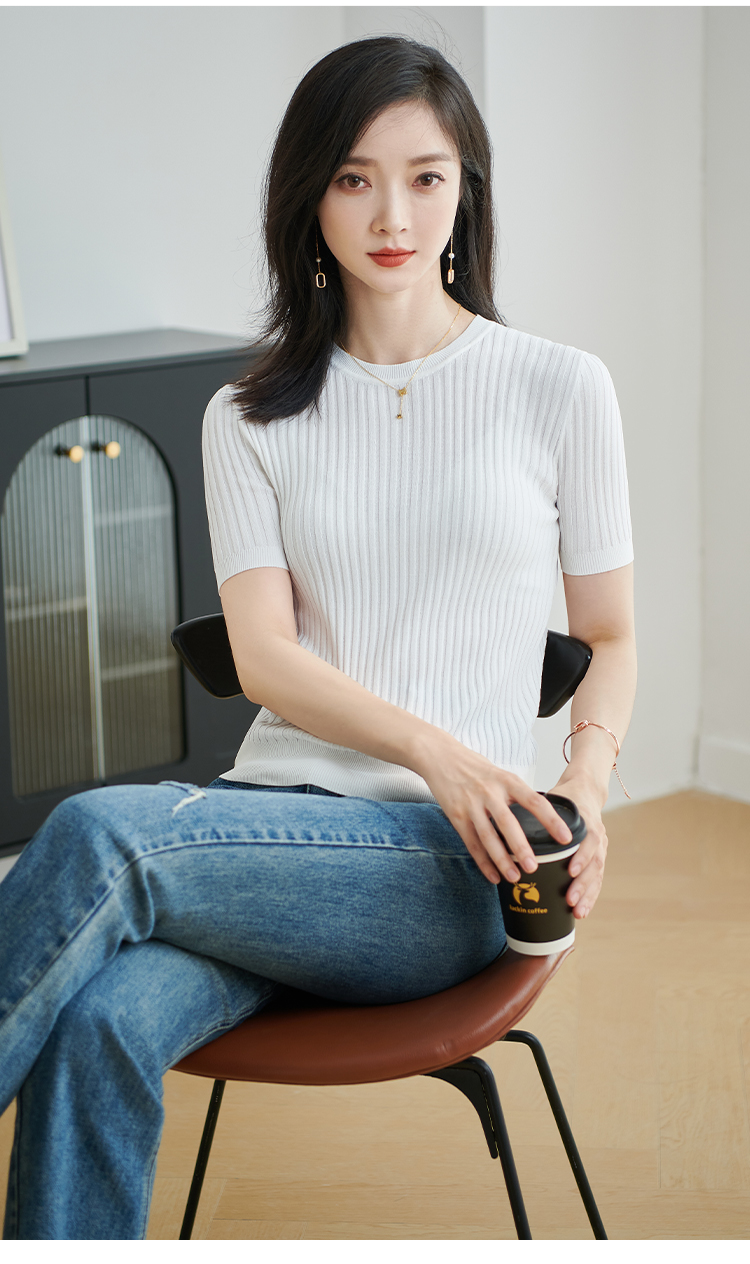 【咖啡色 预售7天】米思阳2026夏季新款通勤简约风毛针织衫螺纹设计感修身上衣女1925/1269