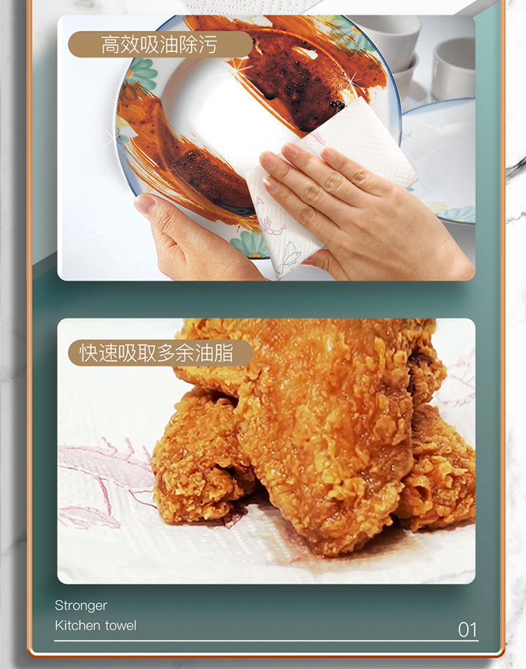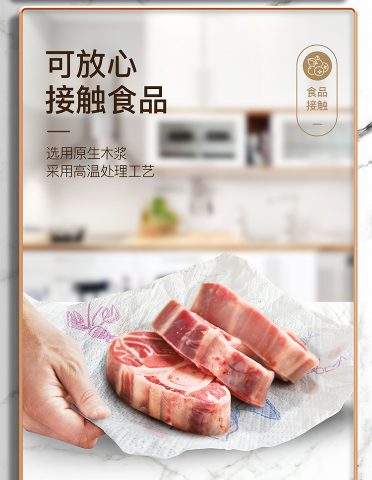 心相印 吸油纸厨房 厨房用纸卷纸吸水纸 加厚擦手纸 厨房纸巾 印花75节*8卷(整箱销售)(新老包装随机发货)