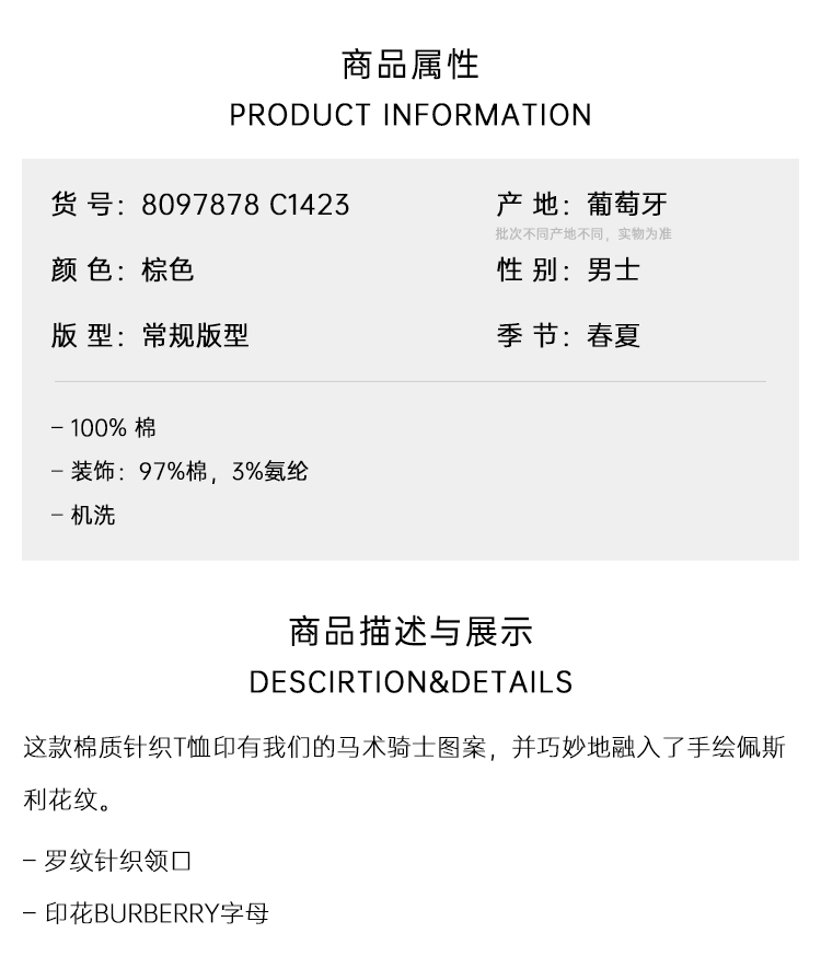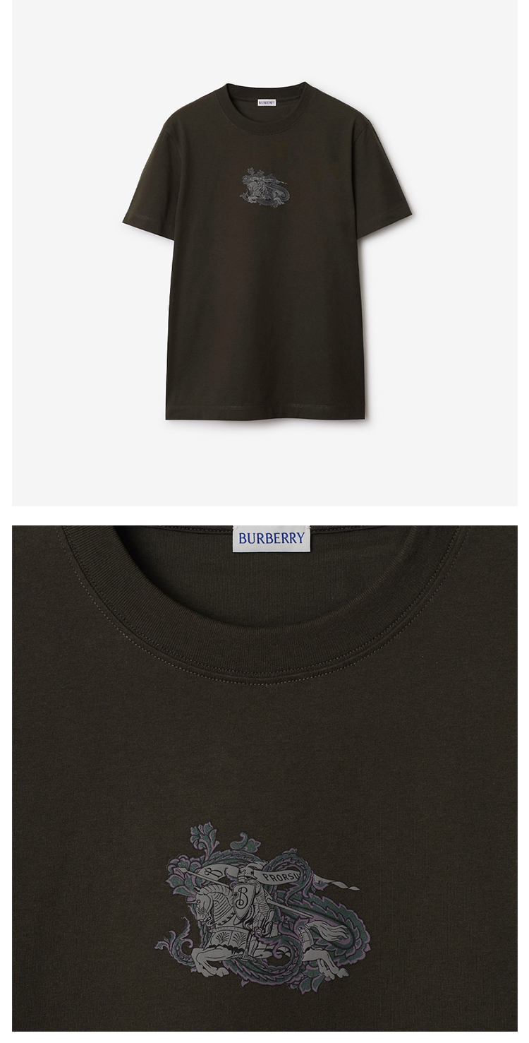 【一】BURBERRY 巴宝莉 男士佩斯利图案马术骑士徽标棉质圆领短袖T恤 棕色 8097878 C1423
