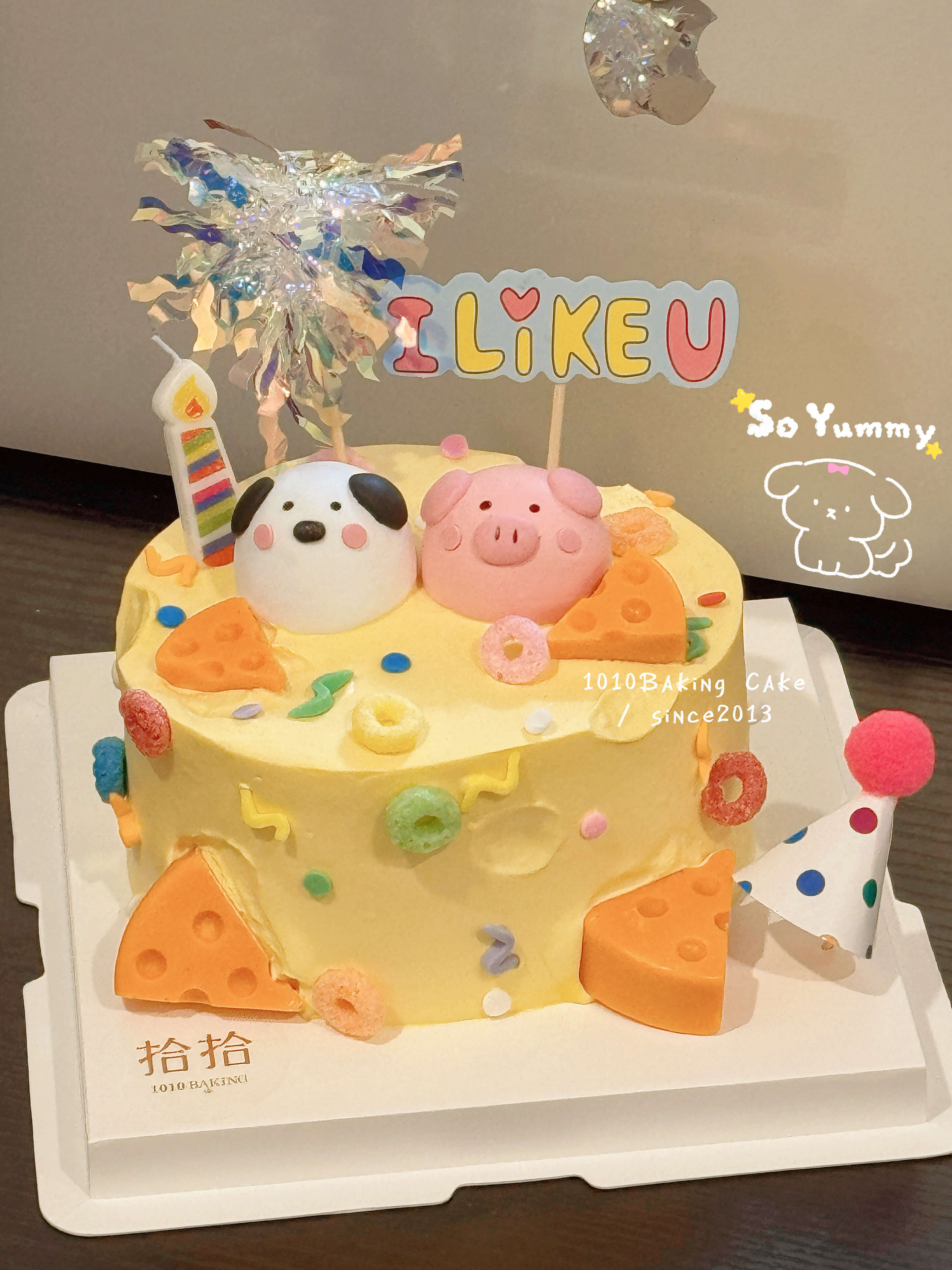「猪狗一家亲哇」100%动物奶油(附图5寸·提前10小时预订)