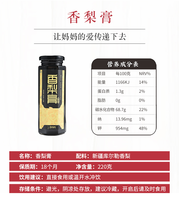 新疆库尔勒 成成妈妈香梨膏 220g/瓶
